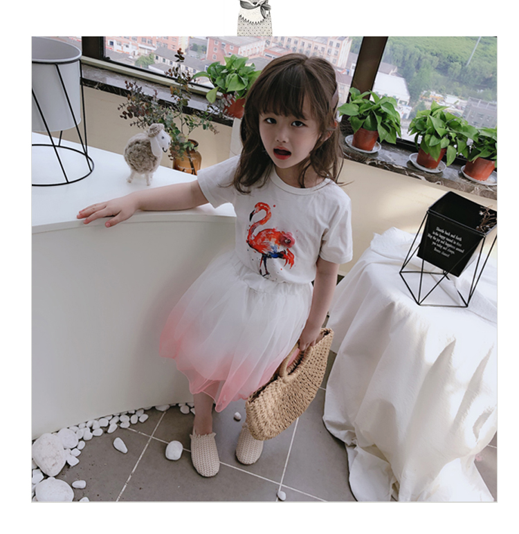 2019夏季新款 女童卡通印花T恤+網紗短裙兩件套 兒童可愛舒適套裝1入