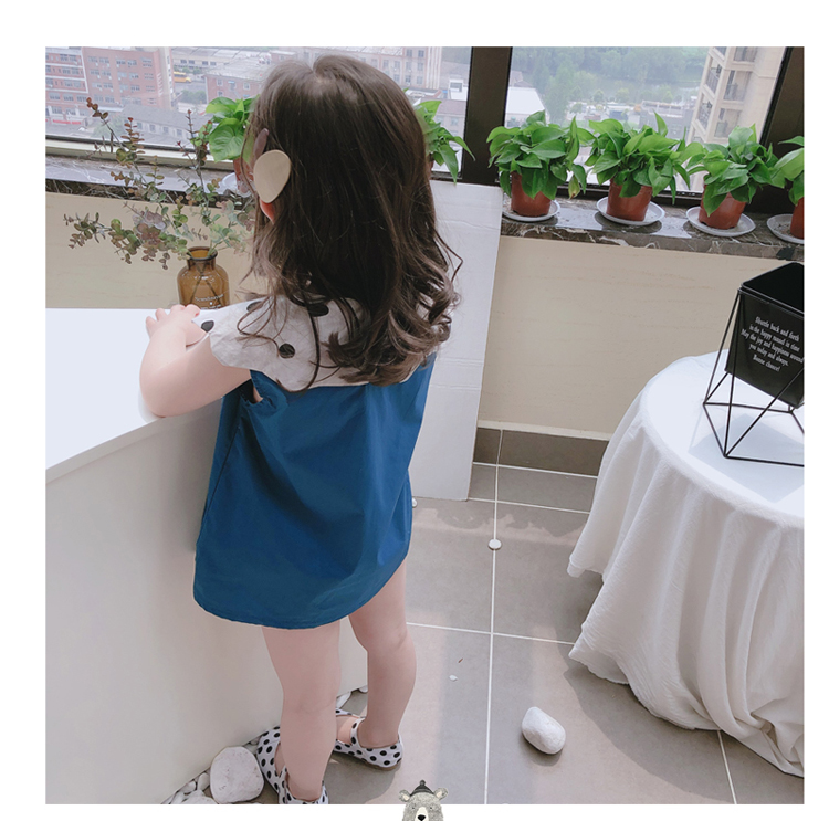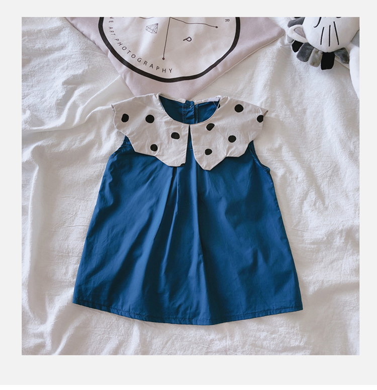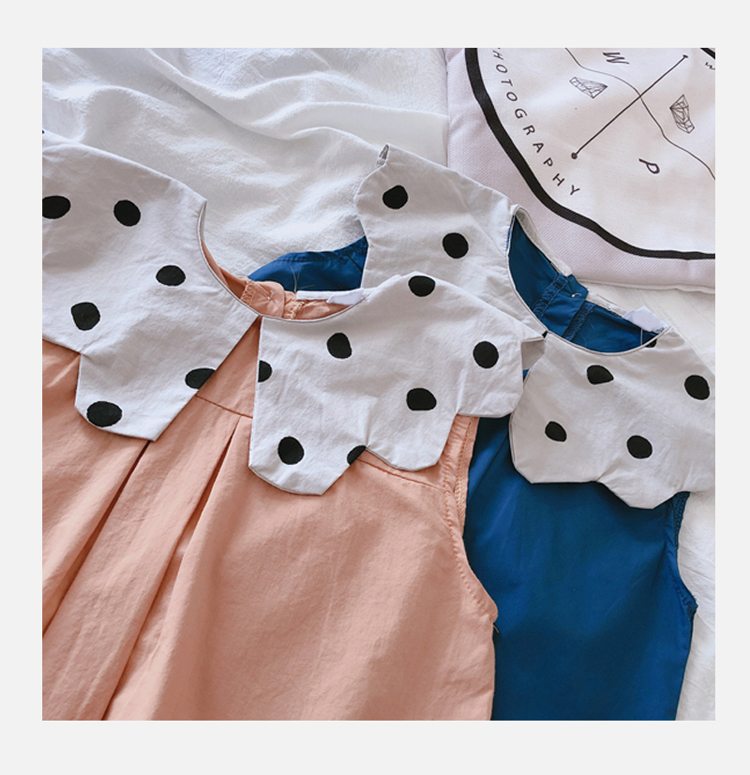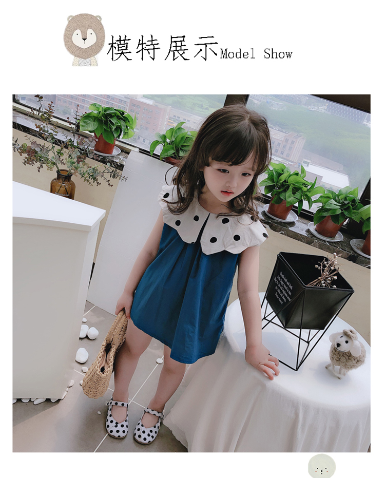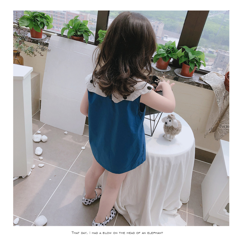 2019夏季新款 女童花邊翻領無袖連衣裙 兒童洋氣舒適娃娃衫裙子1入