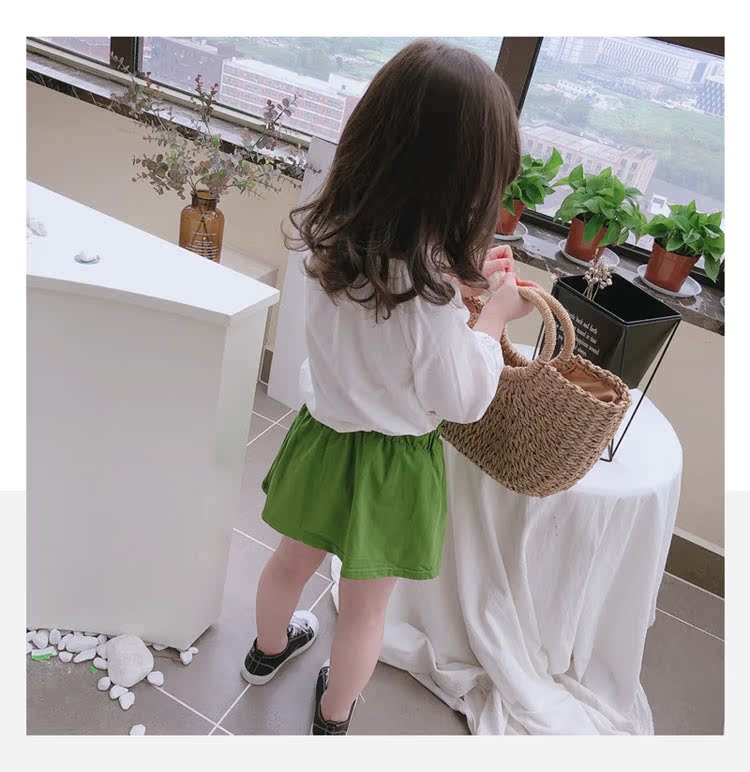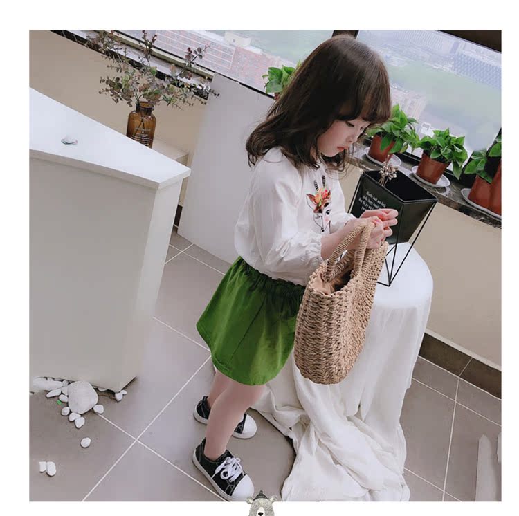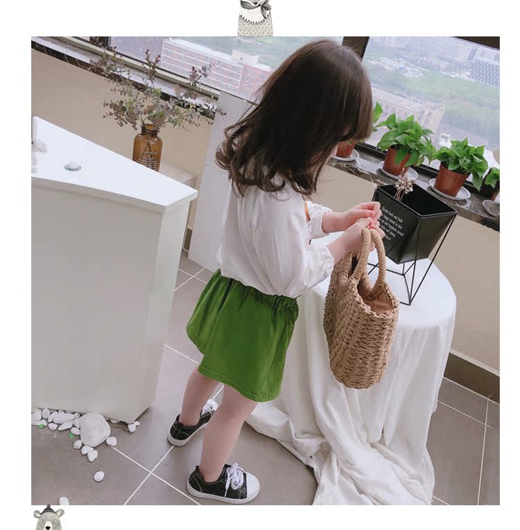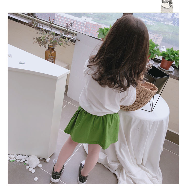 2019夏季新款 女童寶寶圓領舒適印花圖案上衣+皮筋腰帶純色半身裙1入