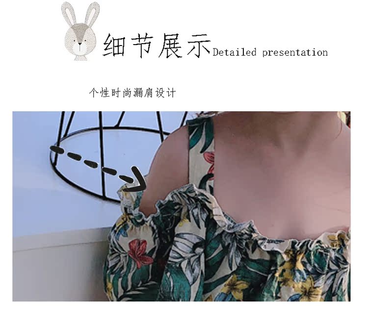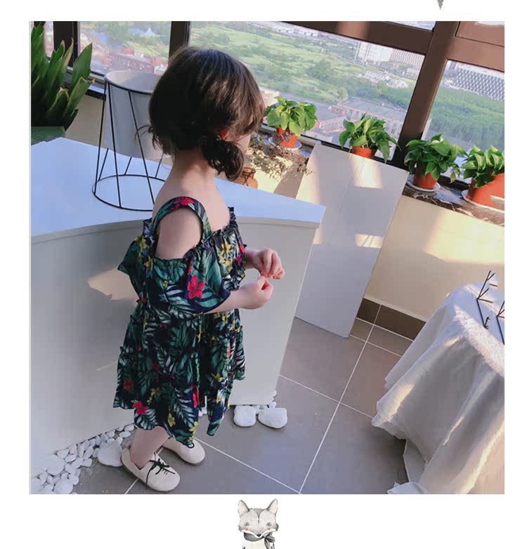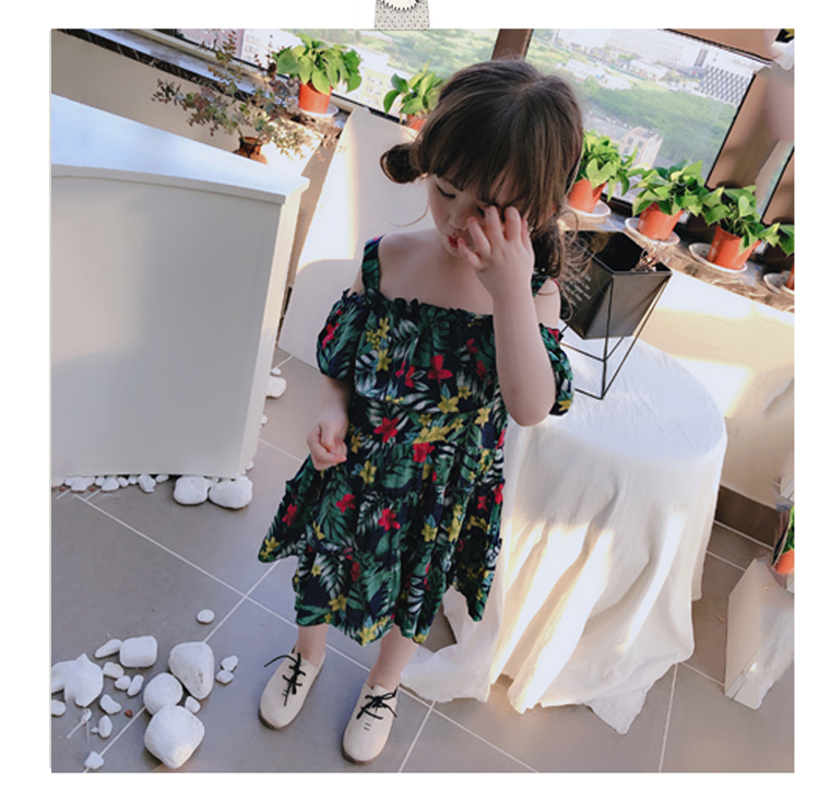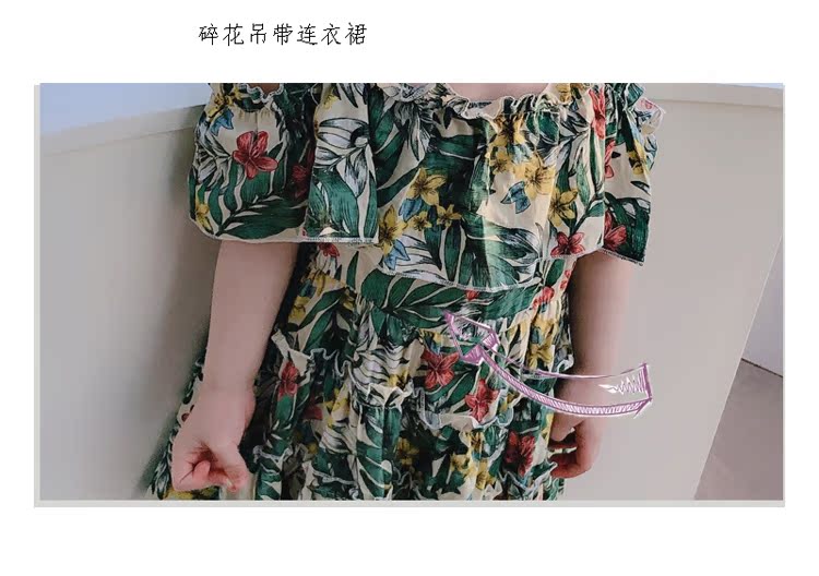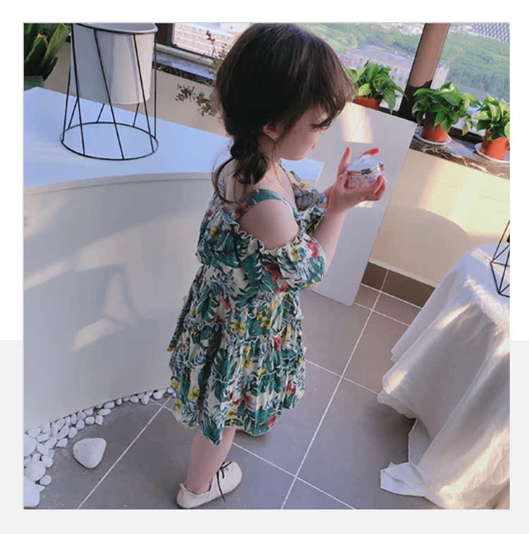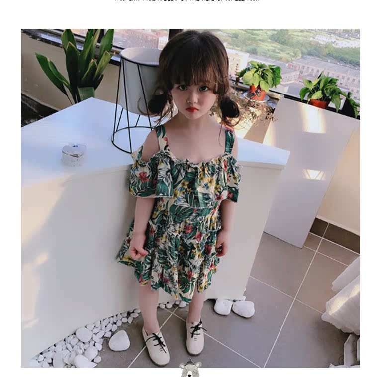 2019夏季新款童裝 中小童洋氣露肩吊帶裙子 女童寶寶度假風連衣裙1入