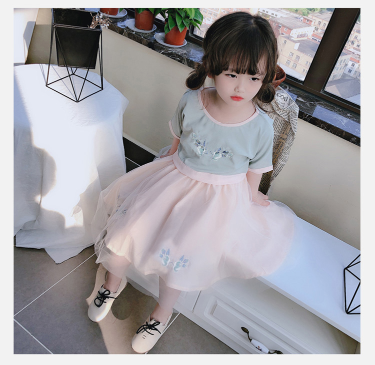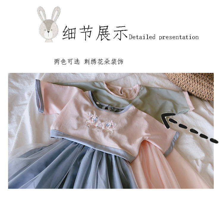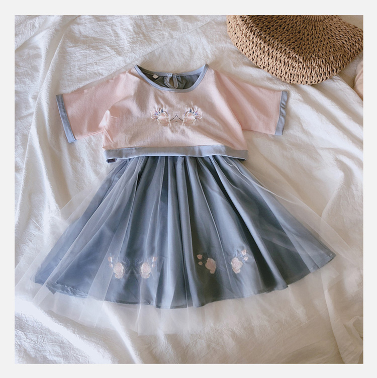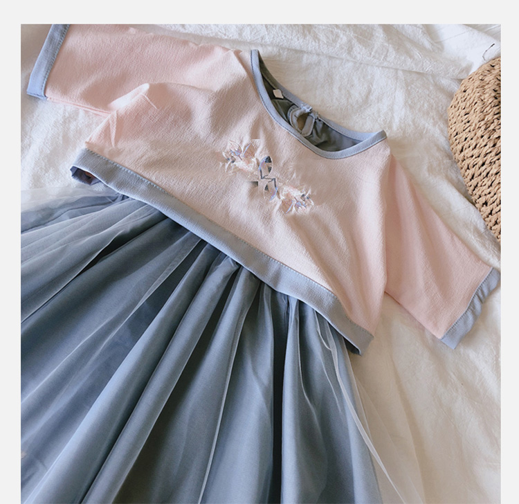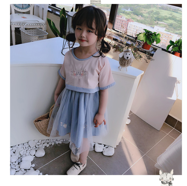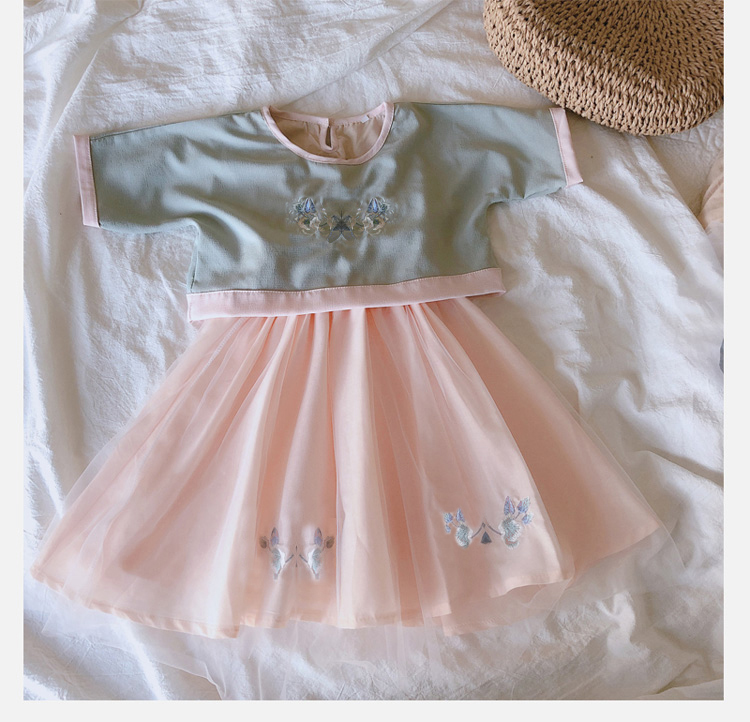 2019童裝夏季女童寶寶刺繡連衣裙 中小童小清新古風漢服兒童裙子1入