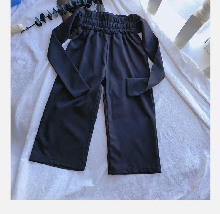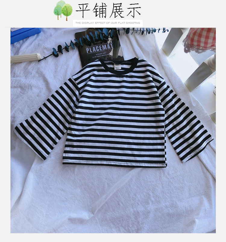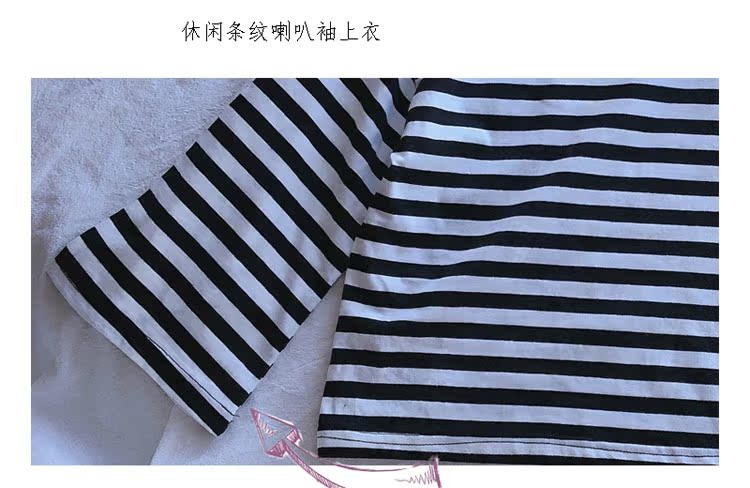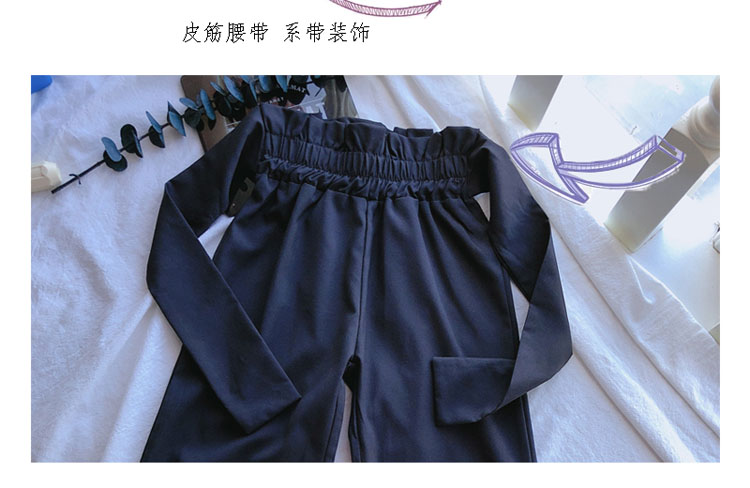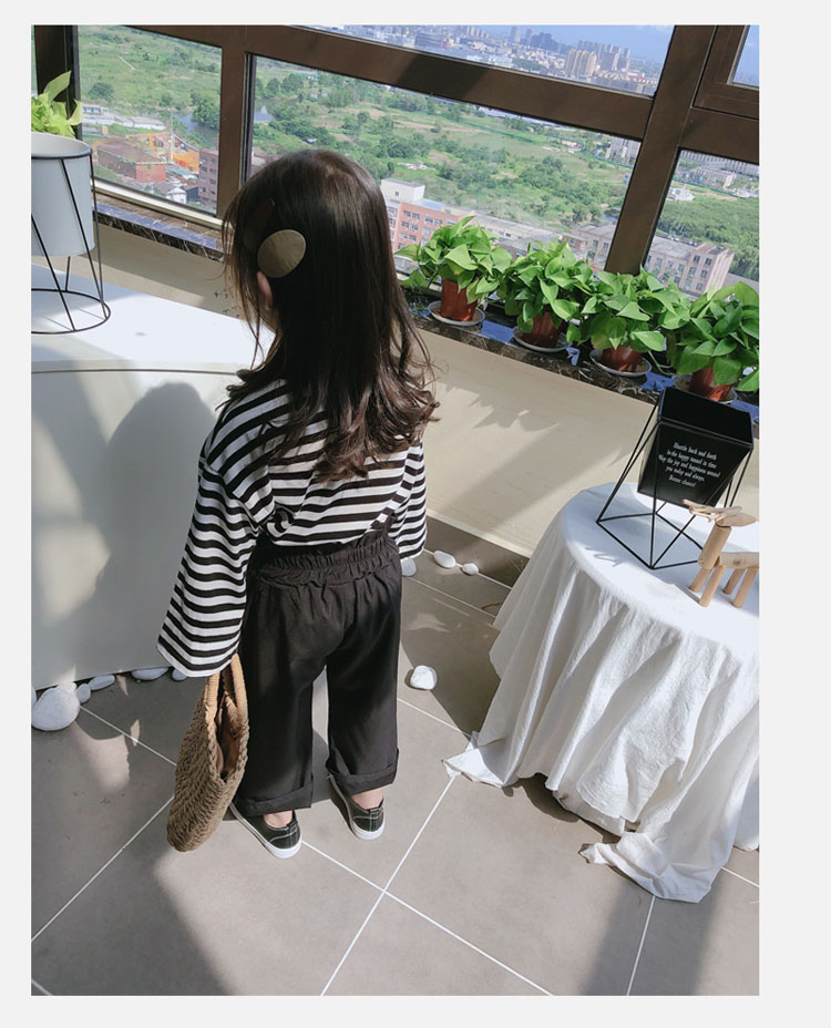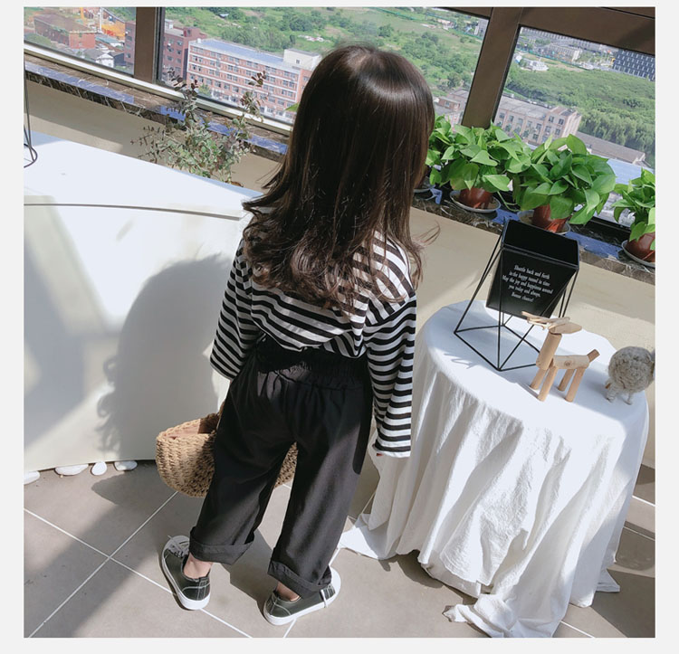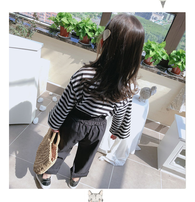 2019春秋新款 女童洋氣舒適套裝 兒童條紋上衣+系帶休閑褲兩件套1入