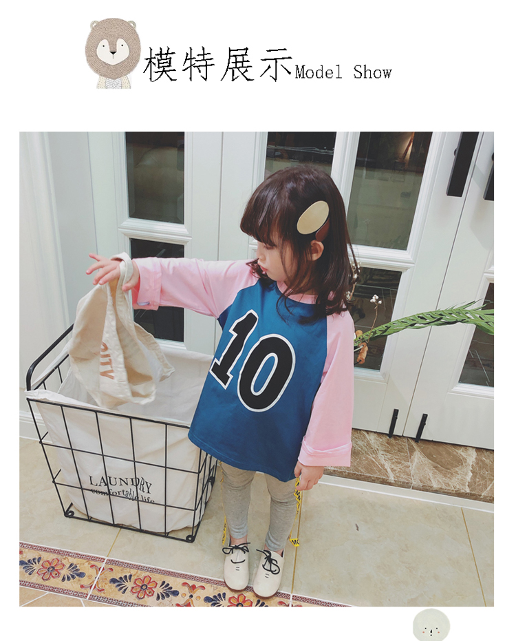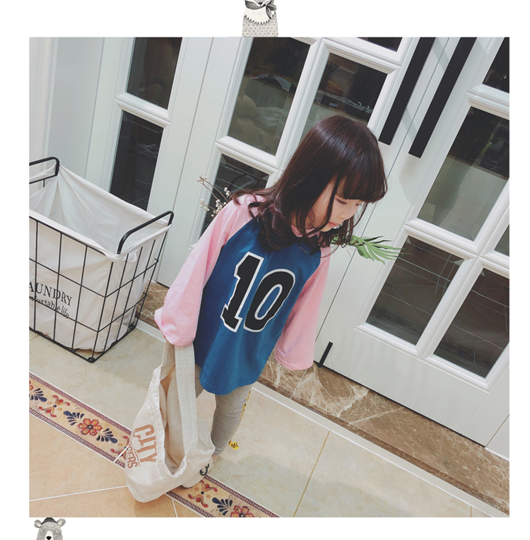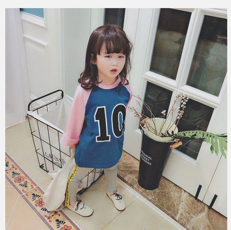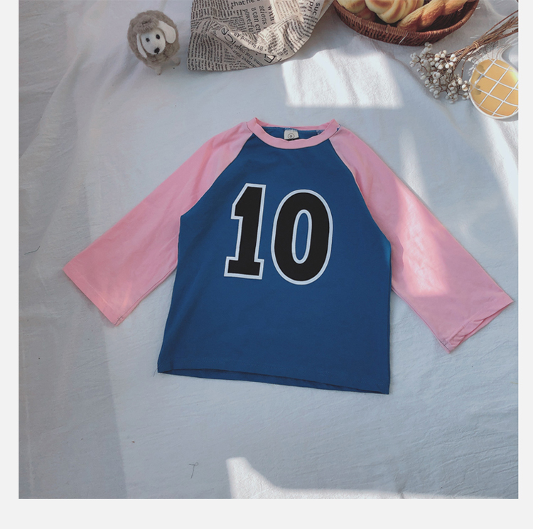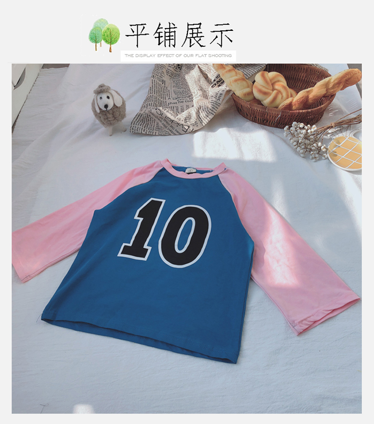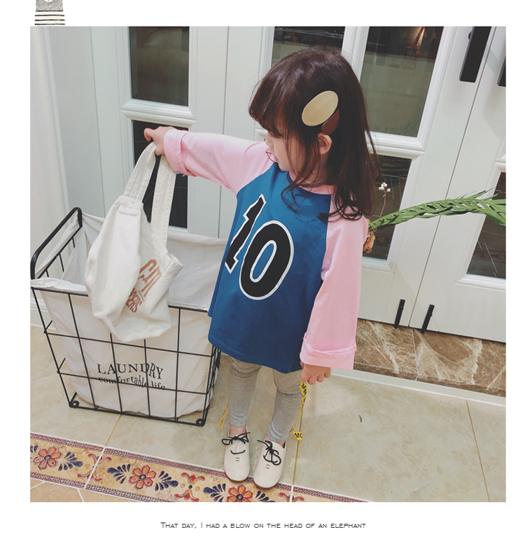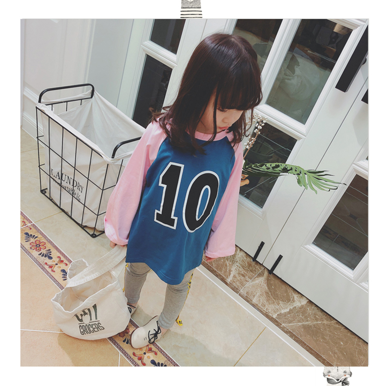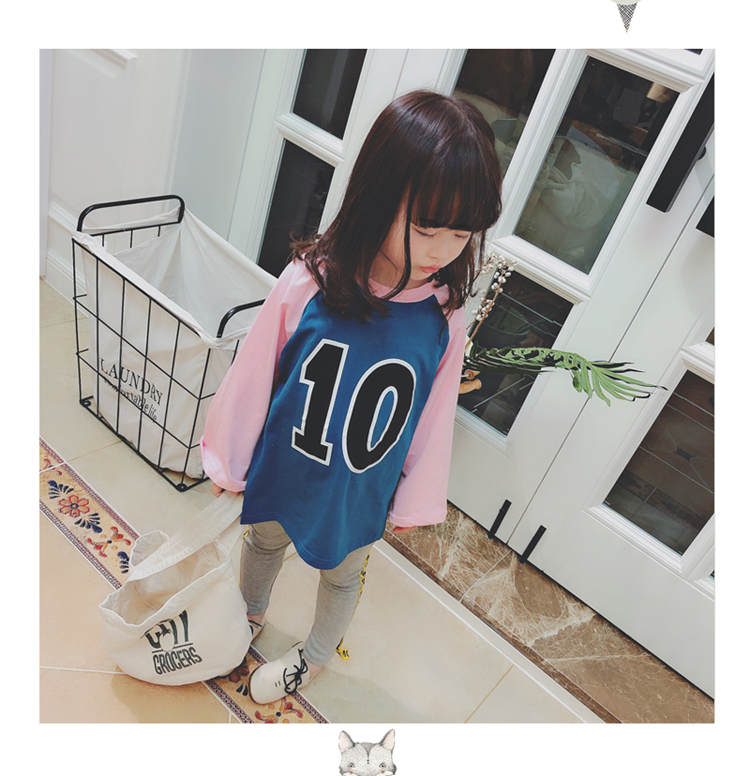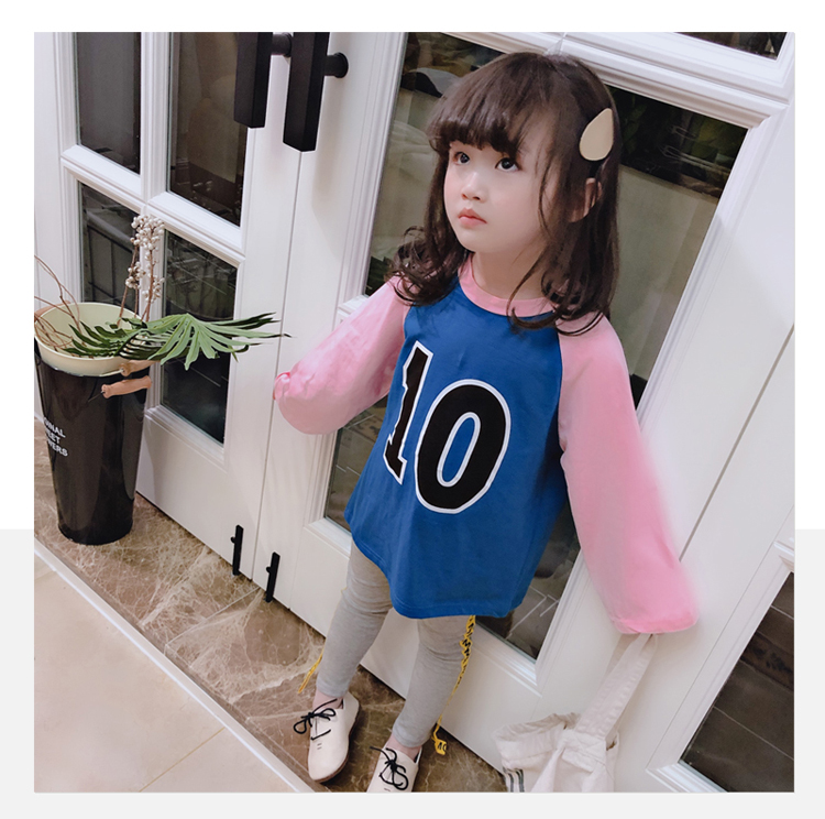 2019童裝春秋新款上衣 中小童長袖百搭寬松可愛撞色數字女寶寶T恤1入
