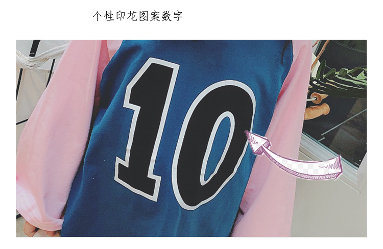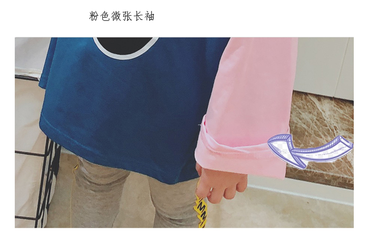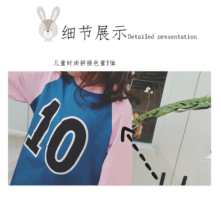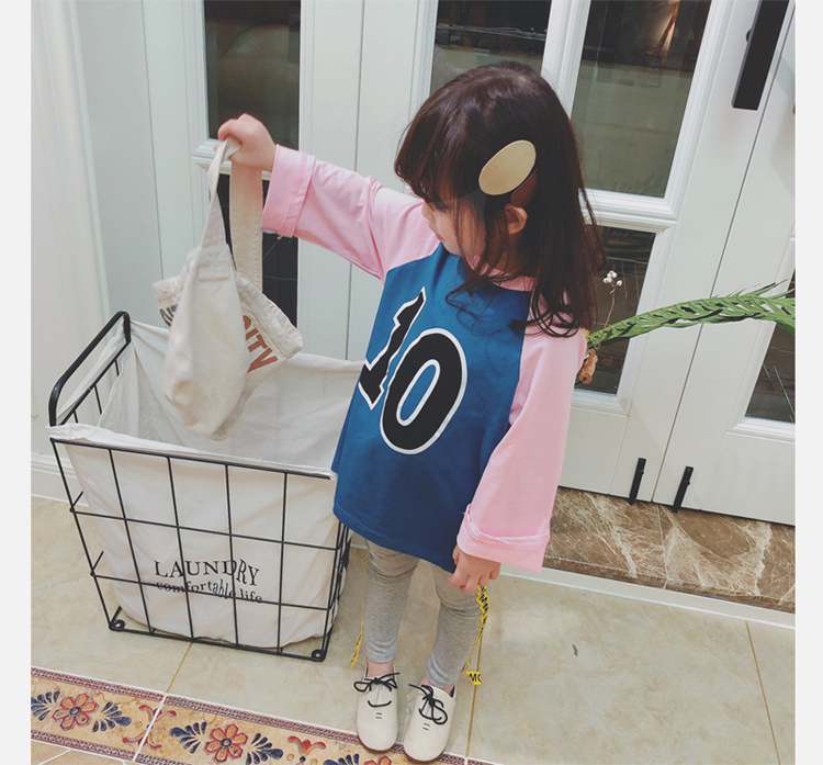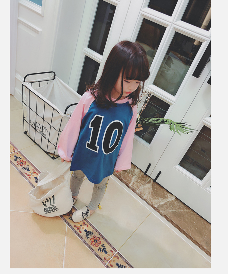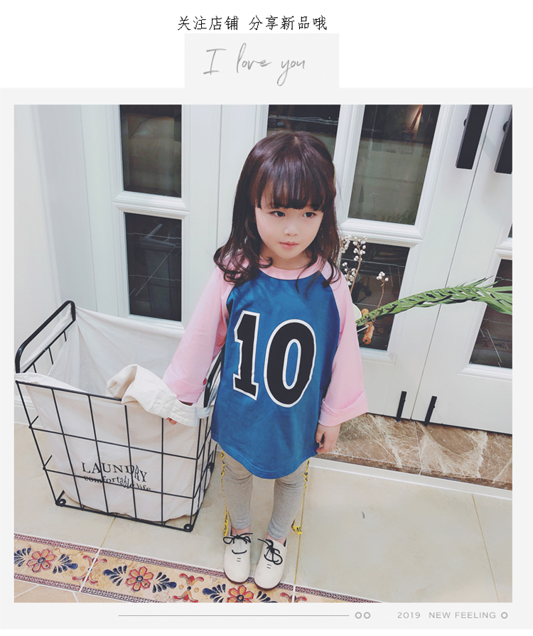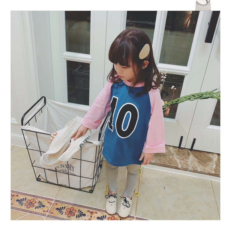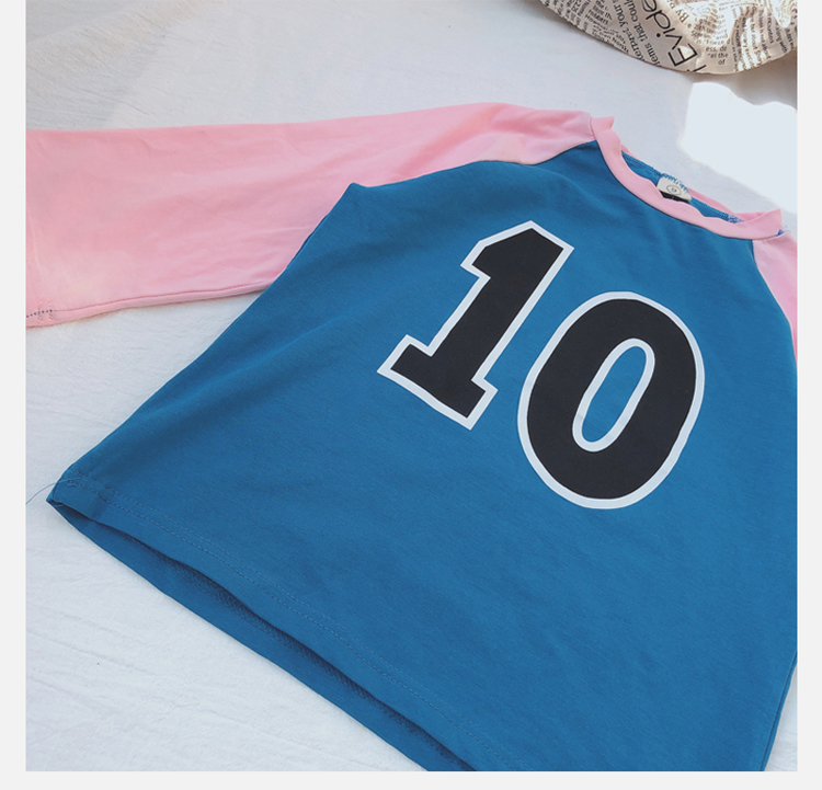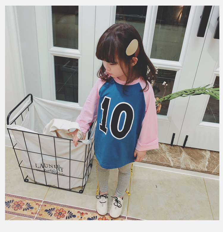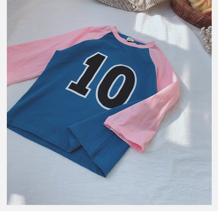 2019童裝春秋新款上衣 中小童長袖百搭寬松可愛撞色數字女寶寶T恤1入