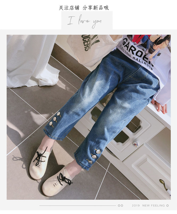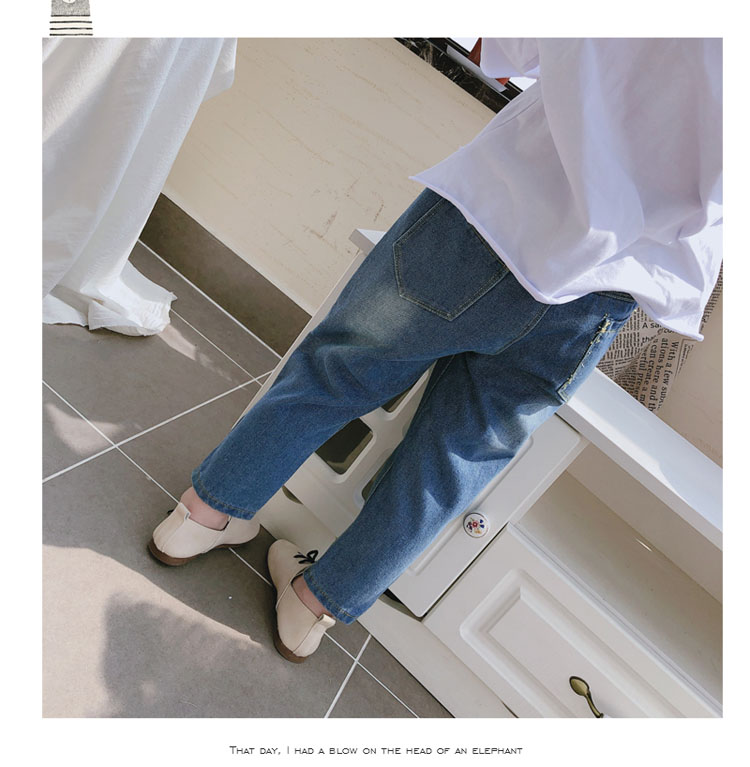 2019童裝春季新款 中小童個性兒童牛仔褲 女童寶寶潮流舒適長褲1入