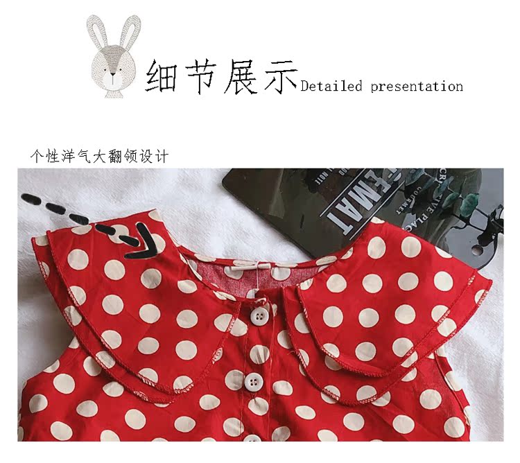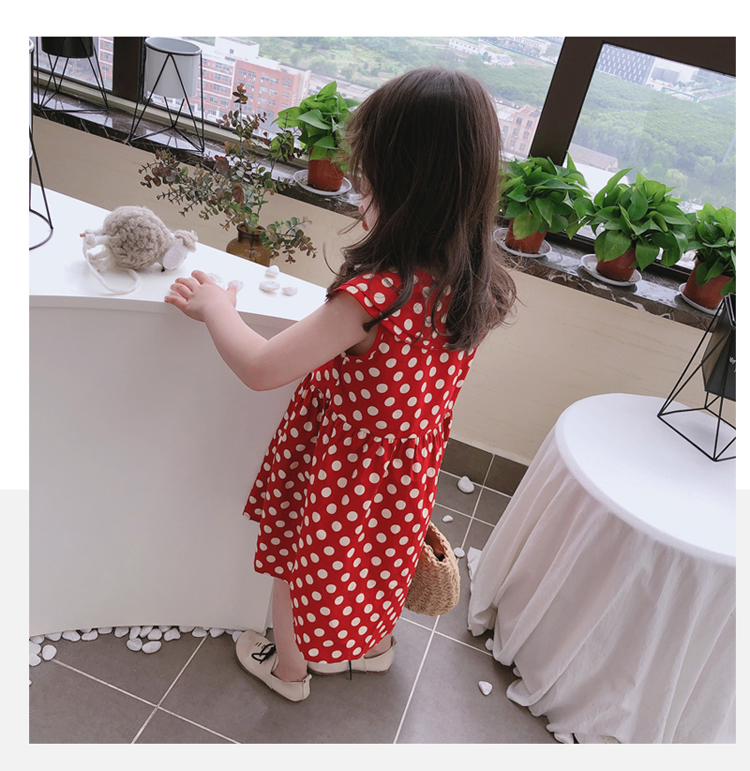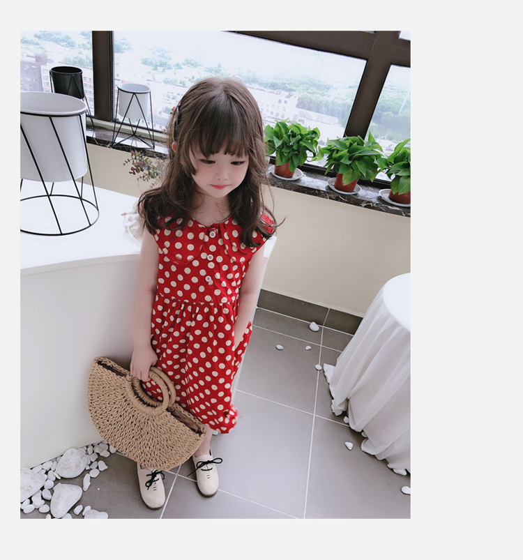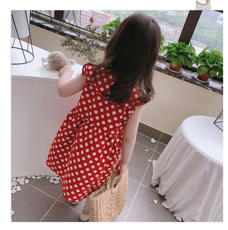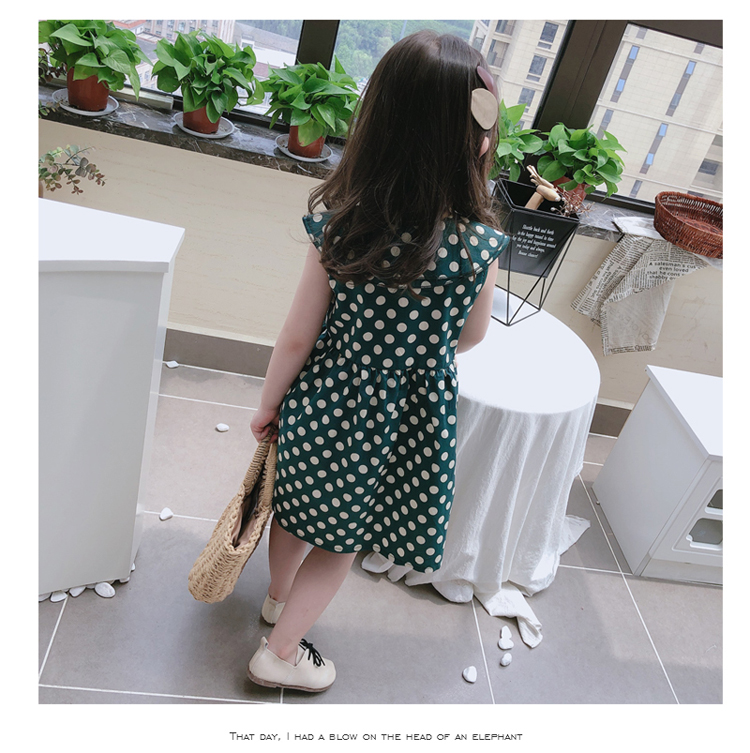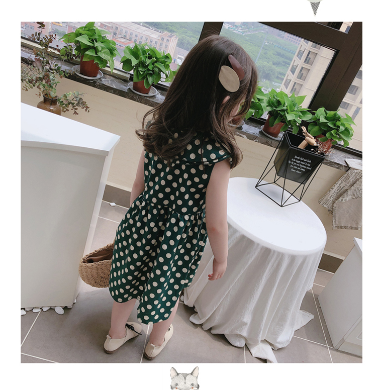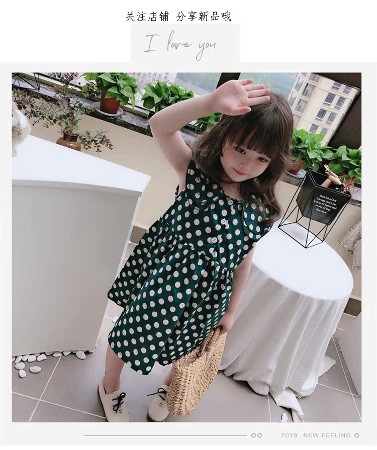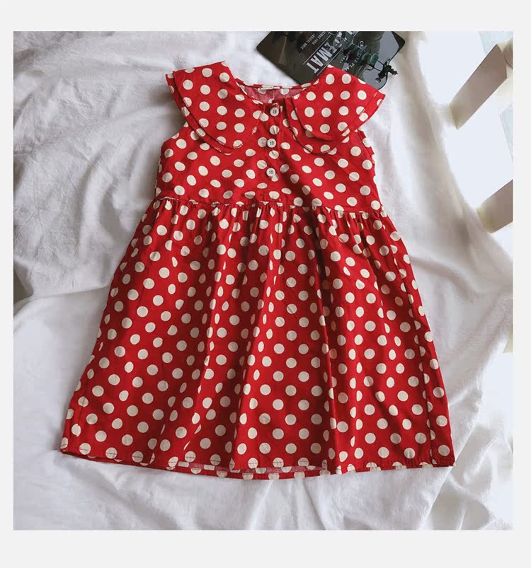 2019寶寶夏季休閑裙 女童荷葉邊大圓點無袖連衣裙 兒童小清新童裙1入