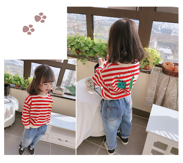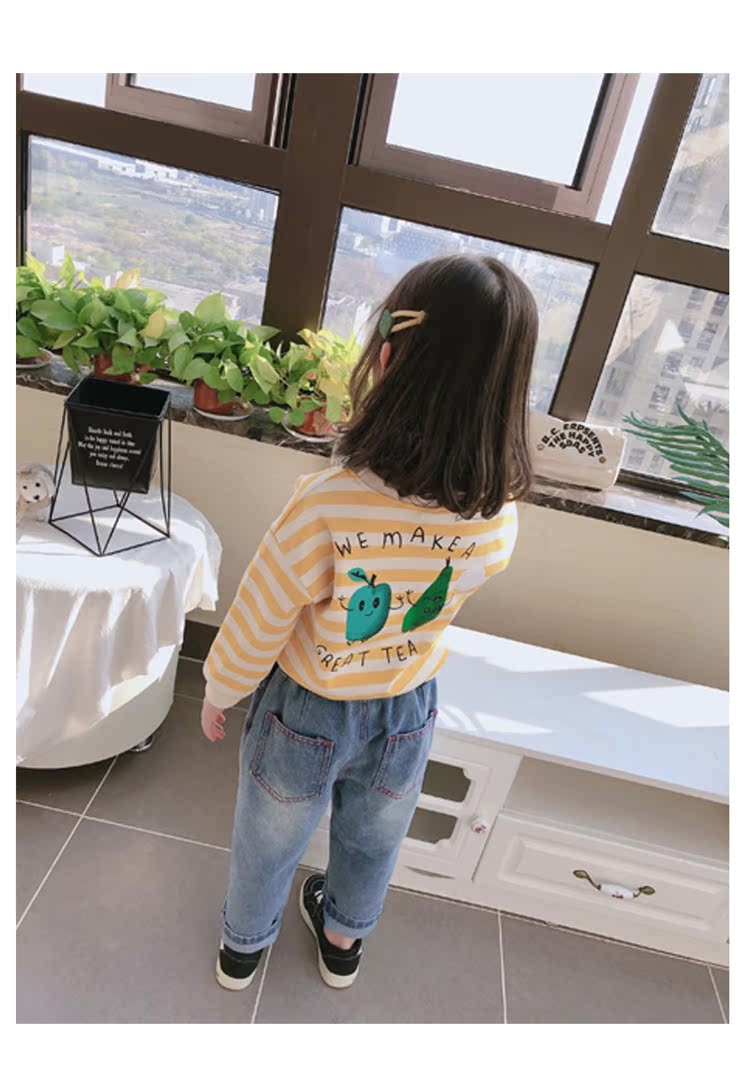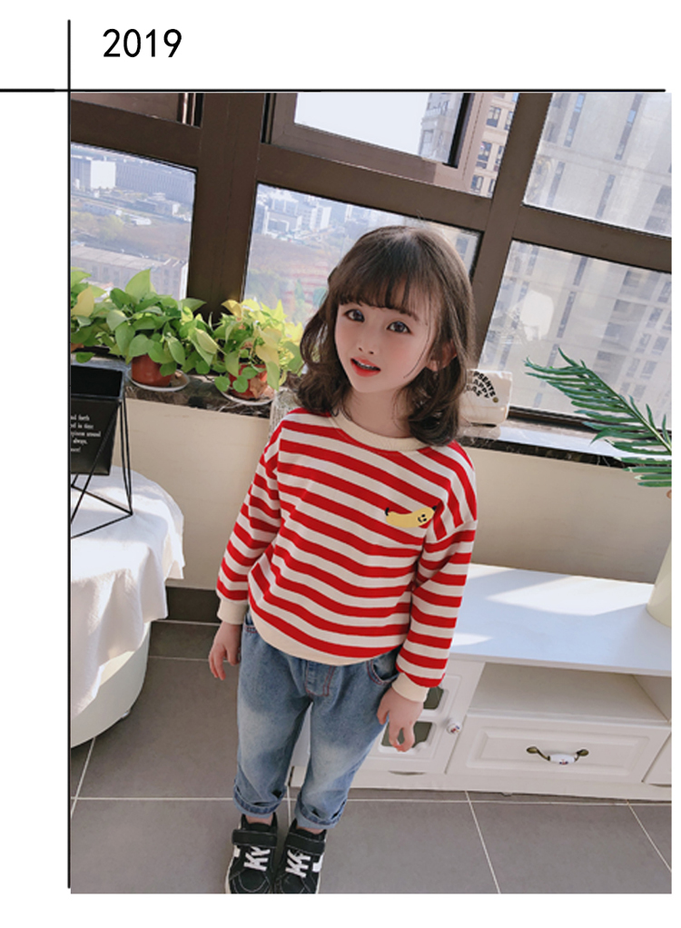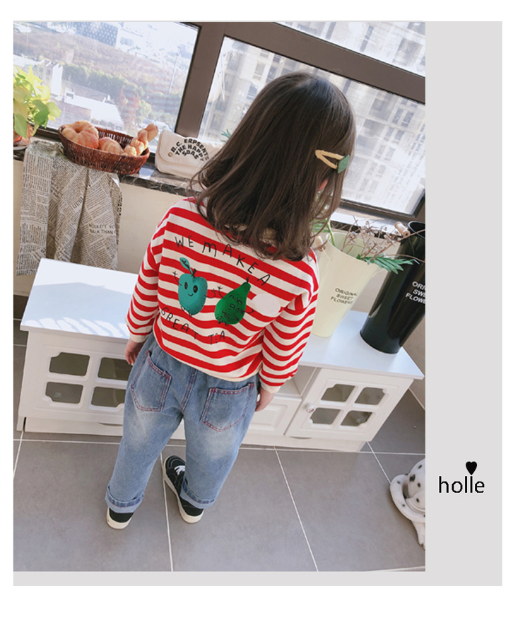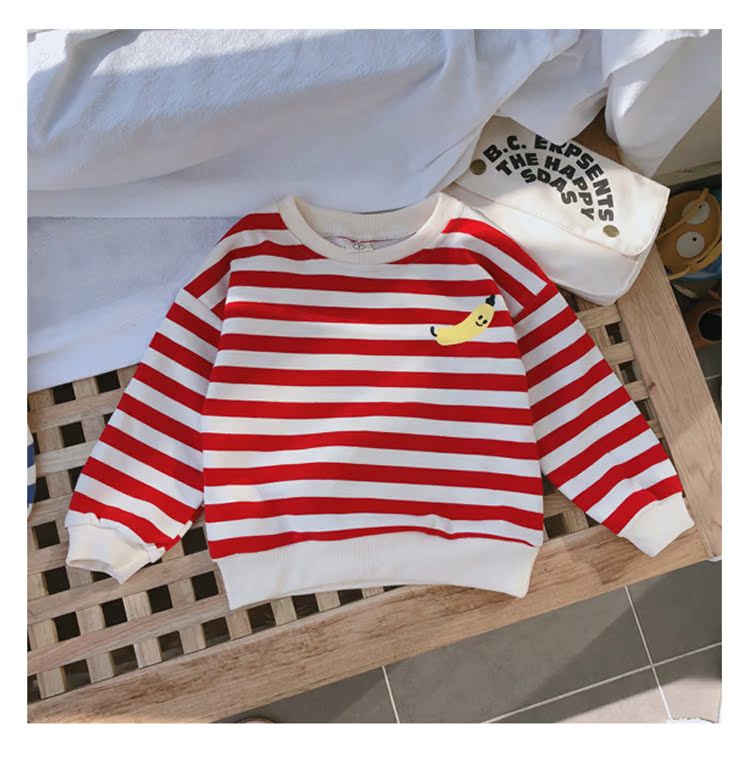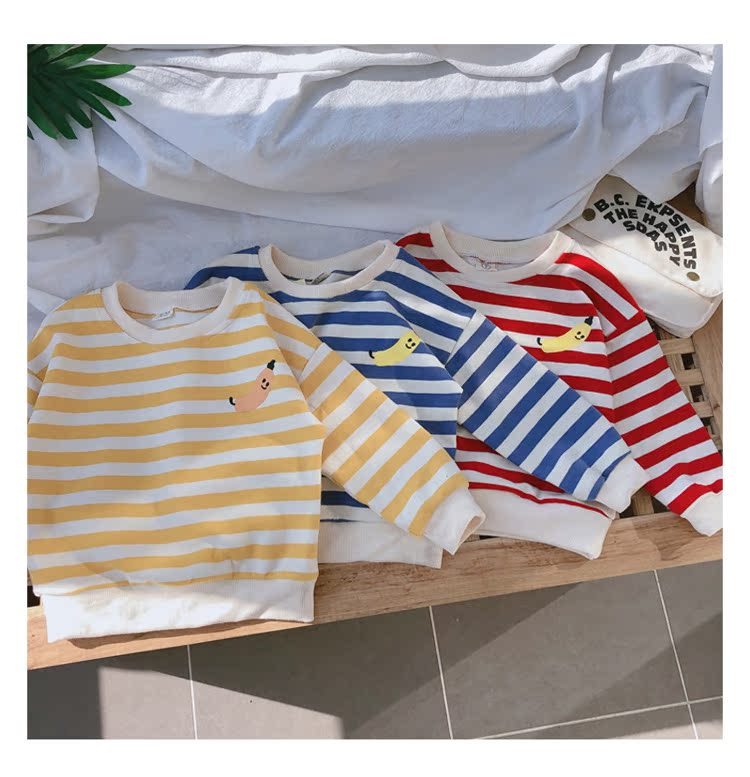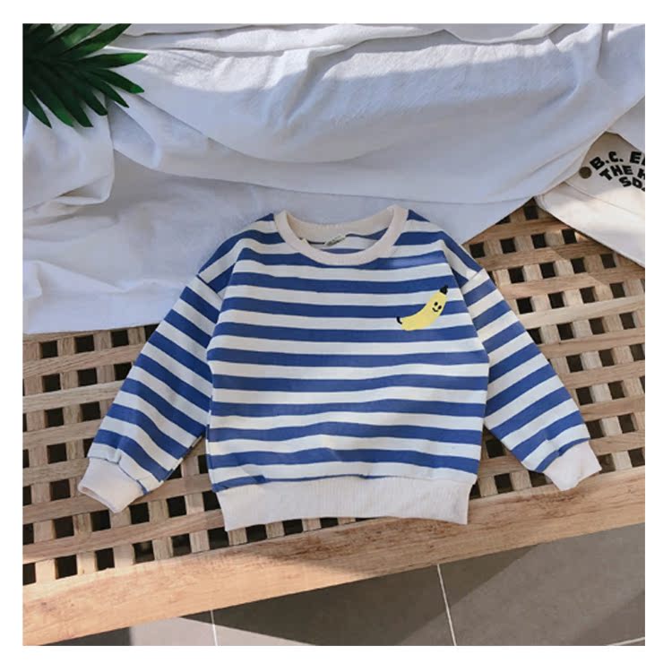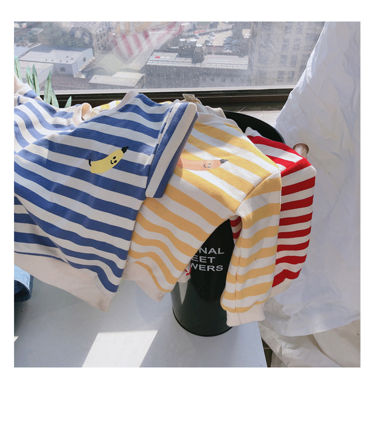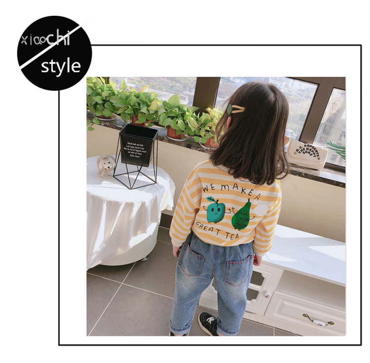 2019春秋季新款 兒童簡約舒適圓領套頭衫 男女童可愛水果印花衛衣1入