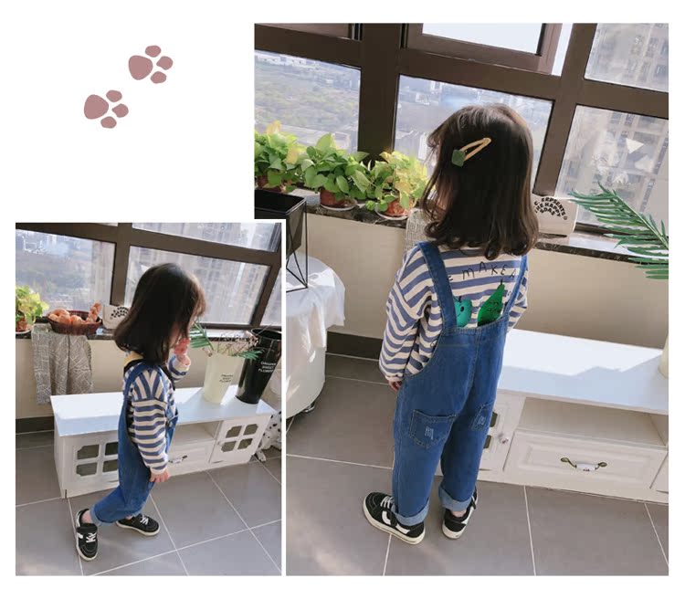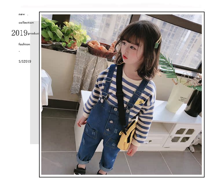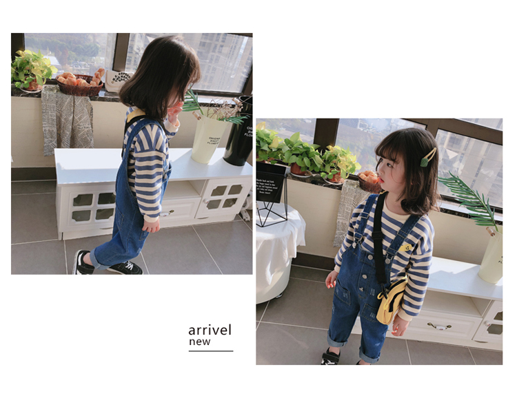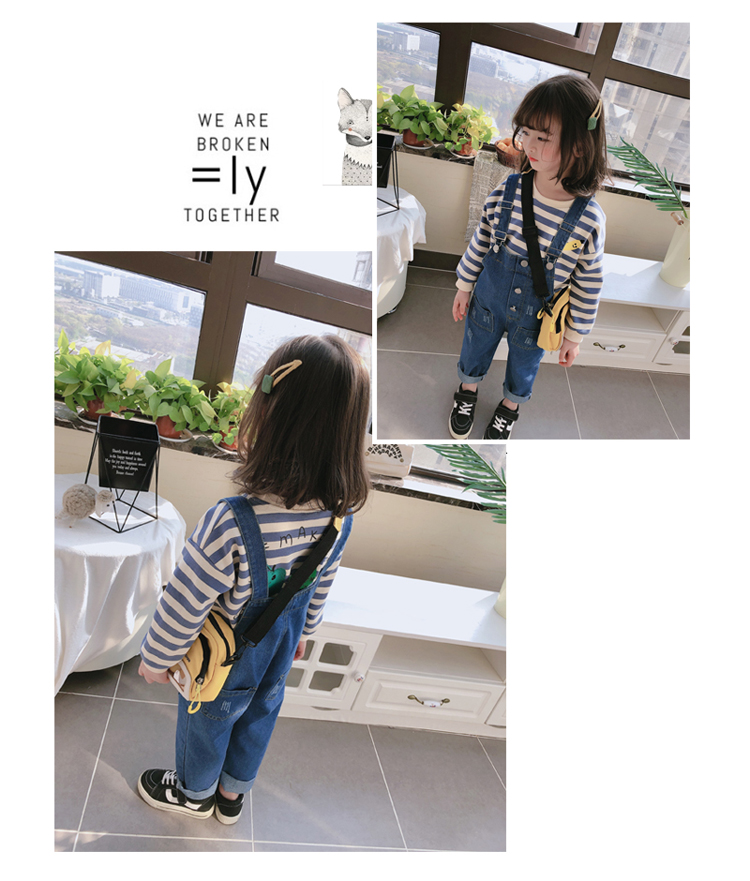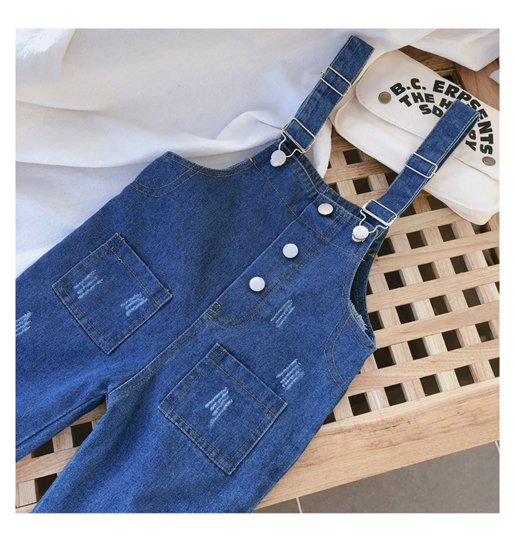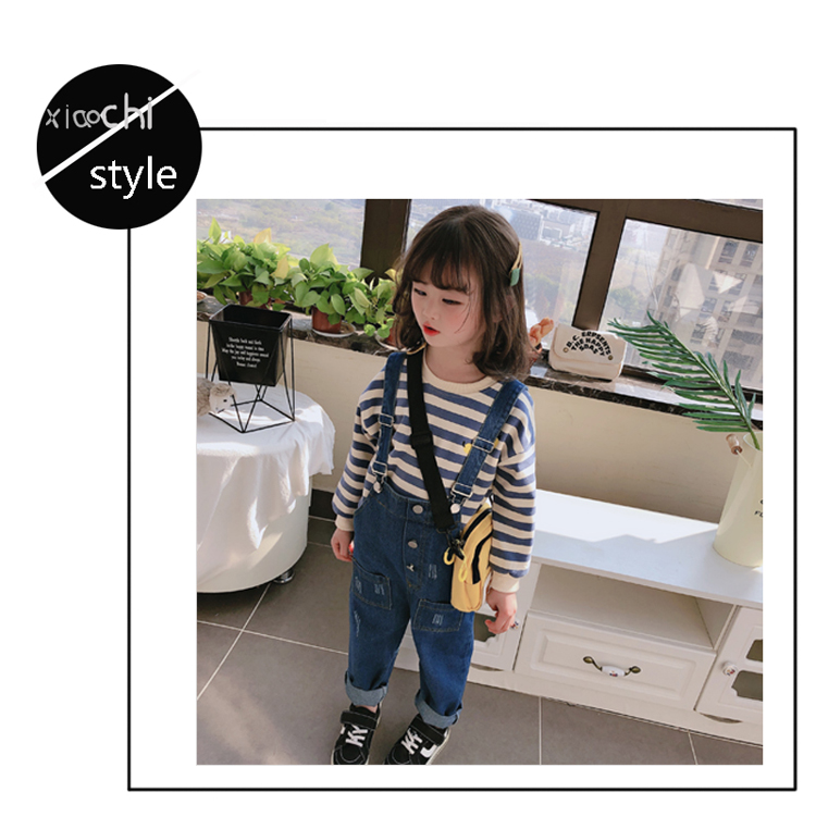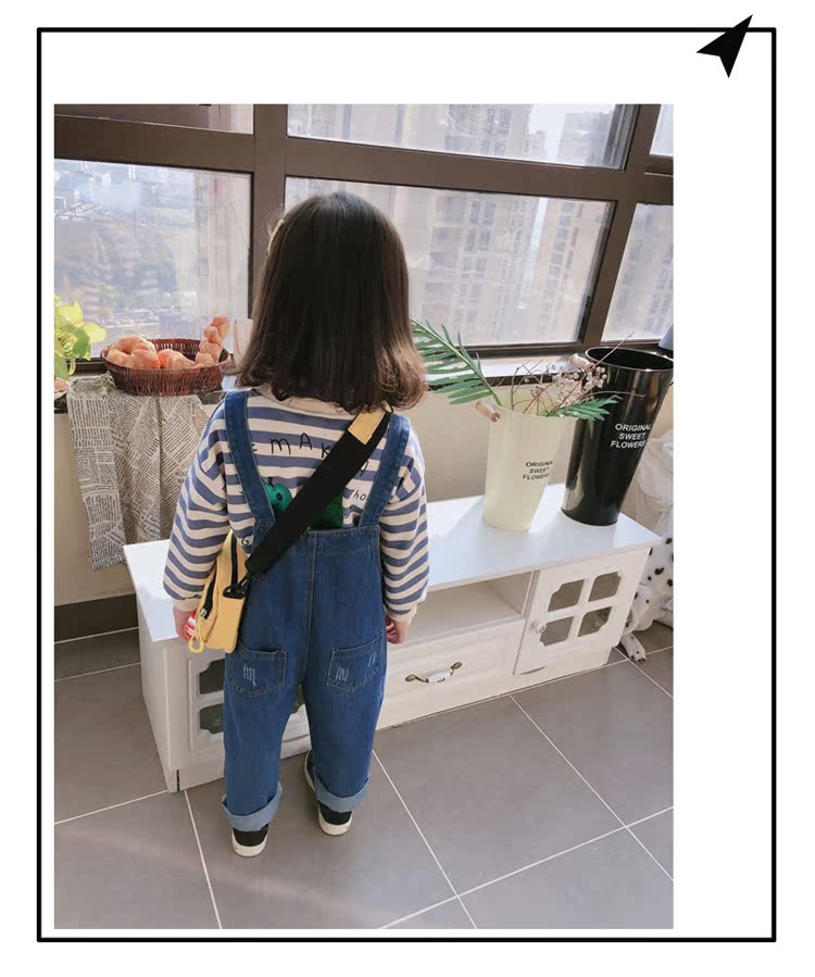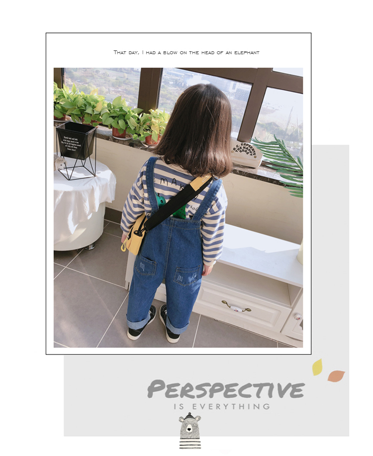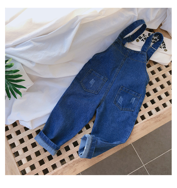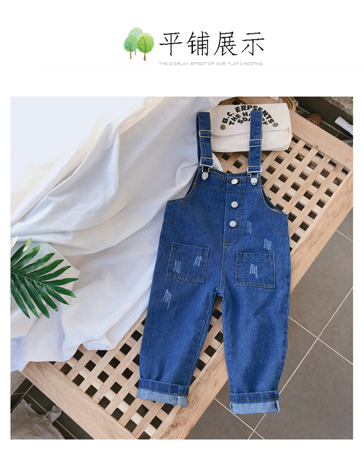 2019春秋季新款 中小童俏皮可愛背帶褲 男女童帥氣舒適刮花牛仔褲1入