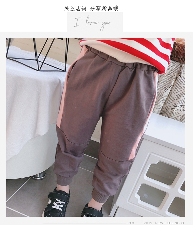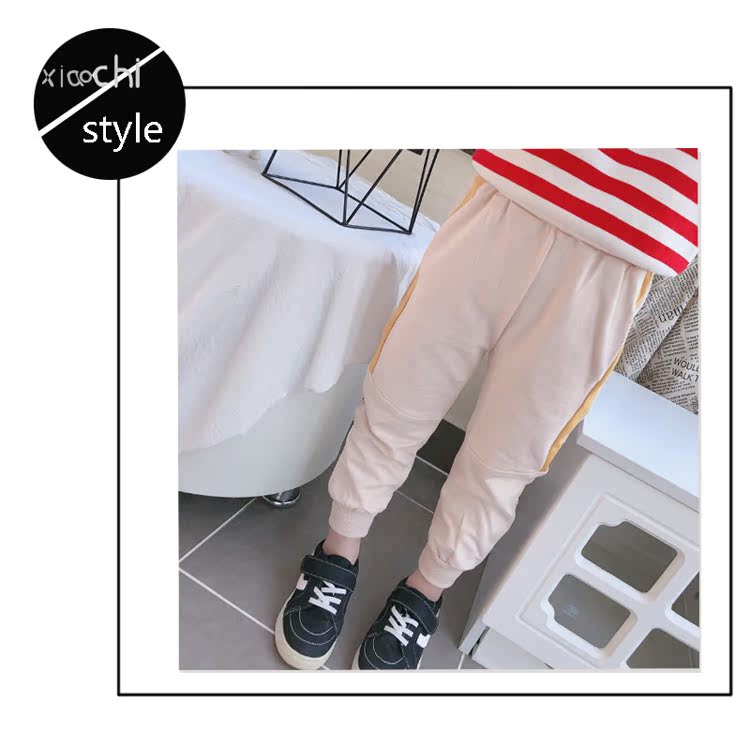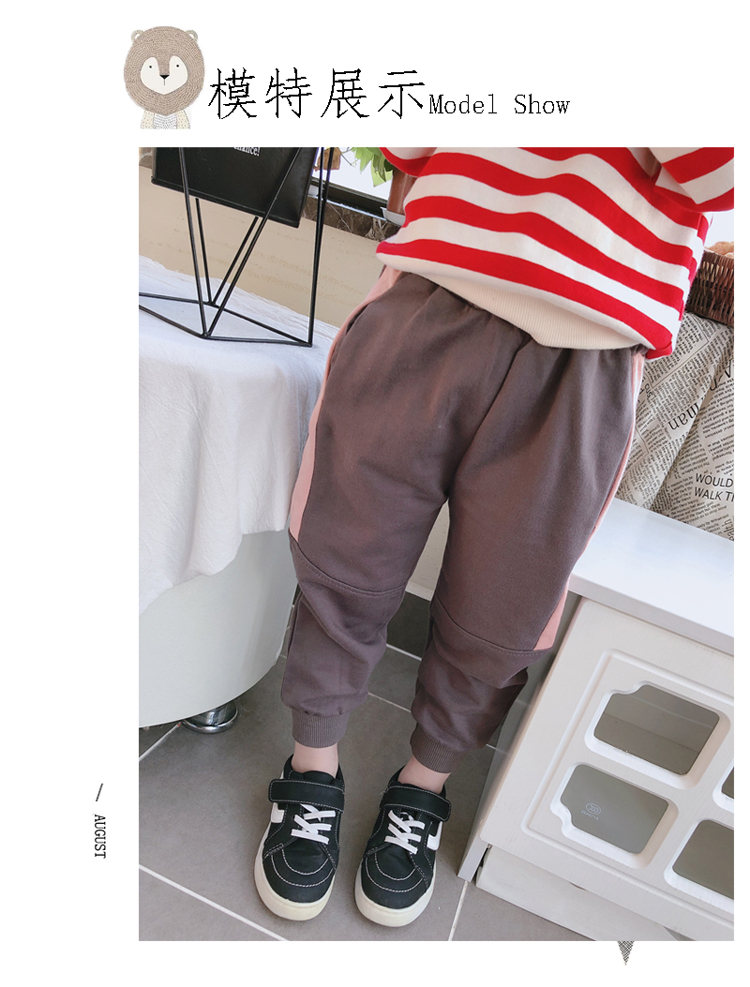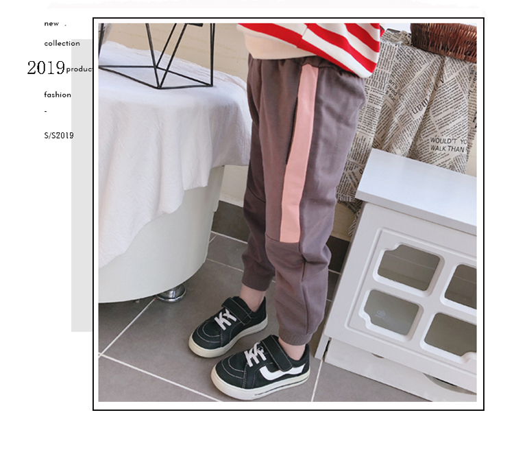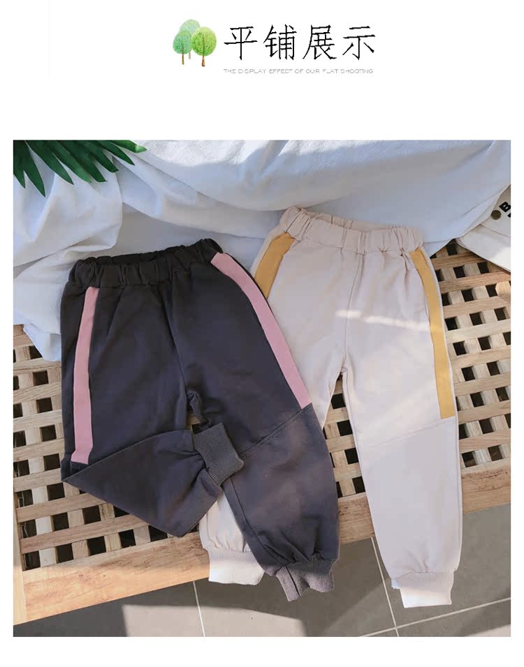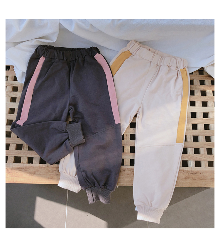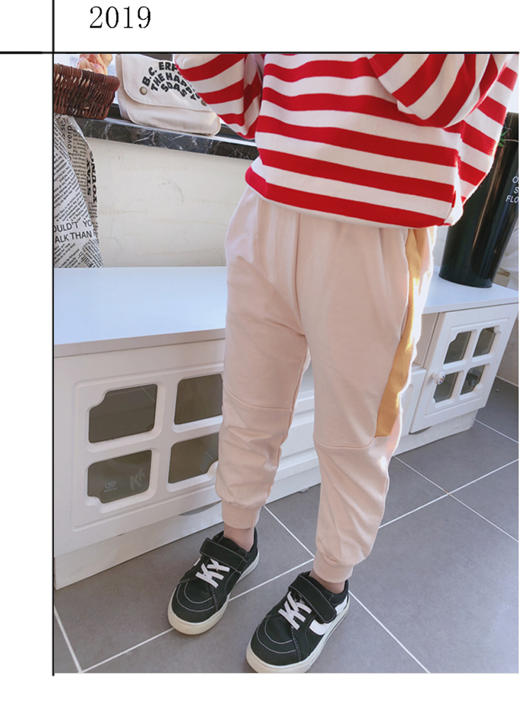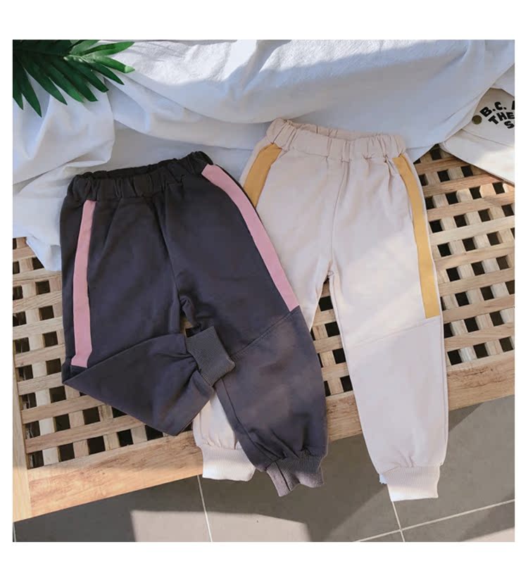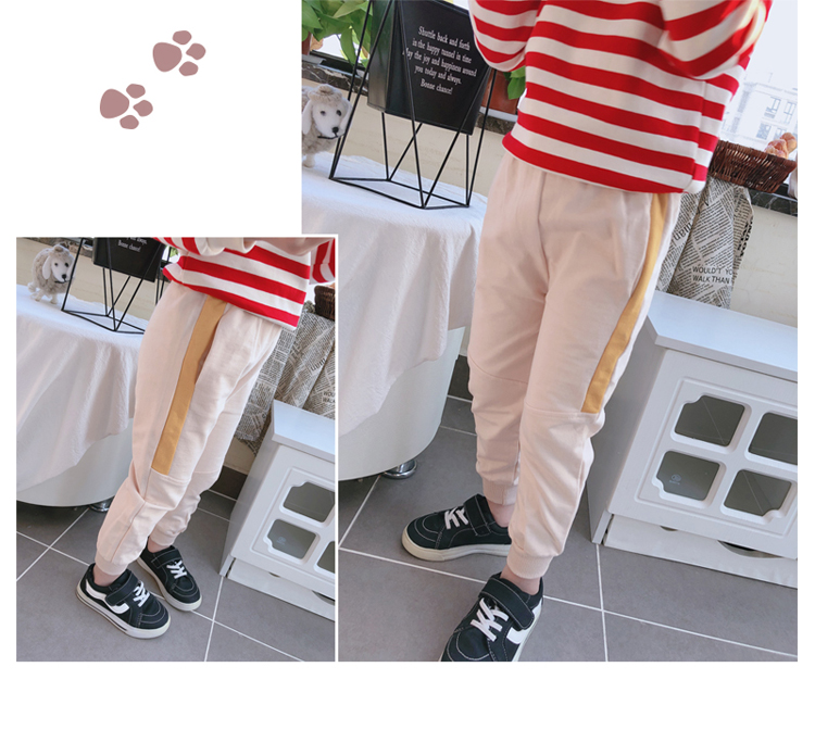 2019春秋季新款 兒童帥氣舒適束口休閑褲 女童個性寬松撞色運動褲1入