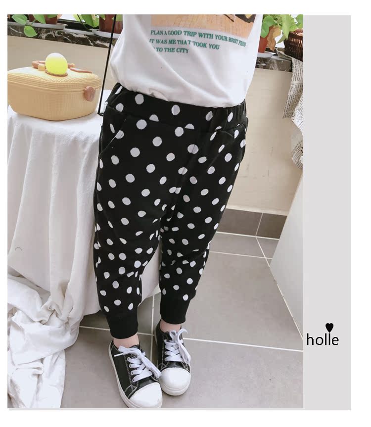 2019冬季新款 兒童寬松舒適加厚休閑褲 男女童可愛圓點束口長褲1入