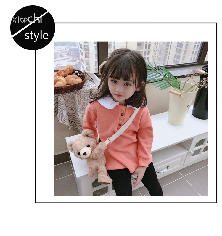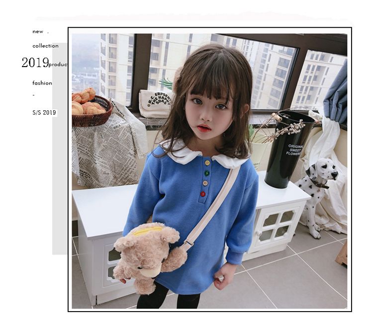2019中小童秋冬季新款加絨翻領印花圖案上衣 女童可愛中長款衛衣1入