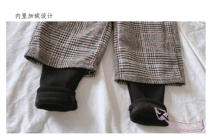2019冬季新款女童個性保暖假兩件打底褲 兒童格子加絨加厚闊腿褲1入