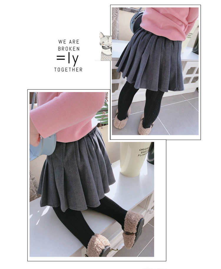 2019冬季新款 中小童可愛甜美純色百褶裙 女童加絨加厚寶寶半身裙1入