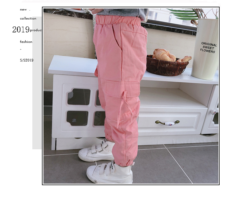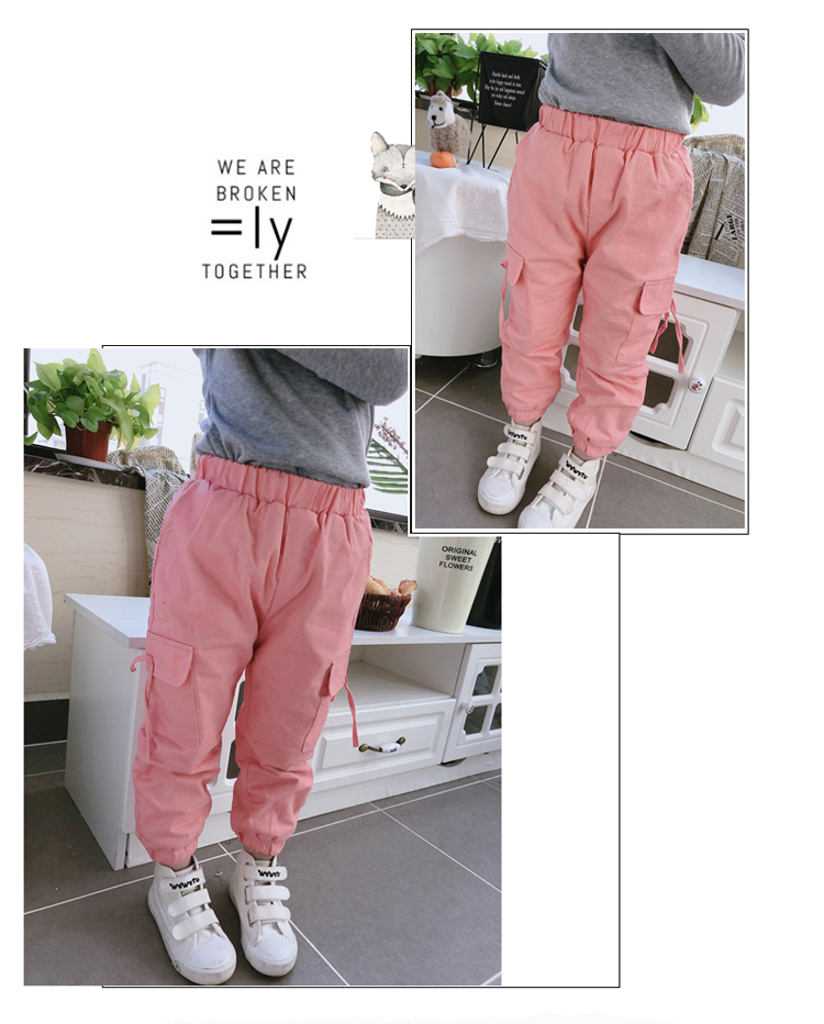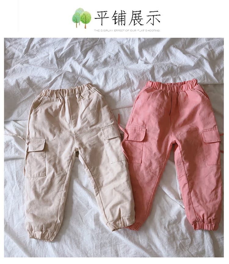 2019冬季新款 中小童加絨加厚大口袋休閑褲 女童舒適純色束口長褲1入