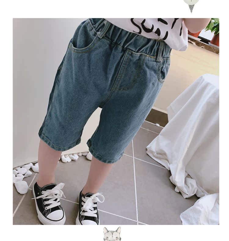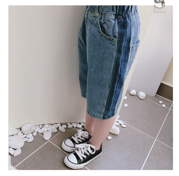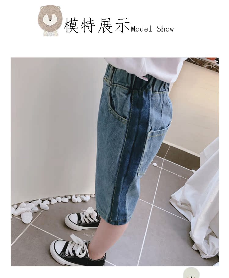 2019夏季新款 兒童寬松休閑褲 男女童寶寶可愛洋氣側拉條牛仔褲1入