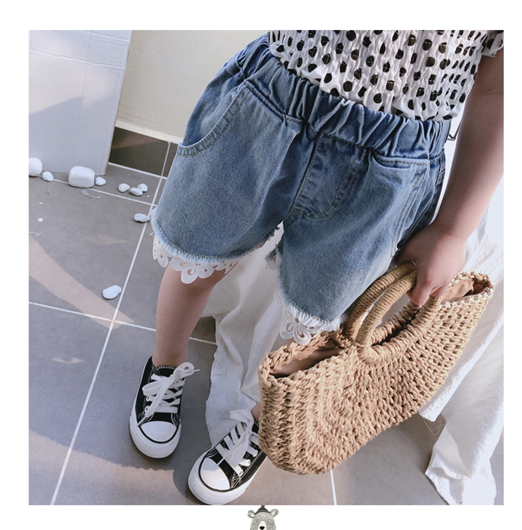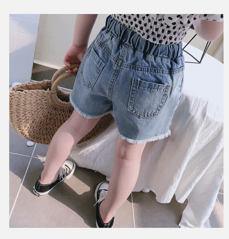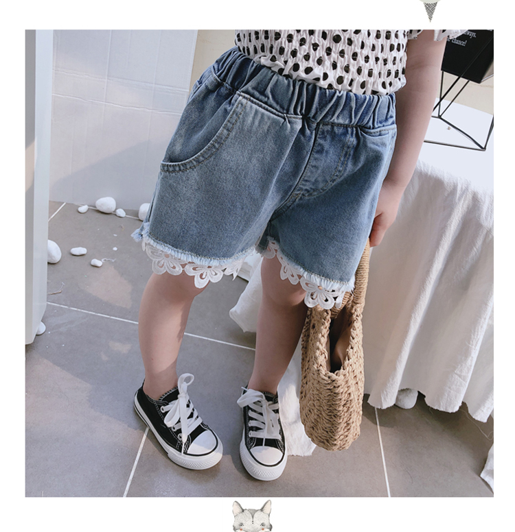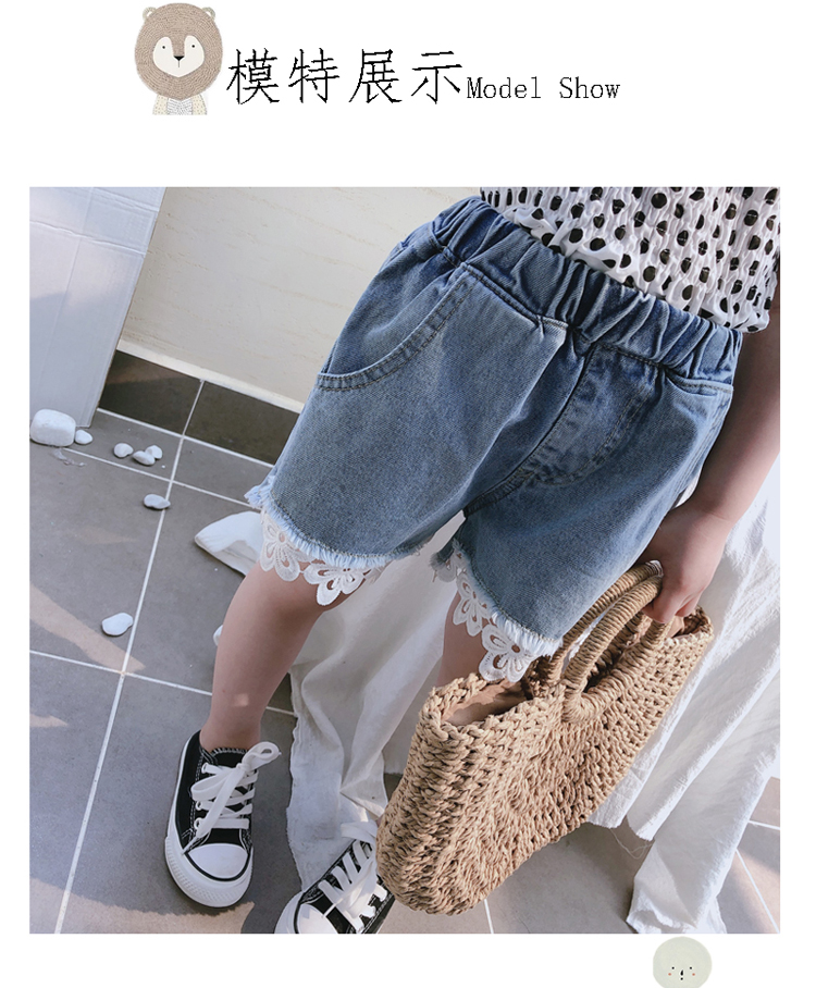 2019夏季新款 女童舒適洋氣牛仔褲 中小童可愛甜美花邊流蘇熱褲1入