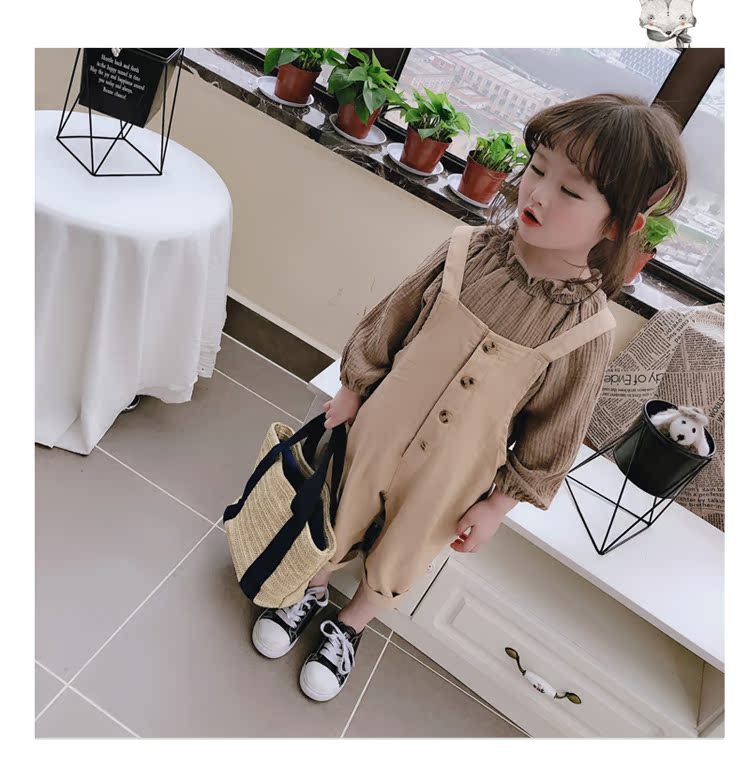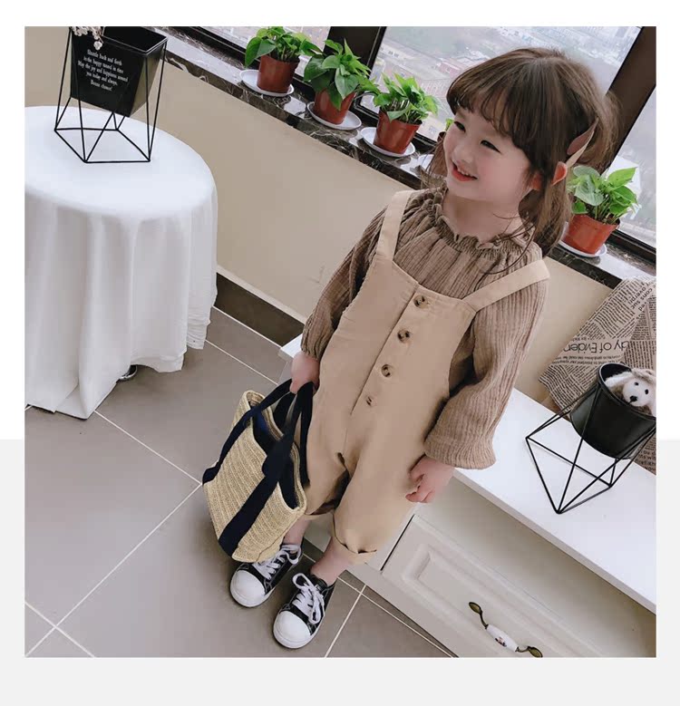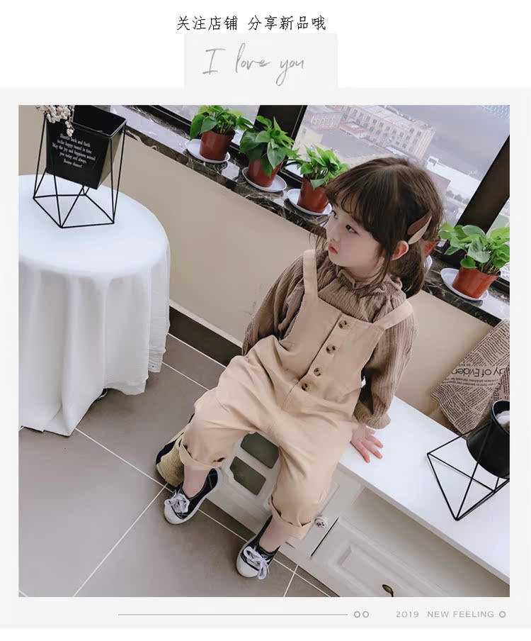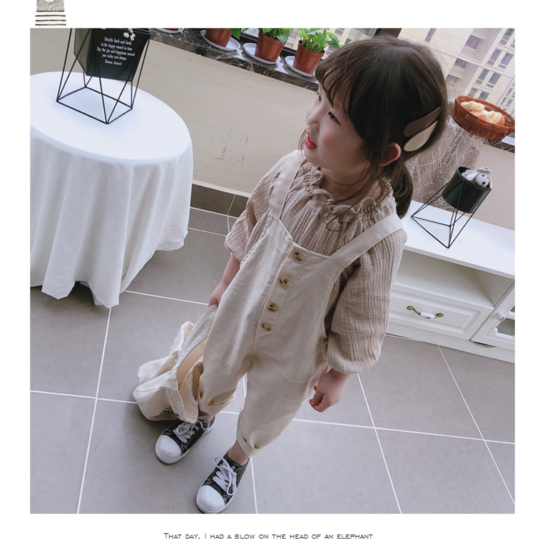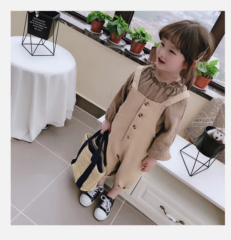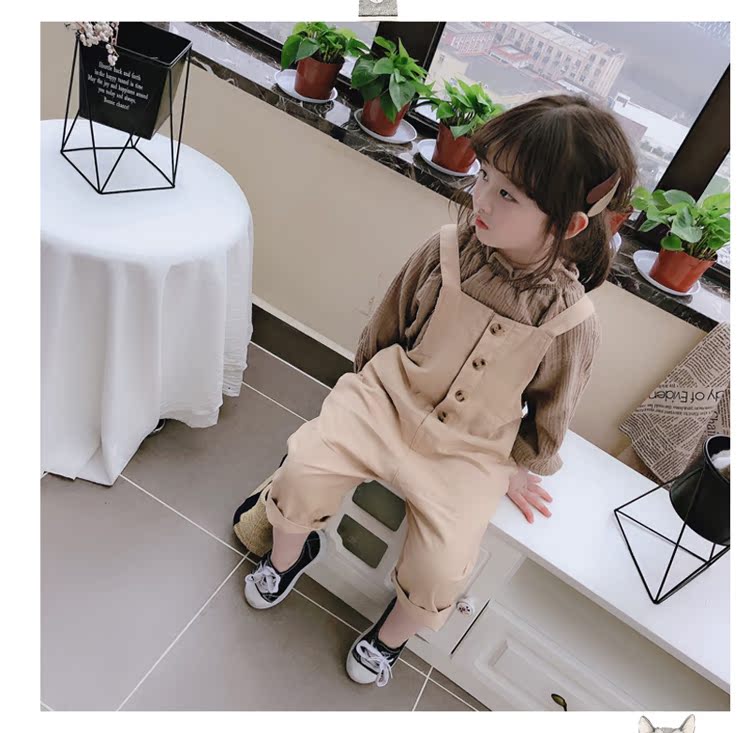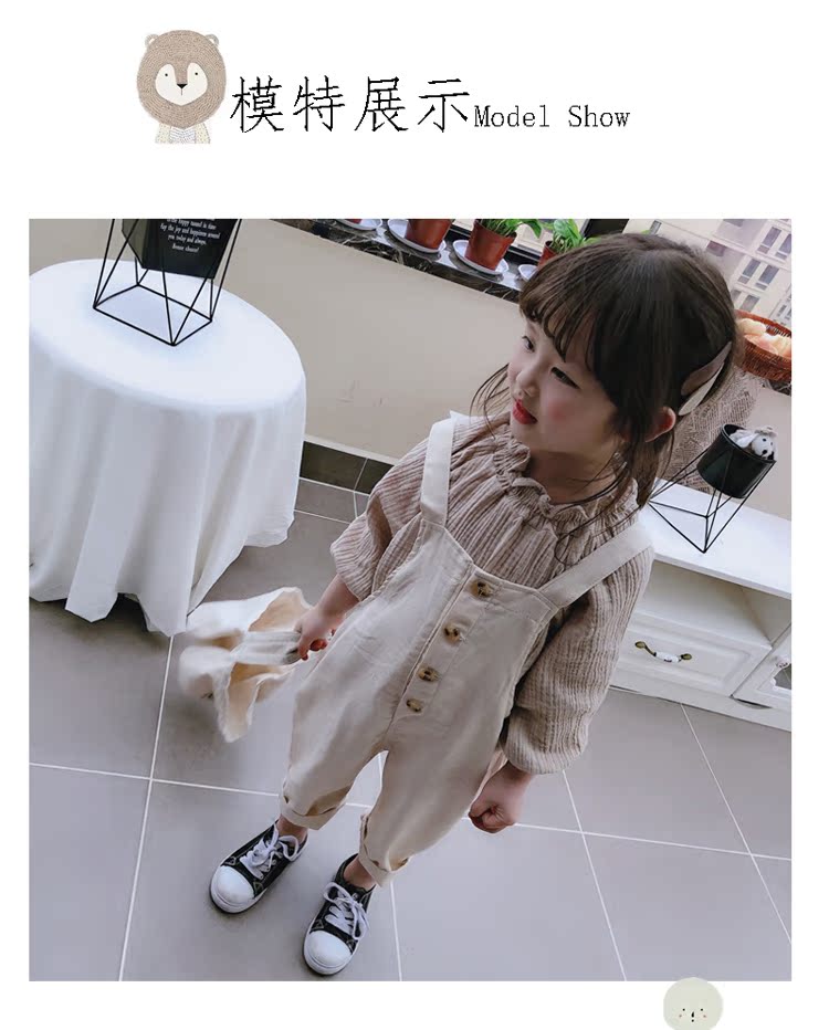 2019春季新款 中小童小清新排口背帶褲女童寶寶純色長褲 兒童褲子1入