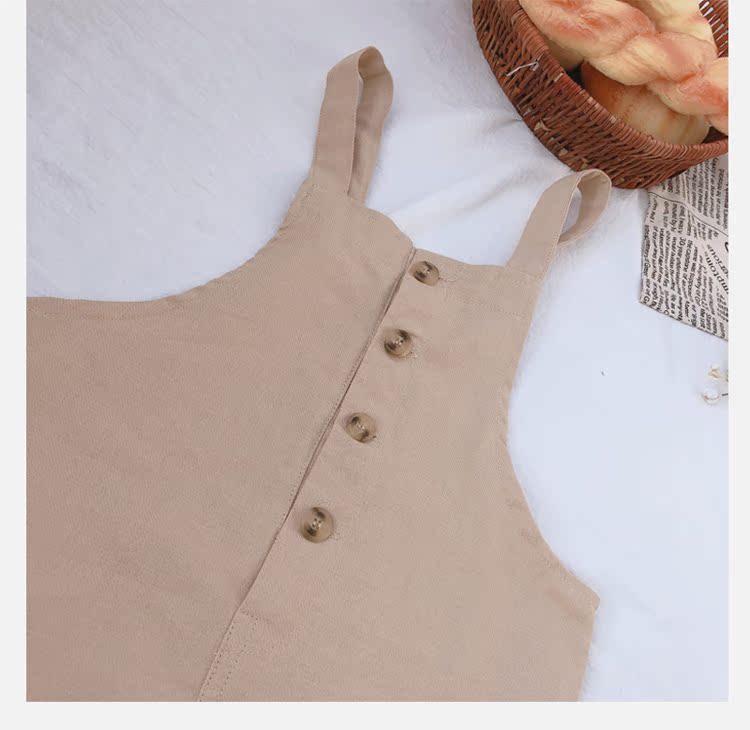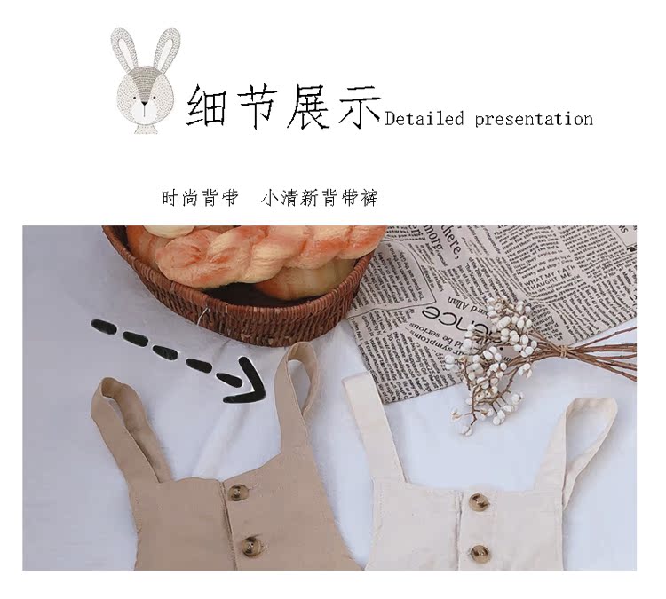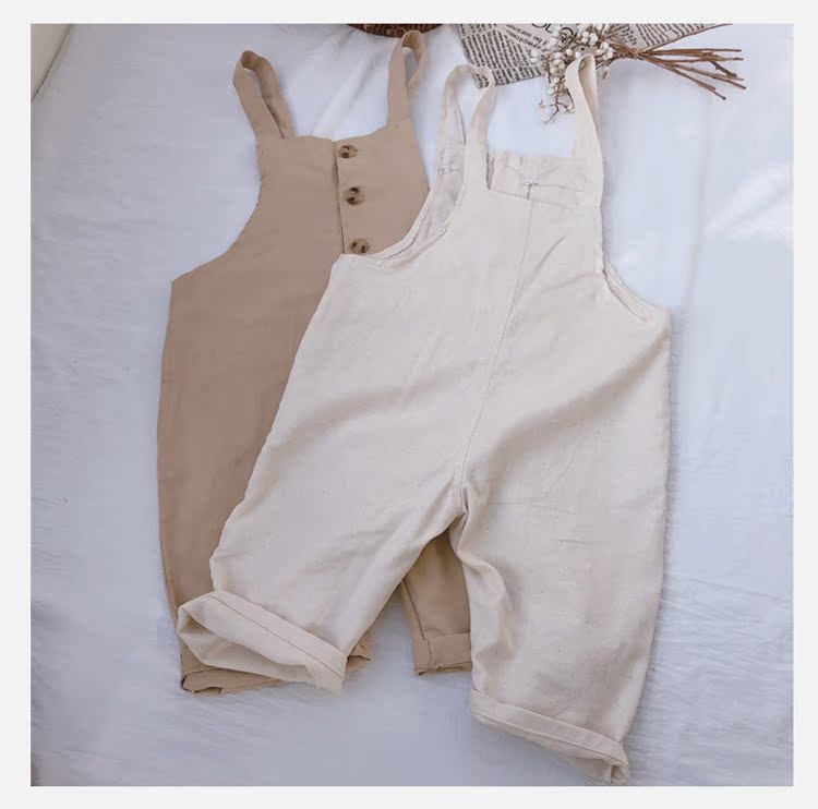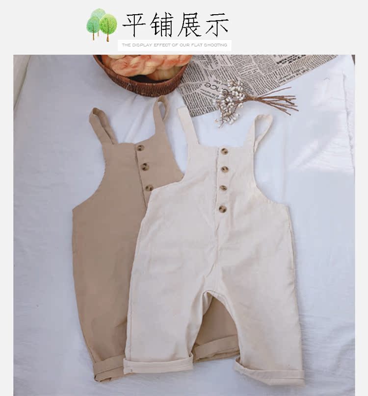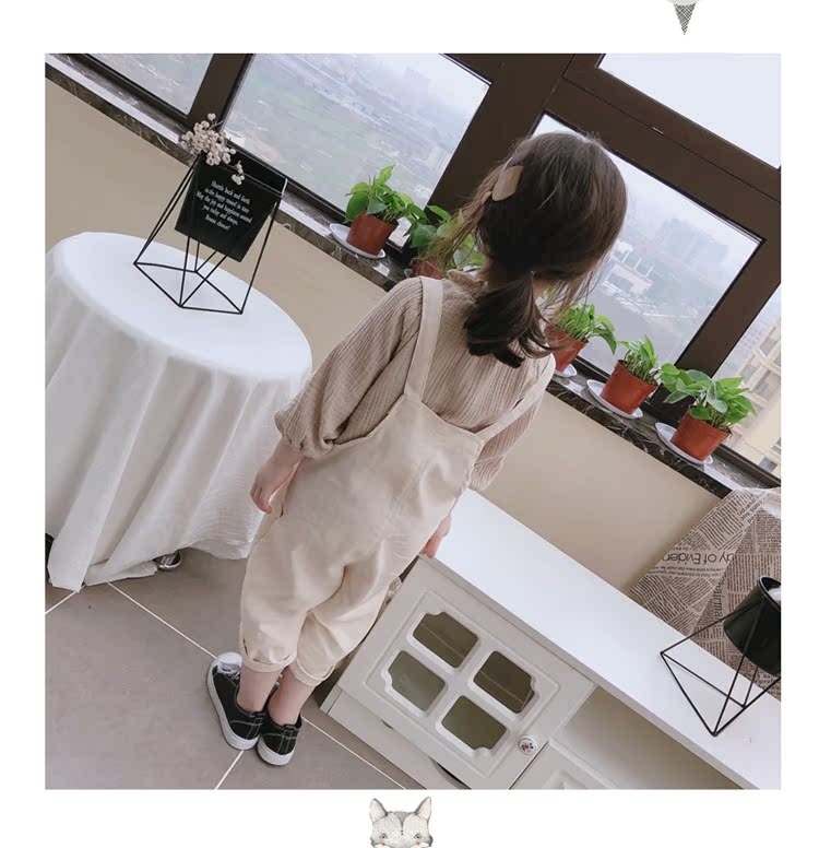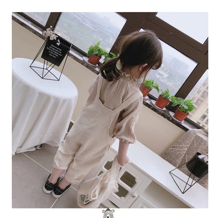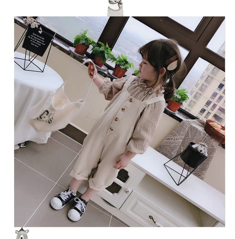 2019春季新款 中小童小清新排口背帶褲女童寶寶純色長褲 兒童褲子1入