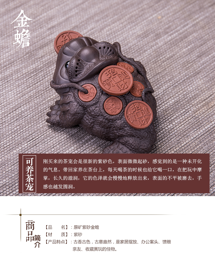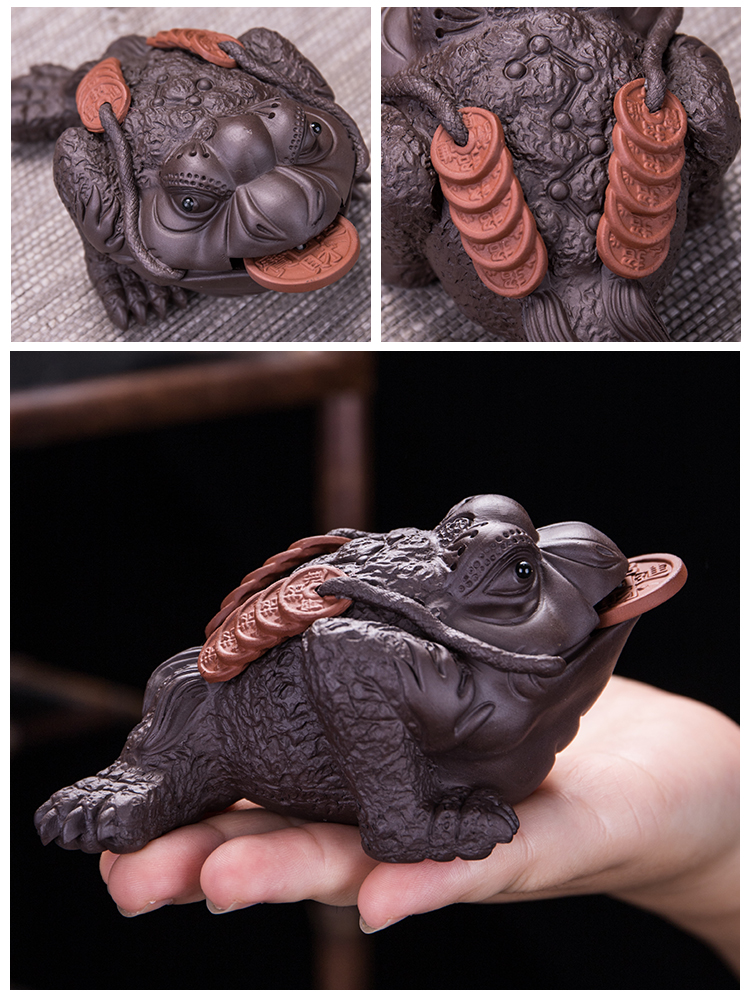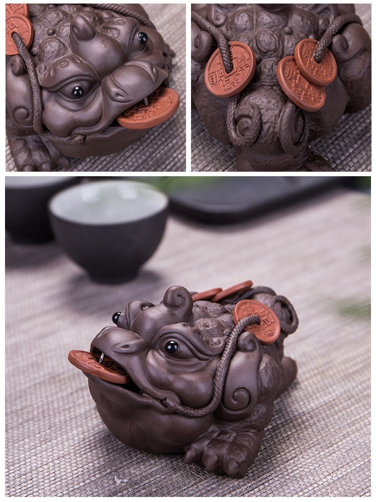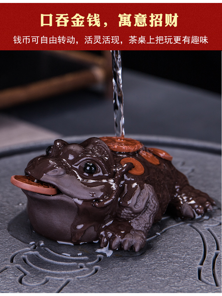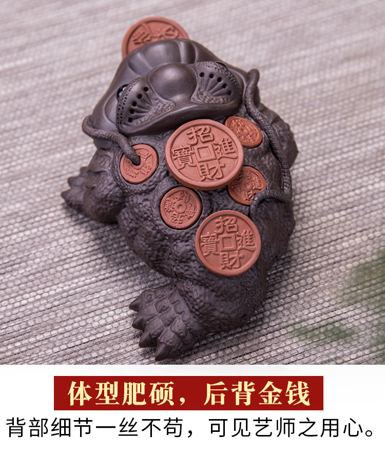 金蟾紫砂茶寵擺件可養招財噴水茶玩茶臺手工三足蟾蜍功夫茶具配件1入