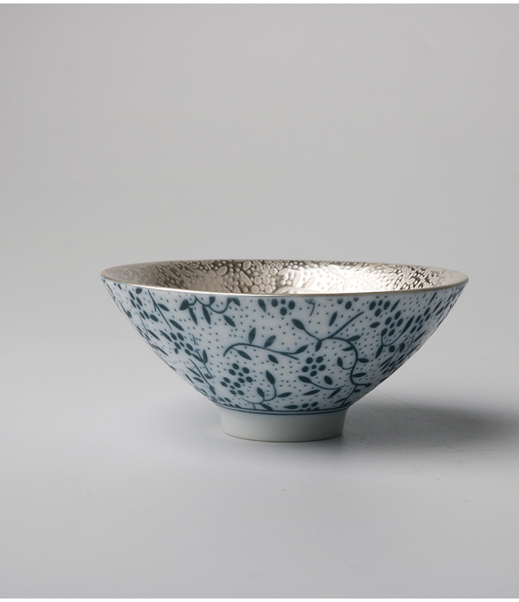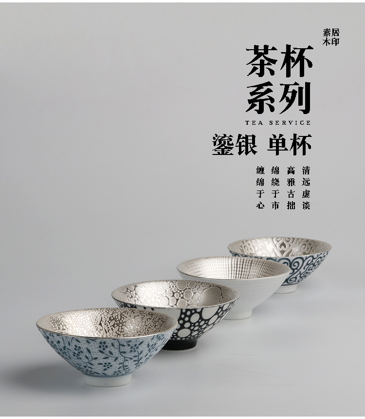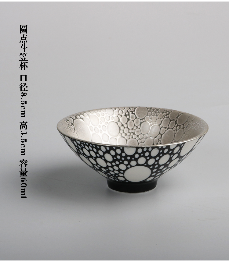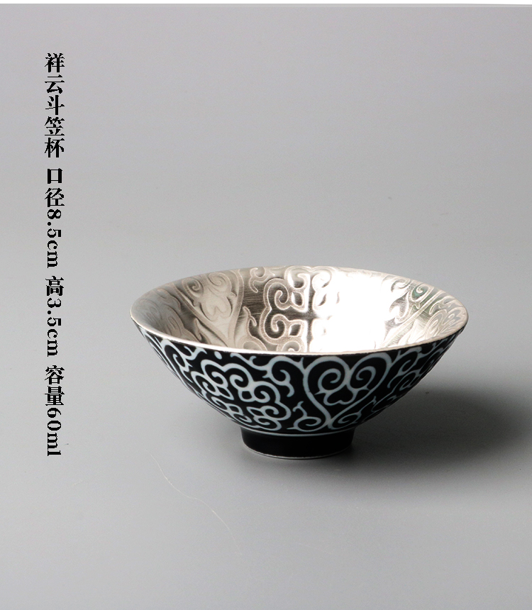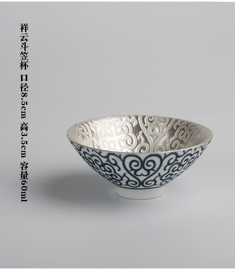 銀杯子 999純銀手工鎏銀茶杯斗笠杯陶瓷品茗杯茶碗鑲銀主人杯禮品1入