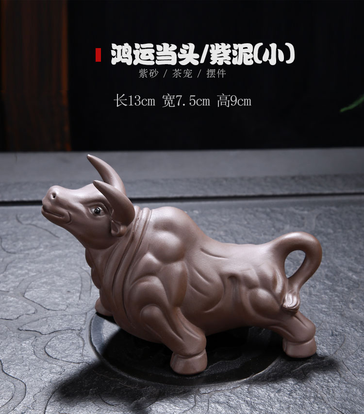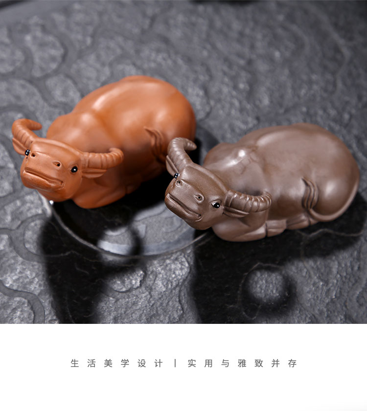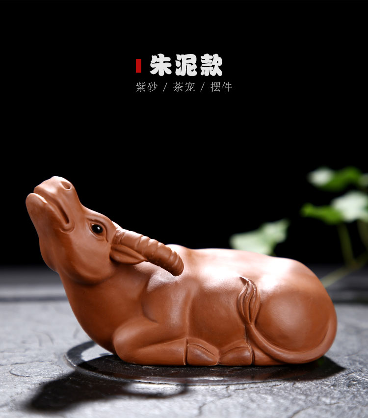 紫砂水牛茶寵擺件可養功夫茶具手工茶道創意茶玩牛轉乾坤茶盤配件1入