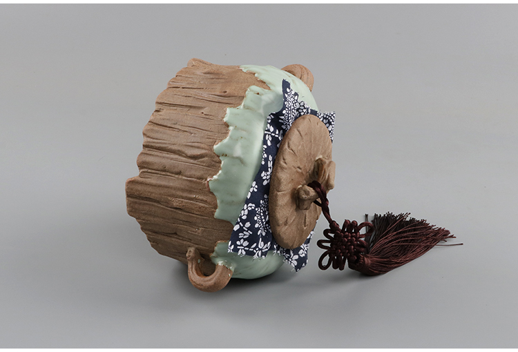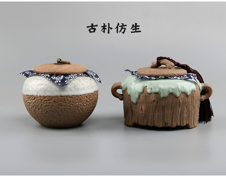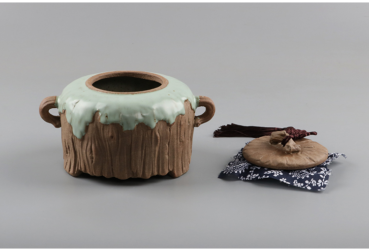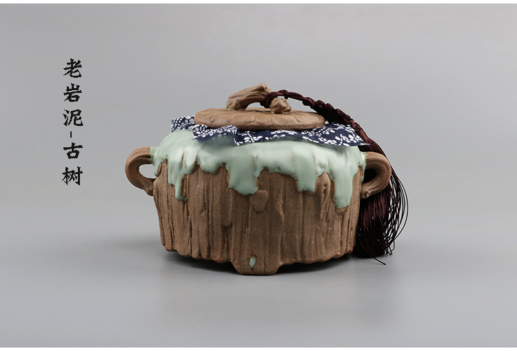 老巖泥樹樁粗陶瓷茶葉罐 仿古密封罐子 茶葉容器復古茶器擺件1入