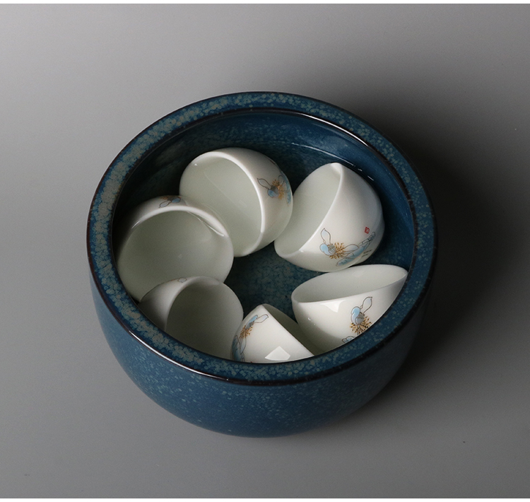 霽藍功夫茶具茶洗陶瓷大號茶渣缸水洗杯洗水盂筆洗茶盤茶道零配件1入
