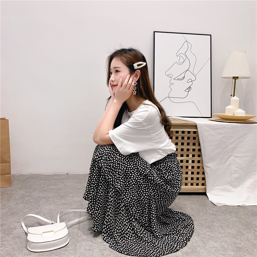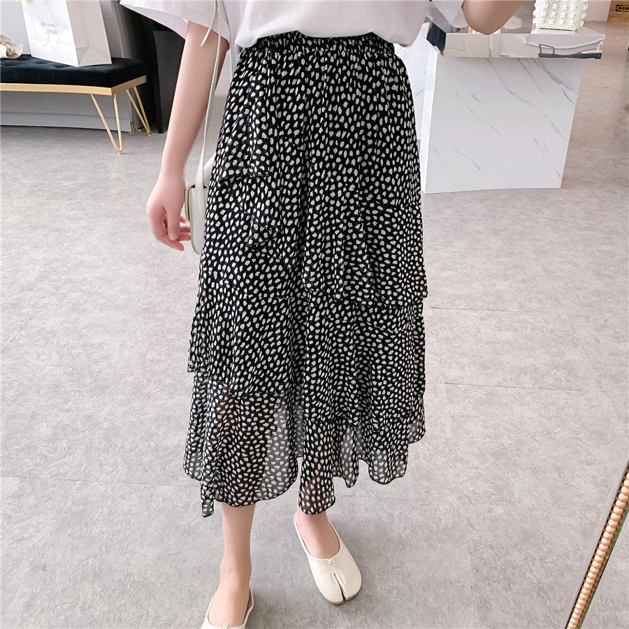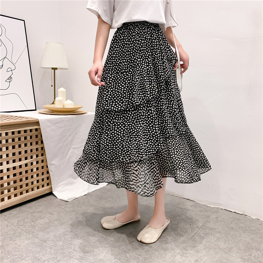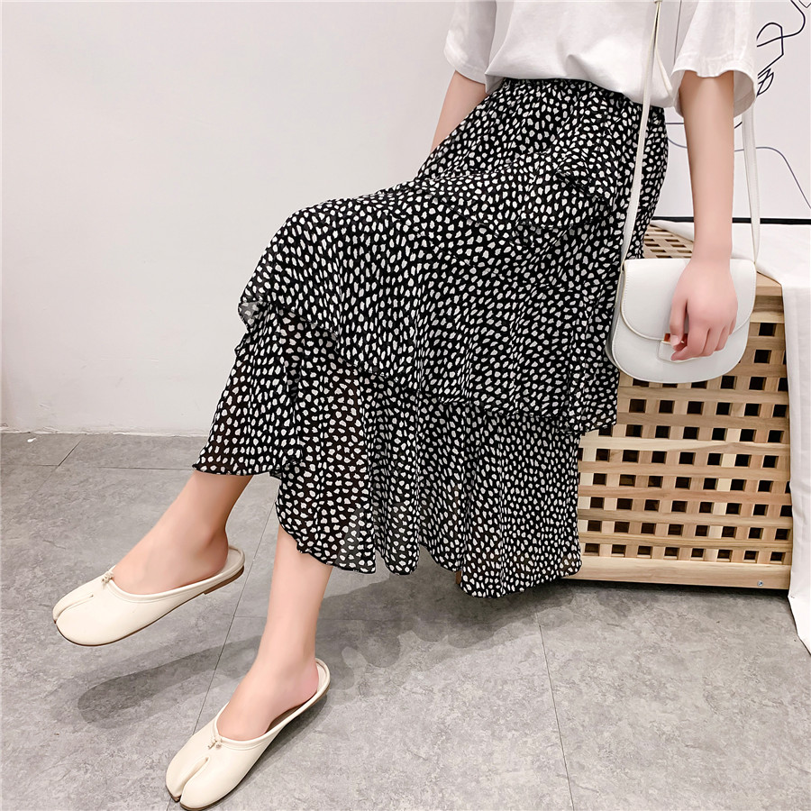 雪紡半身裙2019夏新款中長款拼接高腰荷葉邊不規則蛋糕裙很仙女裙1入