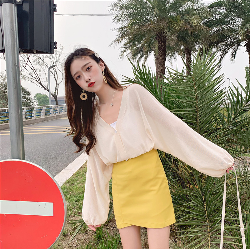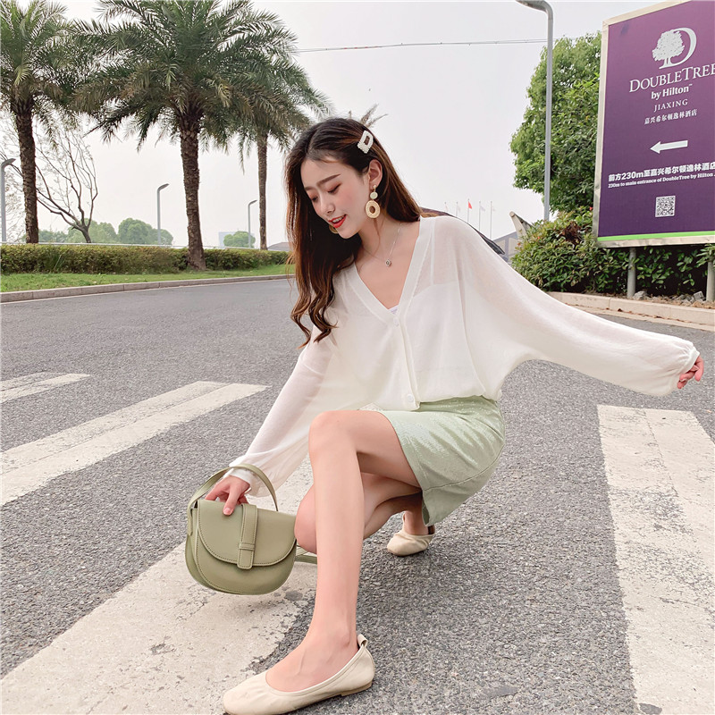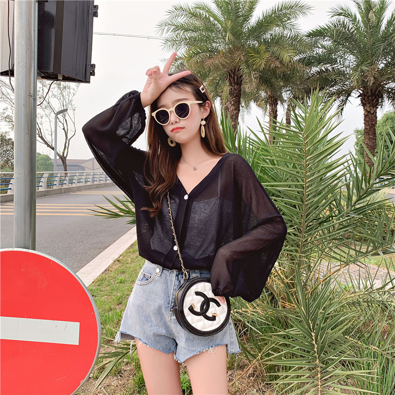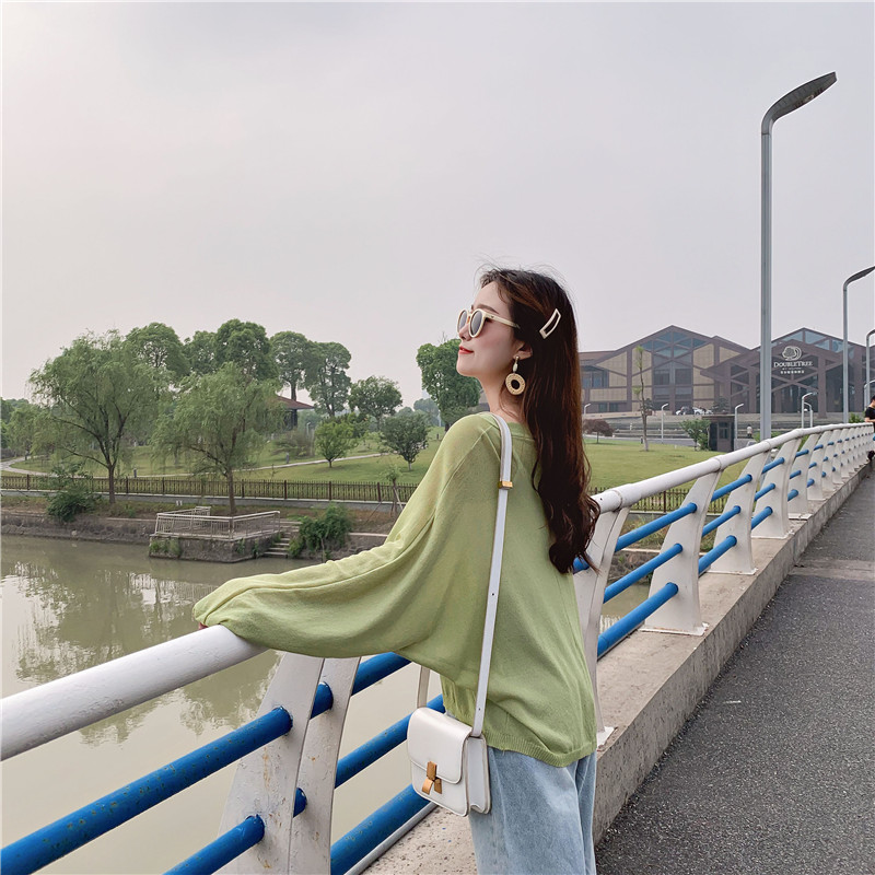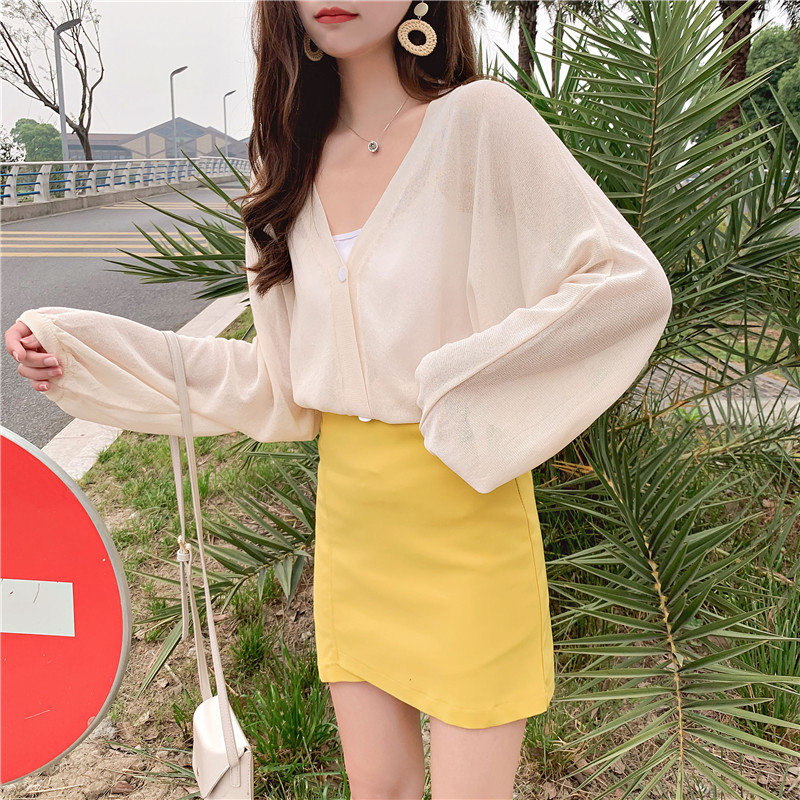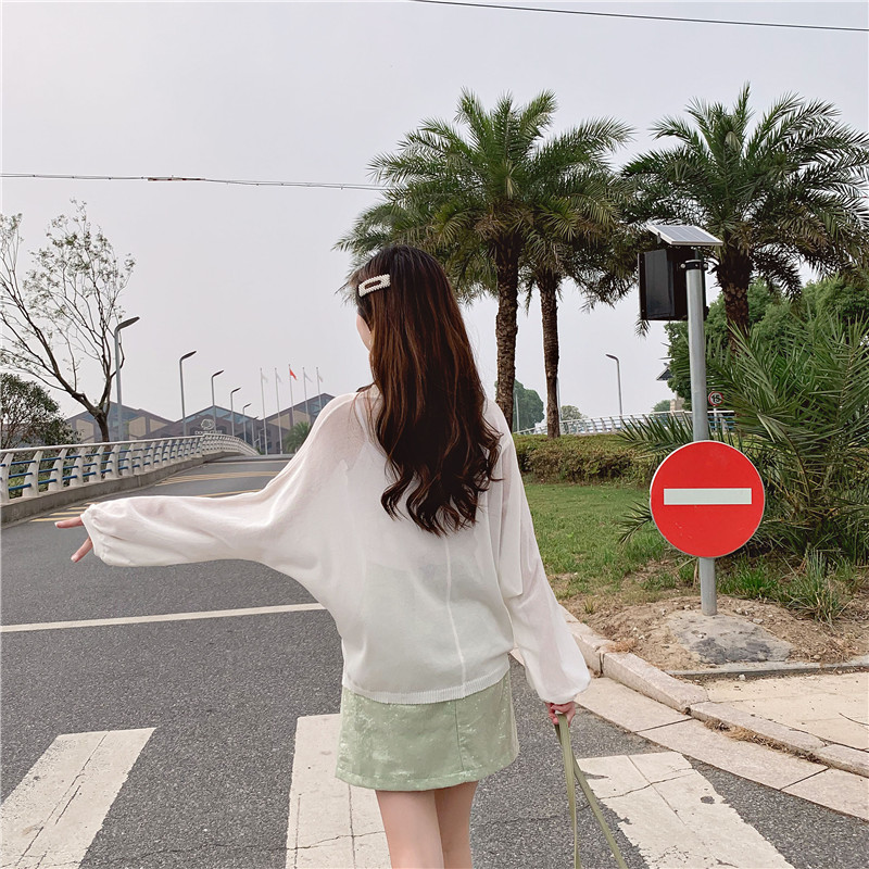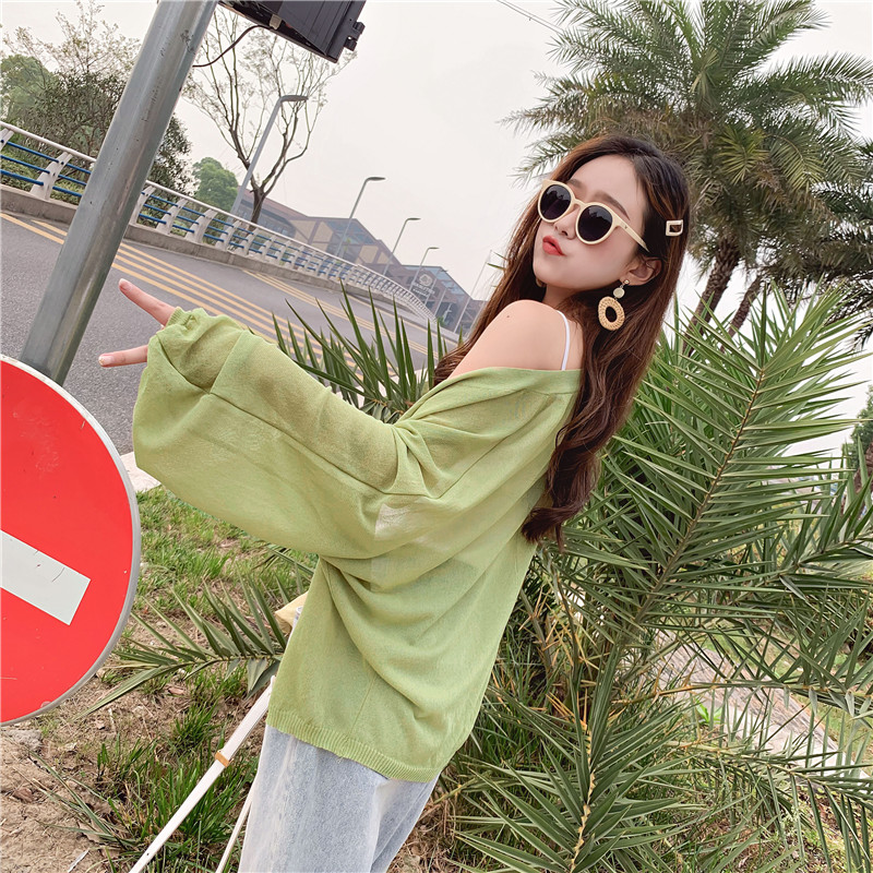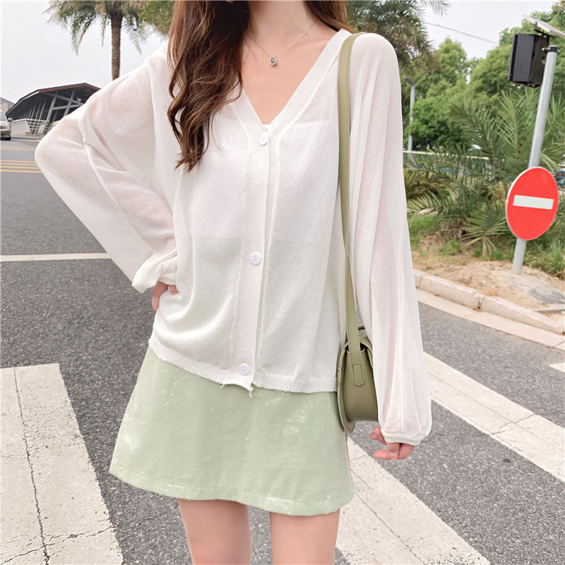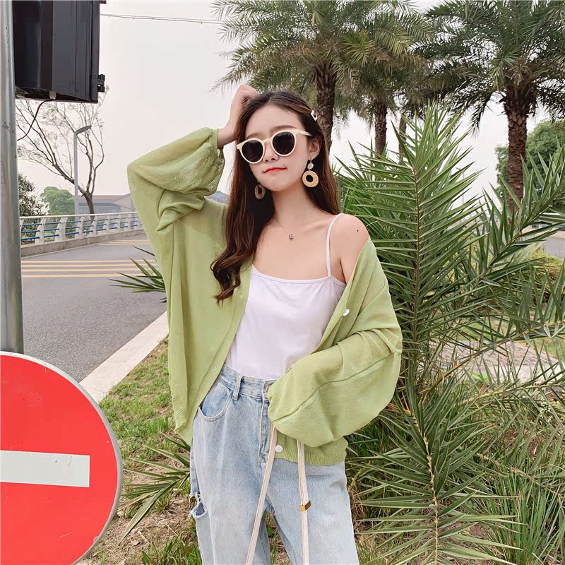 蝙蝠袖開衫2019春夏新款女裝寬松紐扣V領防曬空調衫外搭薄款上衣1入