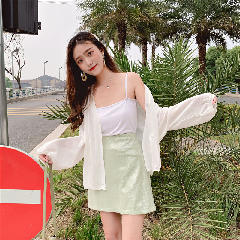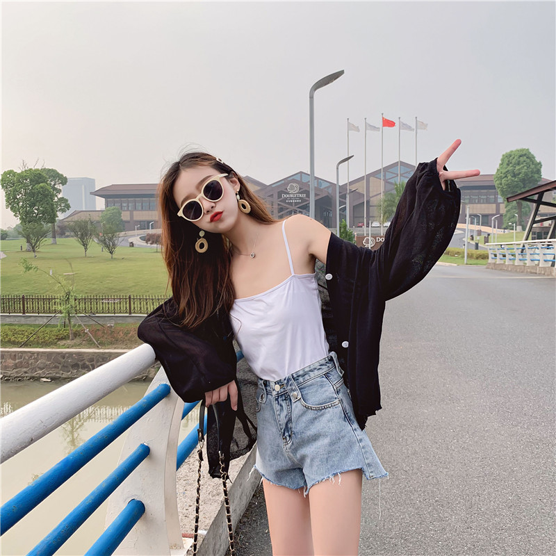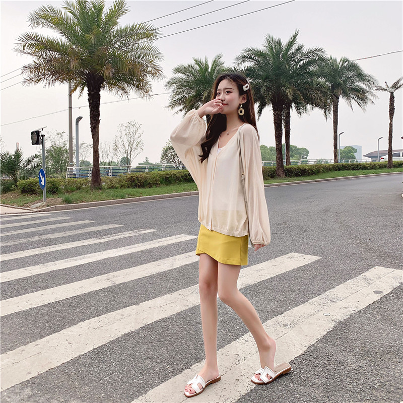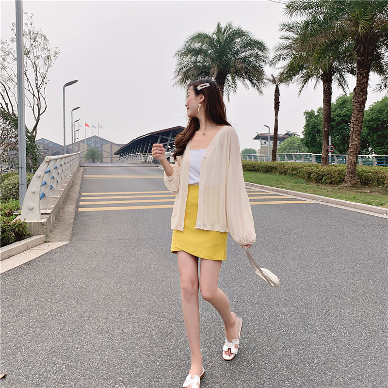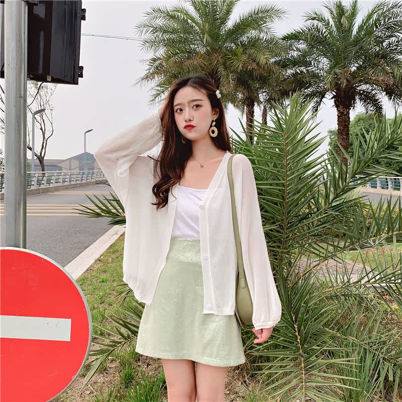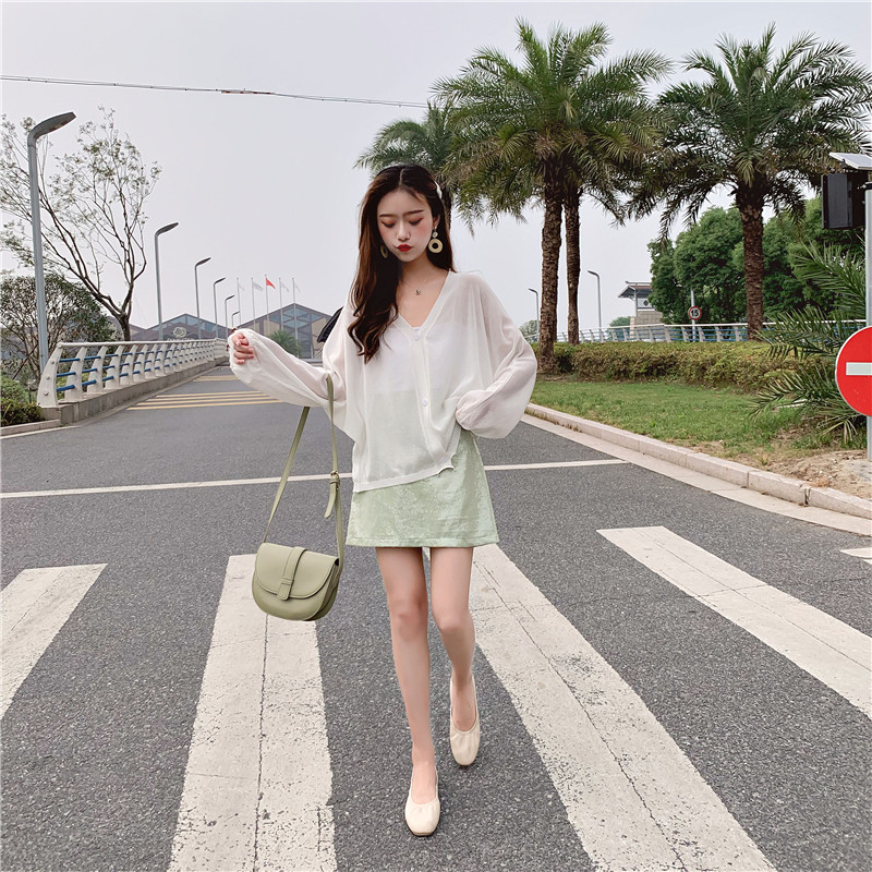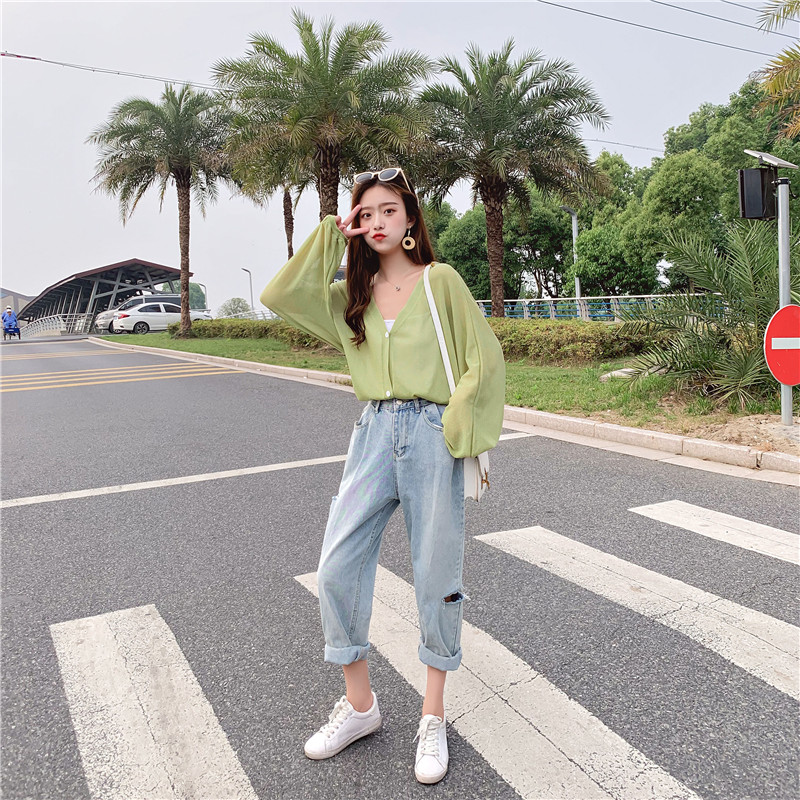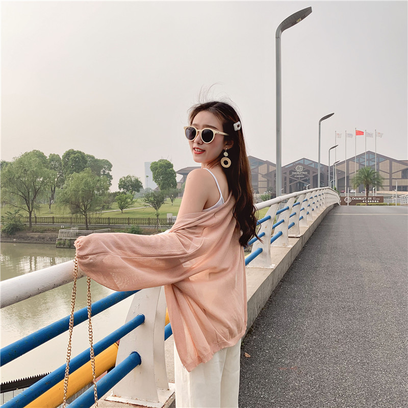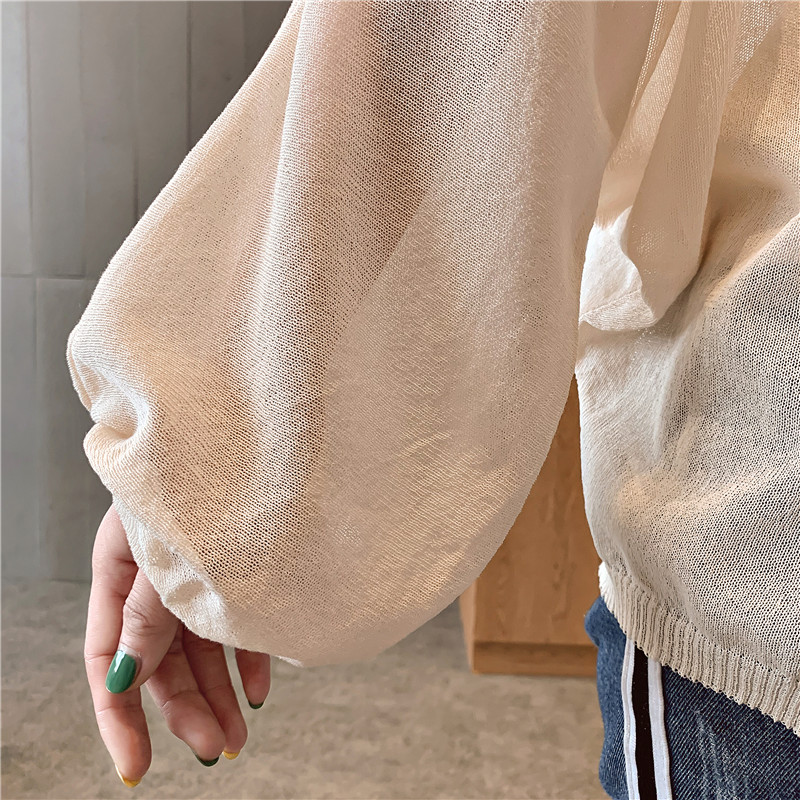 蝙蝠袖開衫2019春夏新款女裝寬松紐扣V領防曬空調衫外搭薄款上衣1入