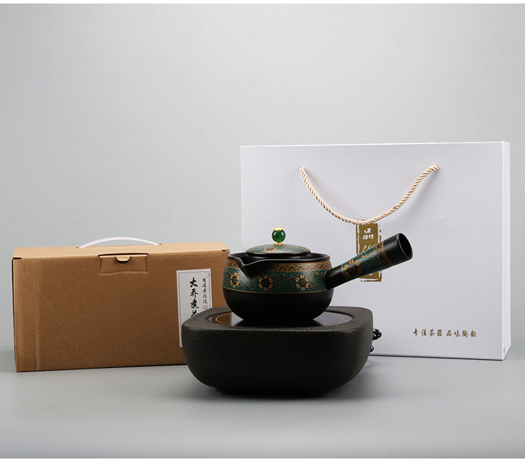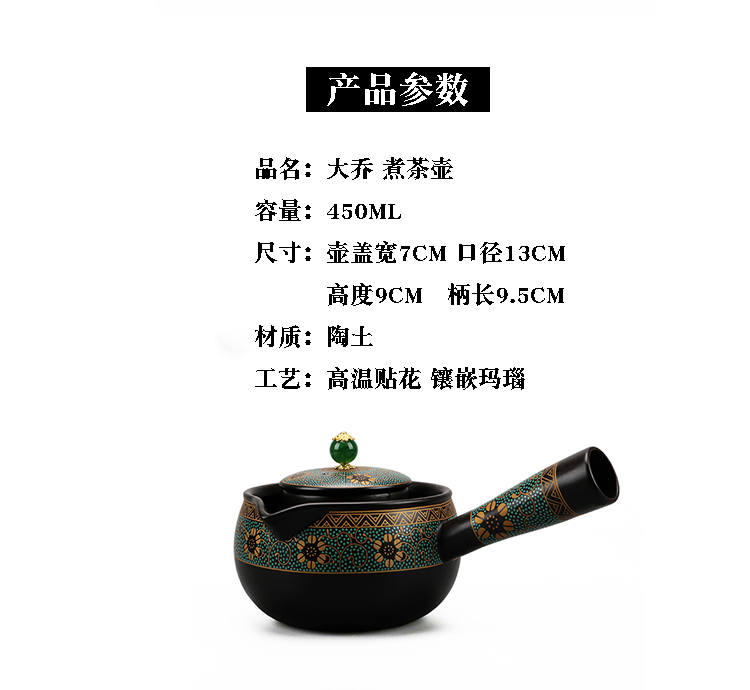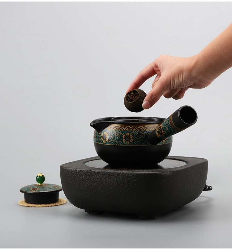 陶瓷煮茶器小青柑專用煮茶壺側把壺黑茶煮茶爐帶內膽可加熱泡茶壺1入