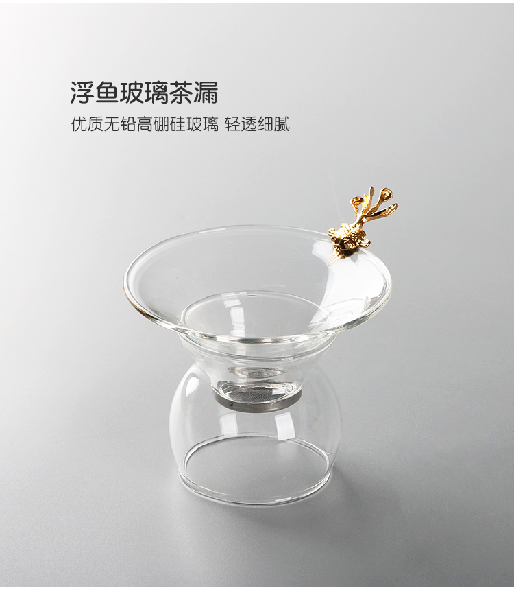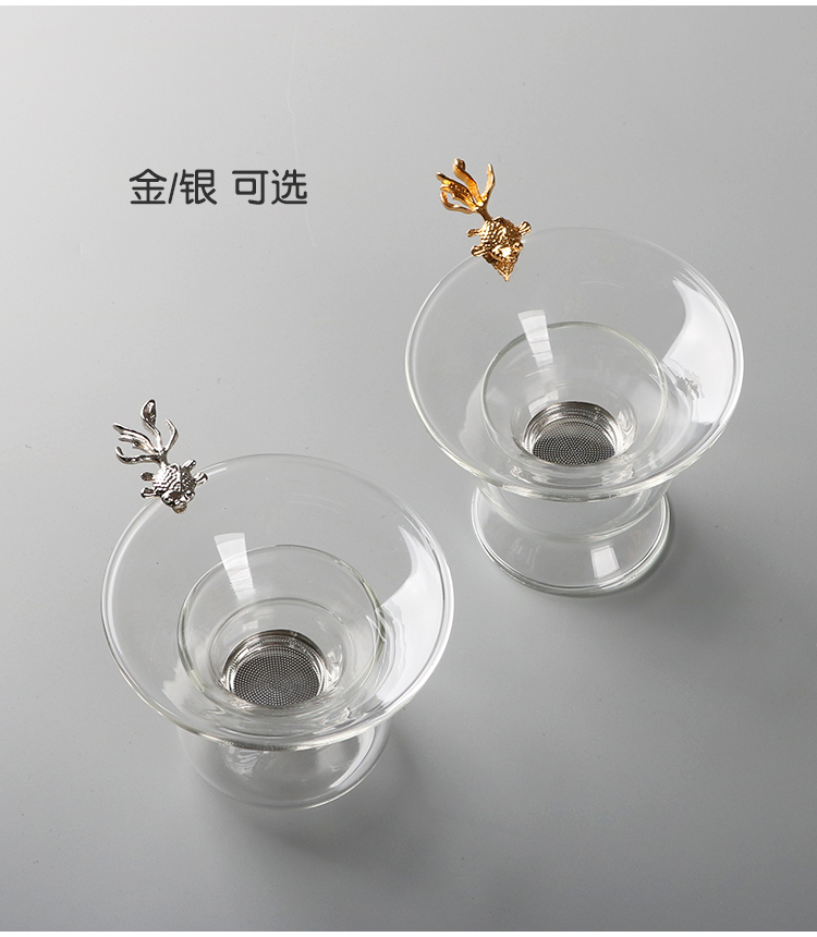 金魚玻璃茶漏茶濾 創意茶葉過濾器透明茶濾網漏斗架功夫茶具配件1入