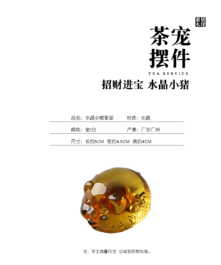 創意水晶茶寵擺件精品生肖小豬茶盤茶臺茶玩功夫茶具茶道配件1入