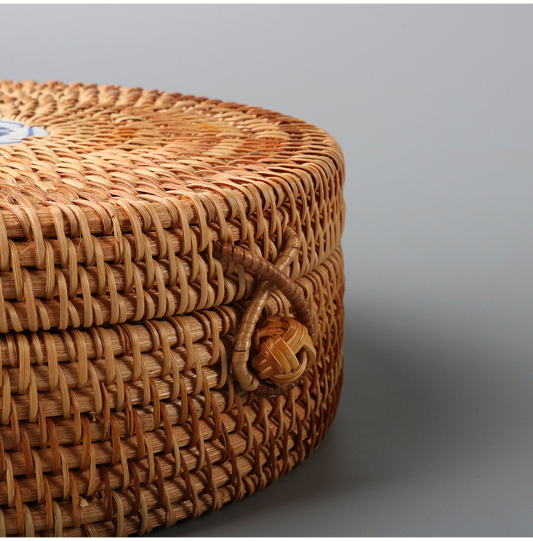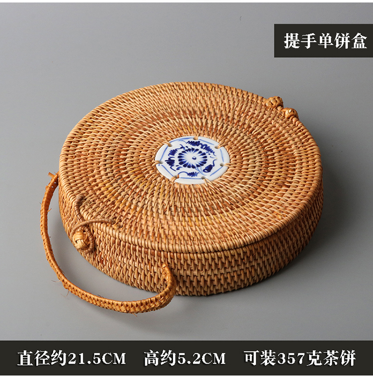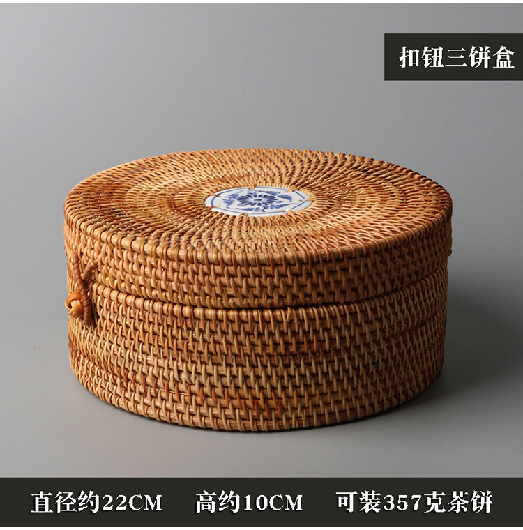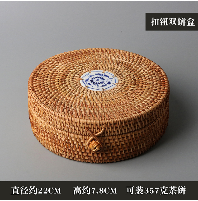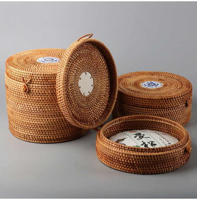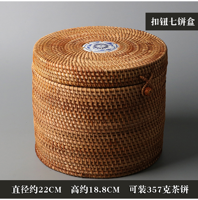 越南秋藤編收納七子餅茶葉罐沱茶散茶普洱茶盒包裝盒禮品存茶罐桶1入