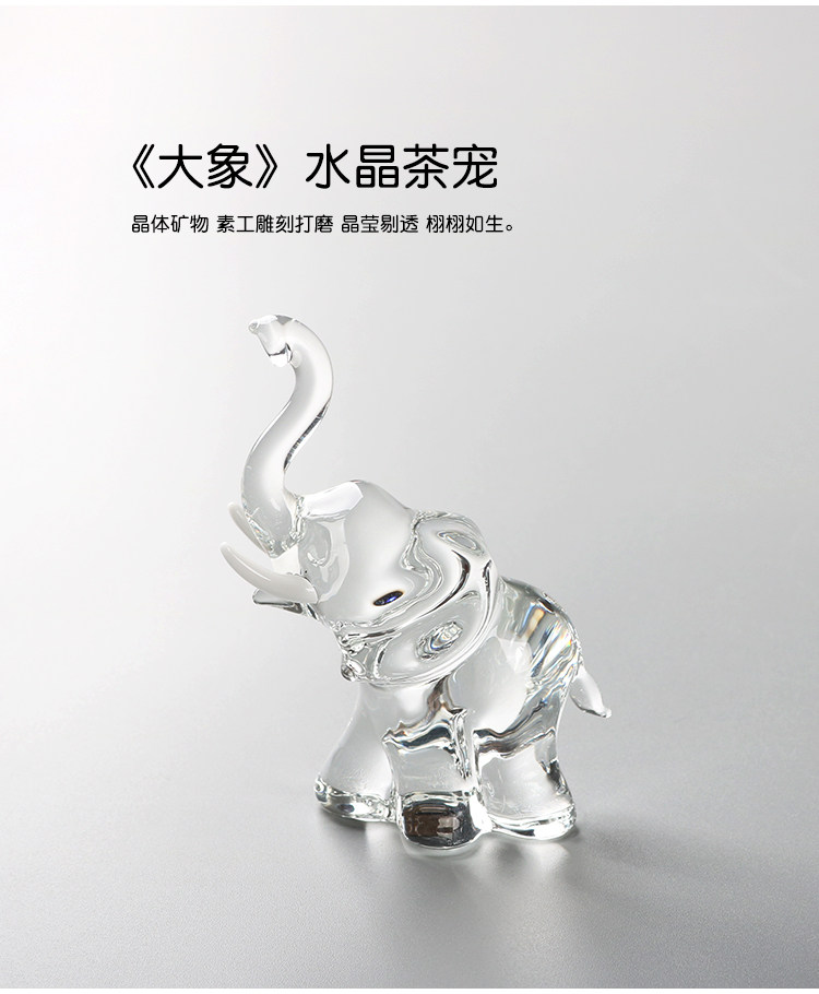 水晶大象茶寵 創意茶桌茶臺小擺件精品茶玩功夫茶具配件擺設禮品1入