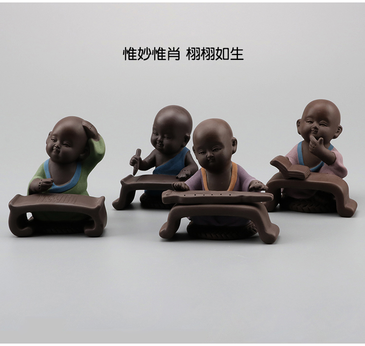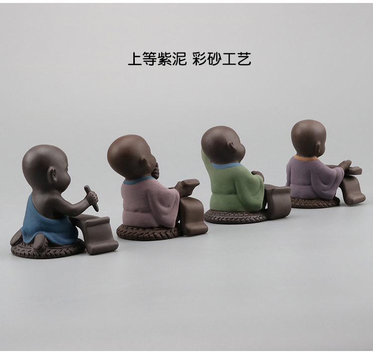 創意彩砂琴棋書畫迷你小和尚 紫砂精品擺件茶寵 茶盤茶玩茶道零配1入