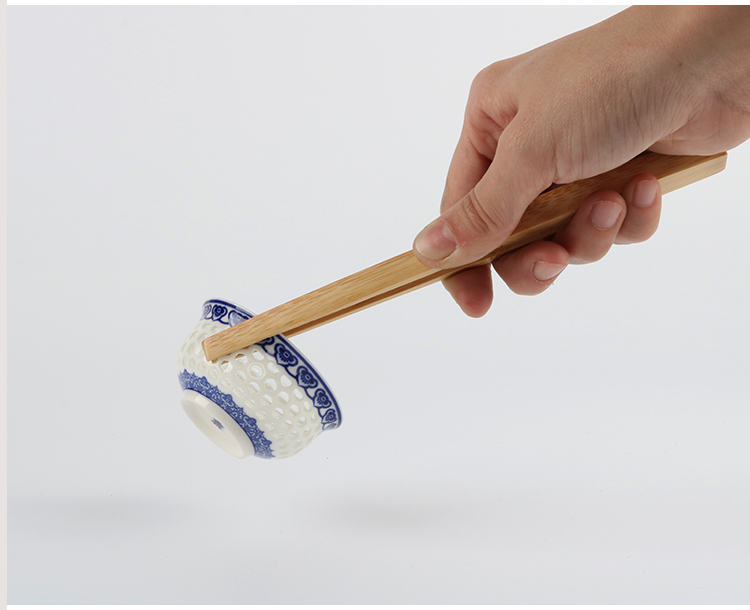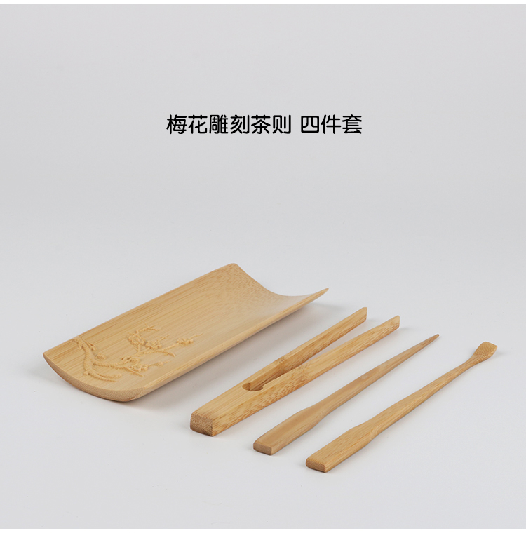 賞茶荷竹節四件套 精雕梅花原竹制 茶則茶夾茶針茶勺 茶道零配件1入