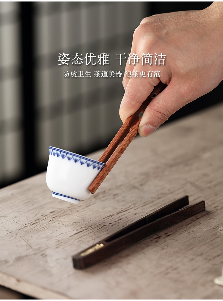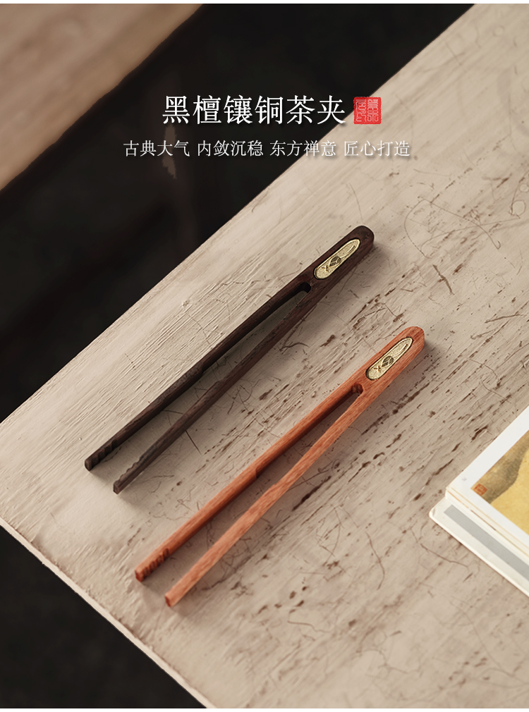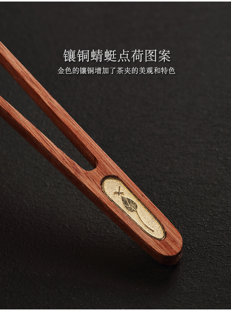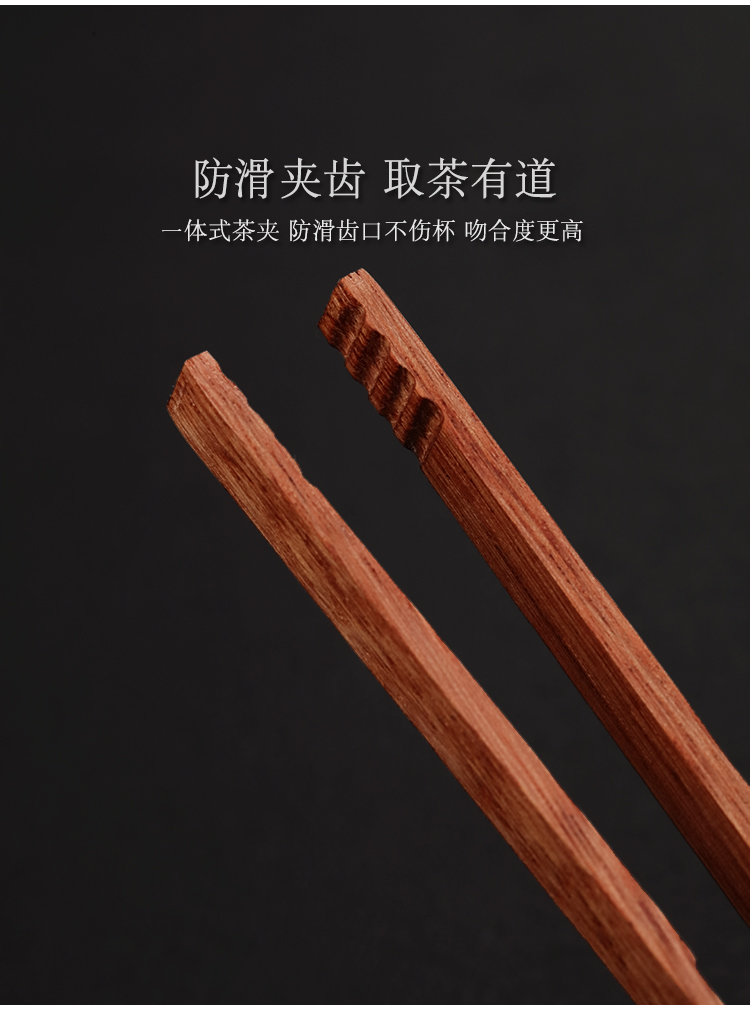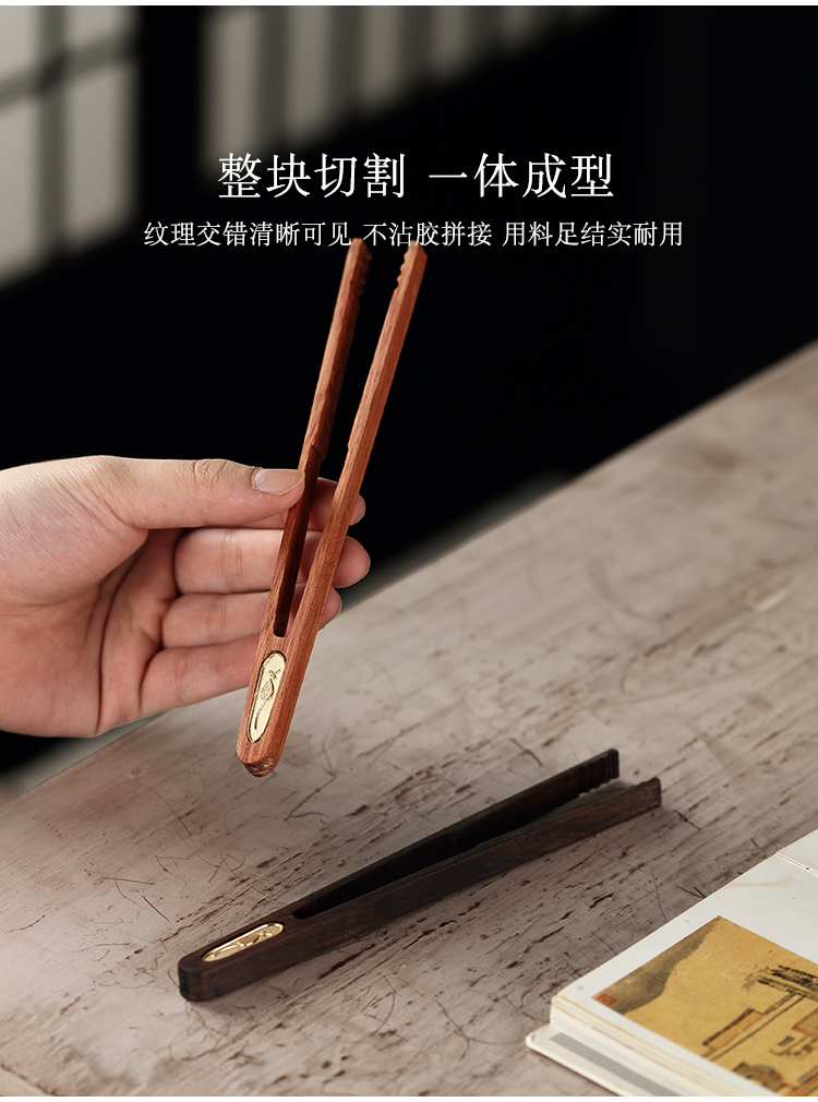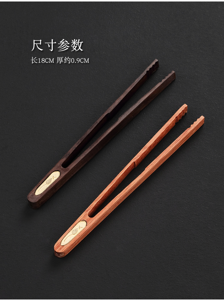 黑檀木花梨木茶夾茶葉鑷子茶具配件零配茶道六君子單個茶杯夾子1入