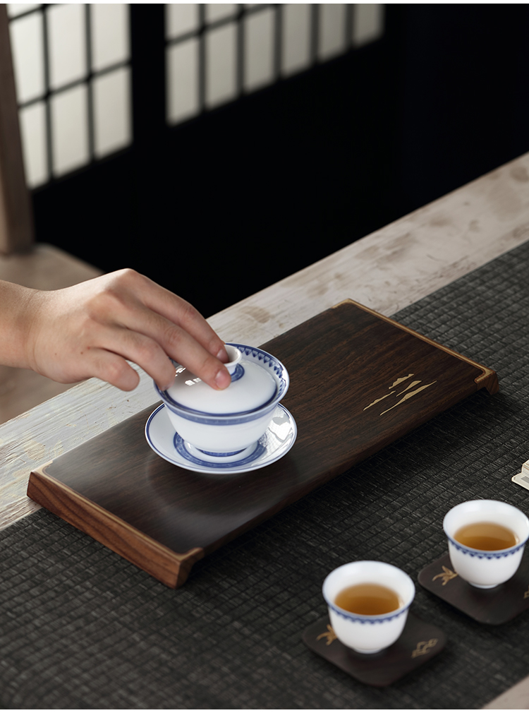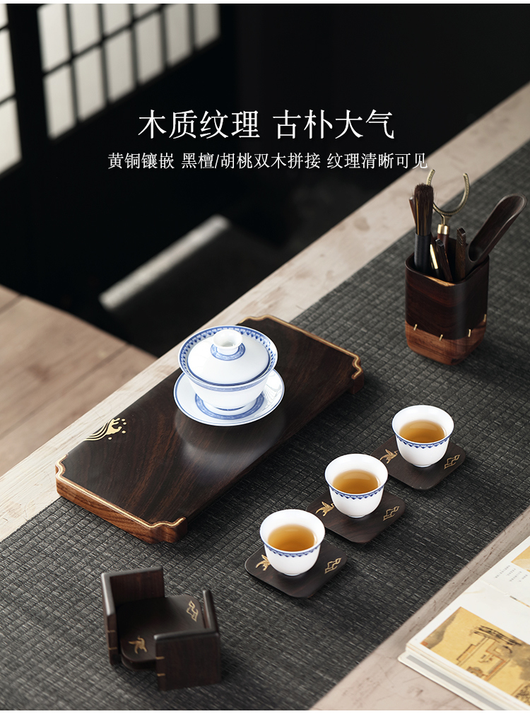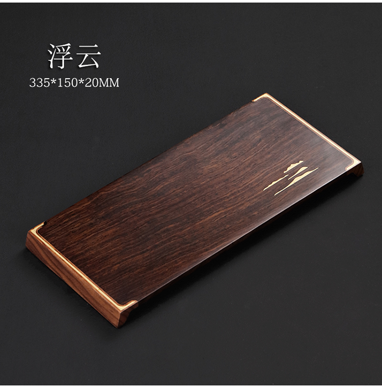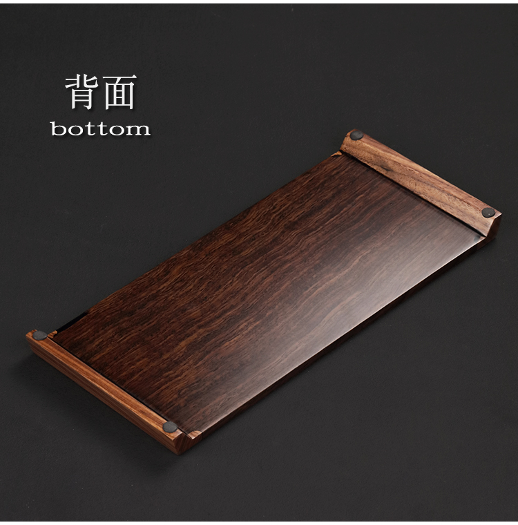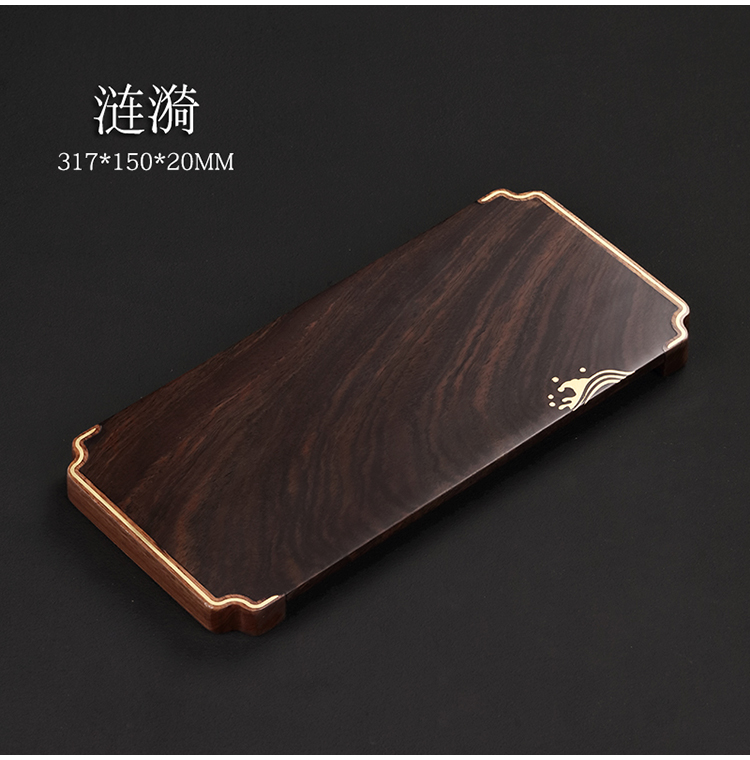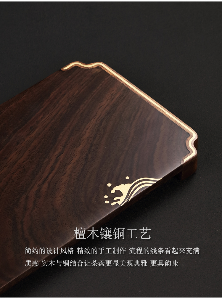 黑檀木鑲銅茶盤干泡盤小茶臺工夫茶具家用壺承茶托實木托盤配件1入