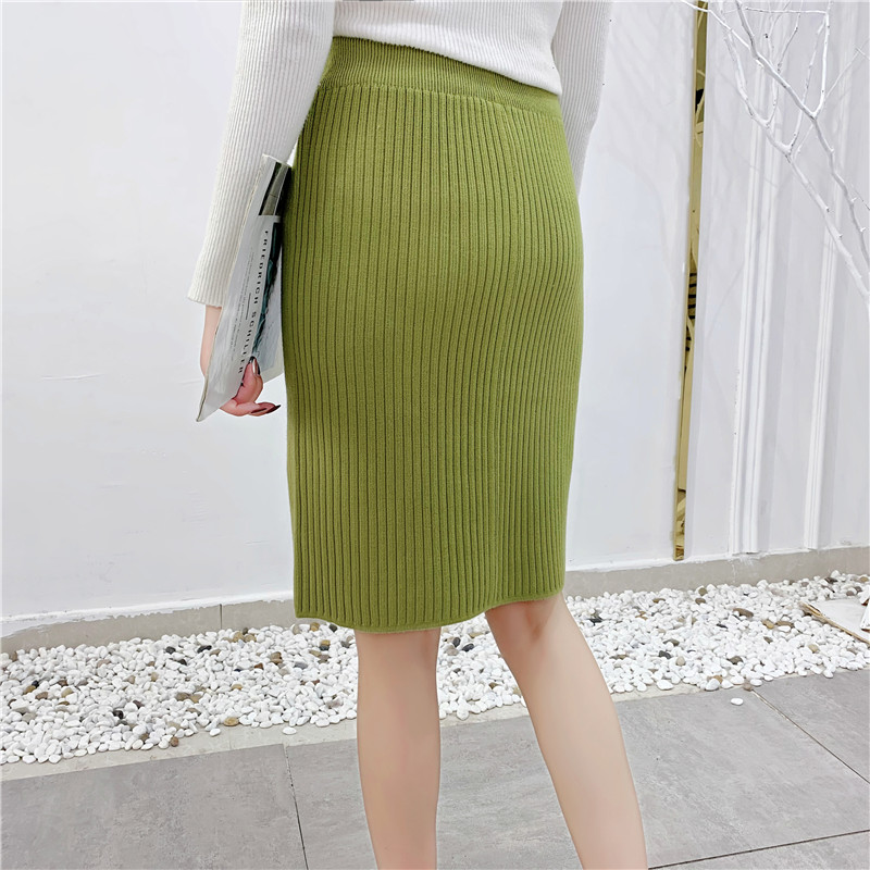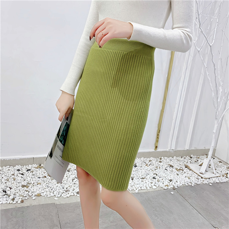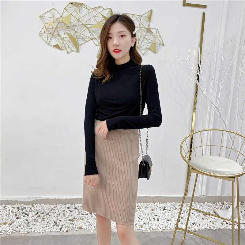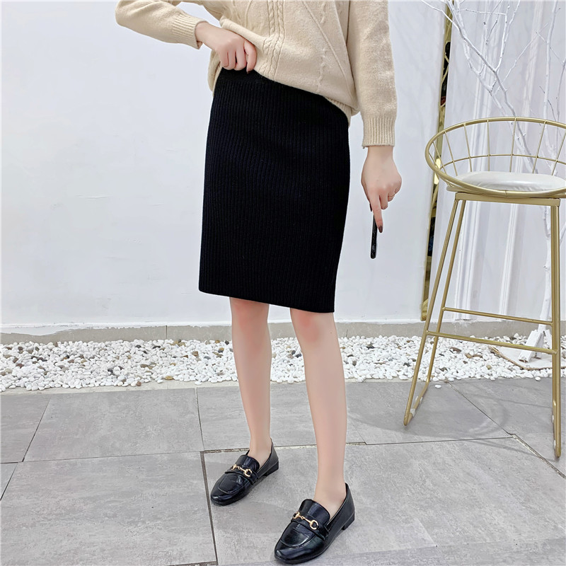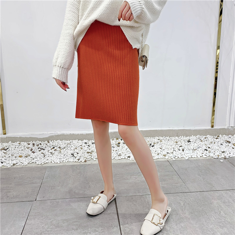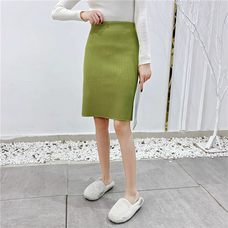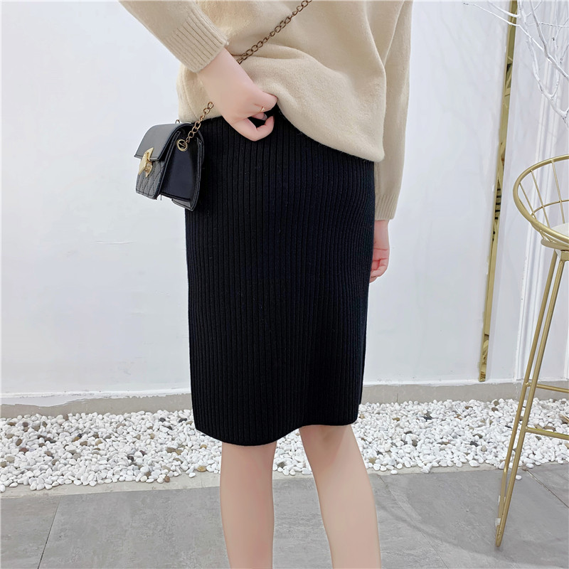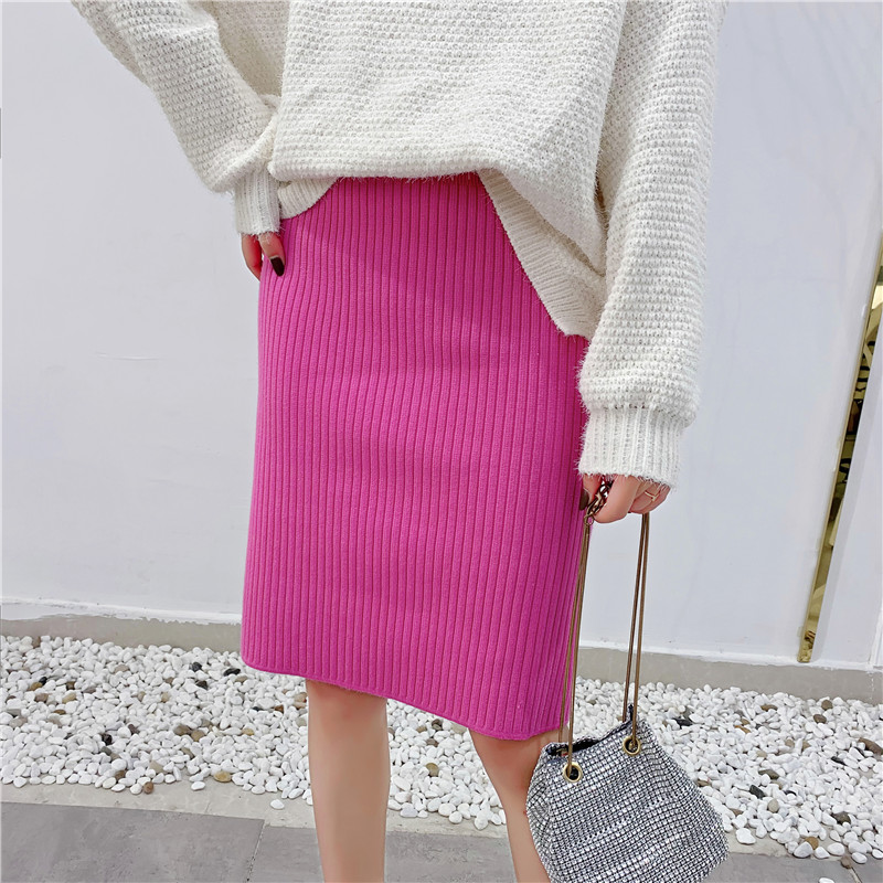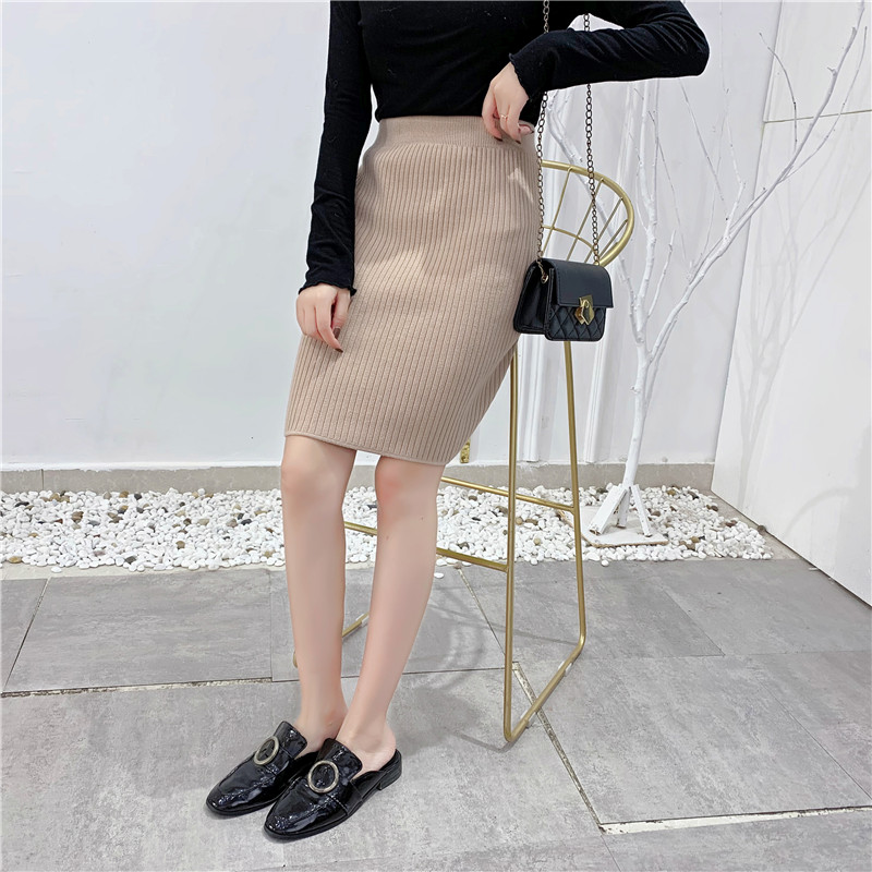 針織半身裙秋冬2019新款女包臀一步裙豎條紋時尚顯瘦松緊高腰短裙1入