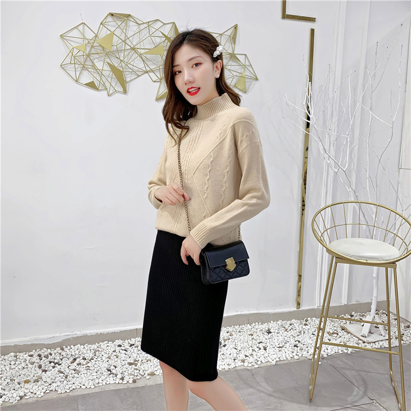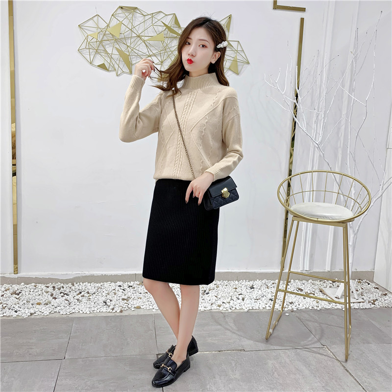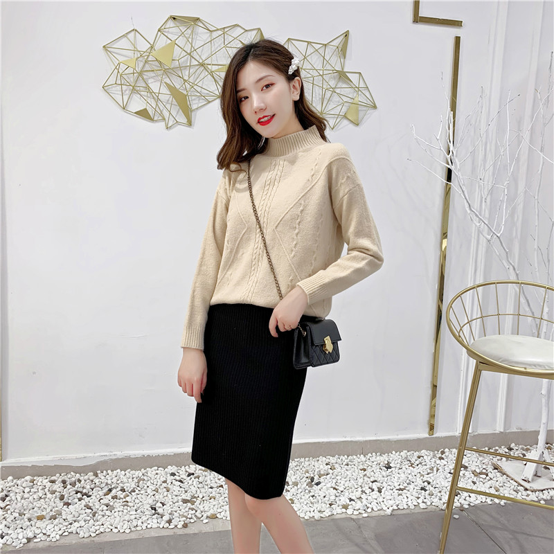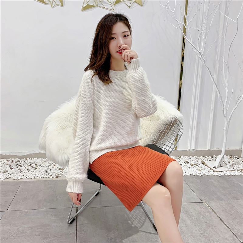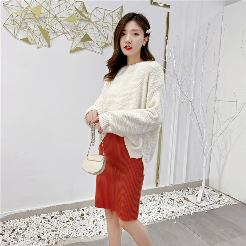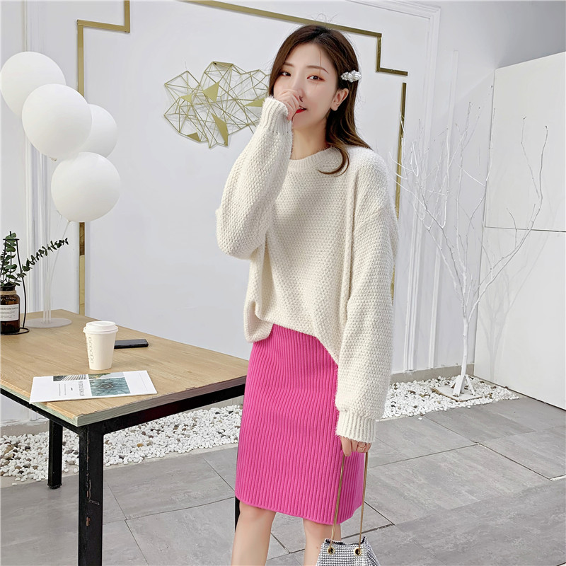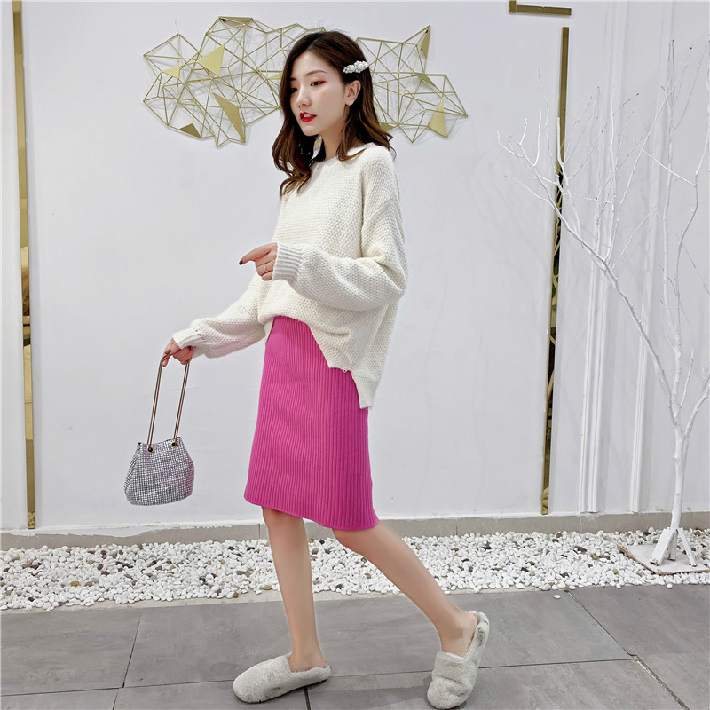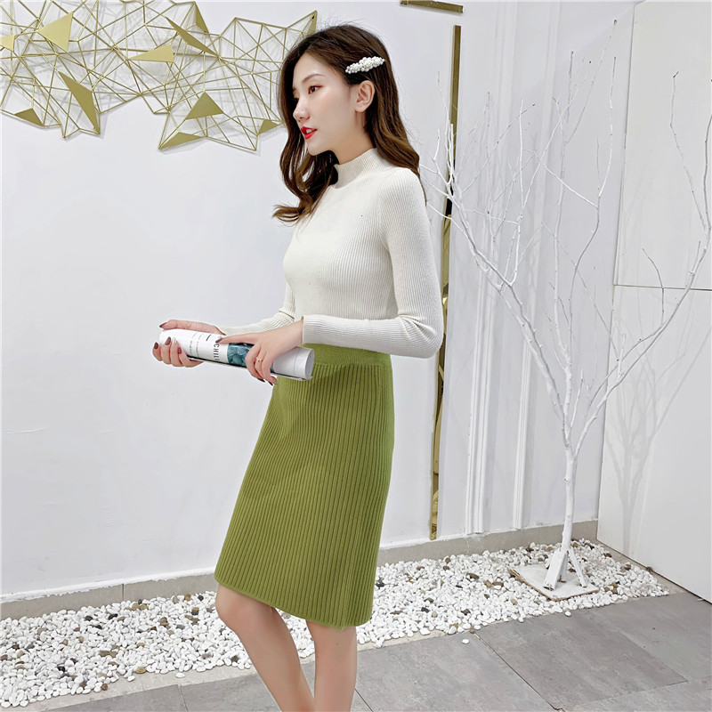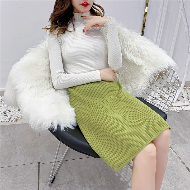 針織半身裙秋冬2019新款女包臀一步裙豎條紋時尚顯瘦松緊高腰短裙1入