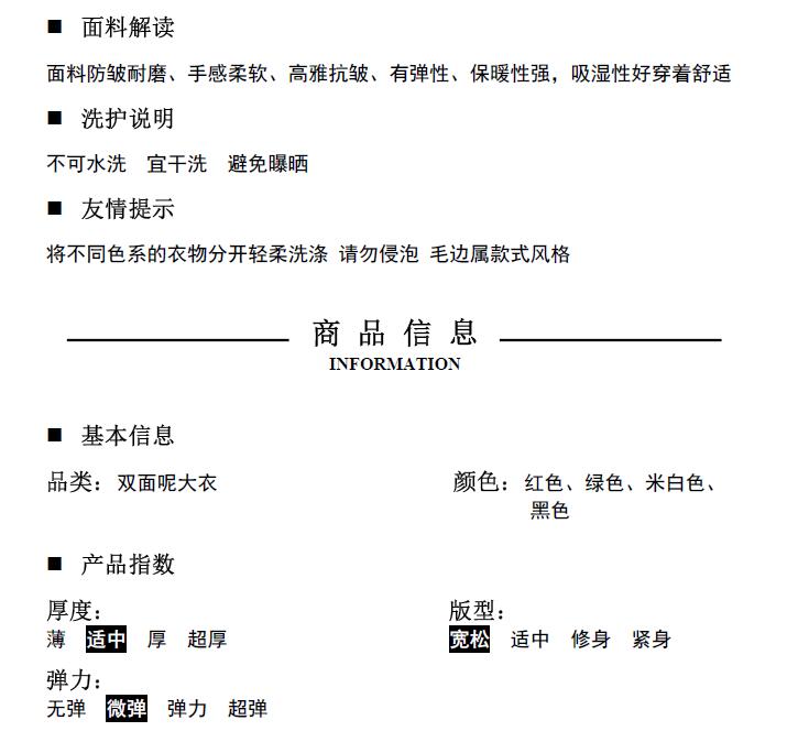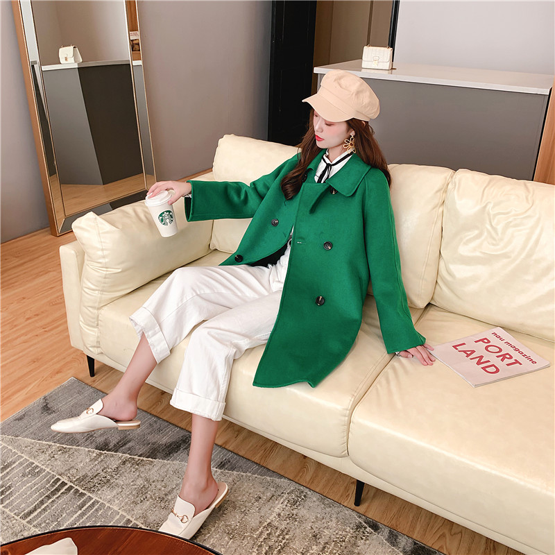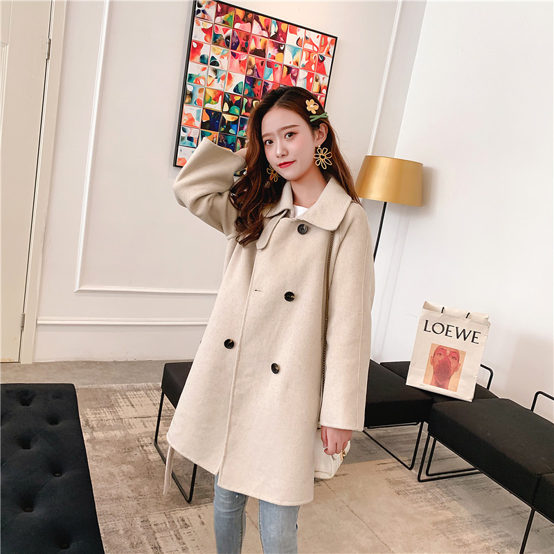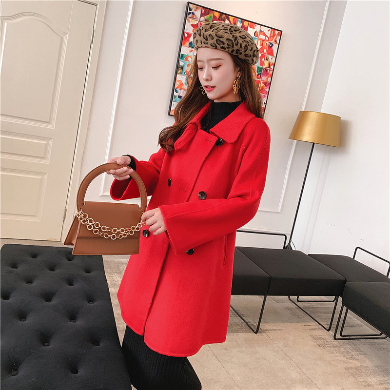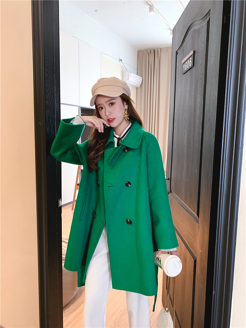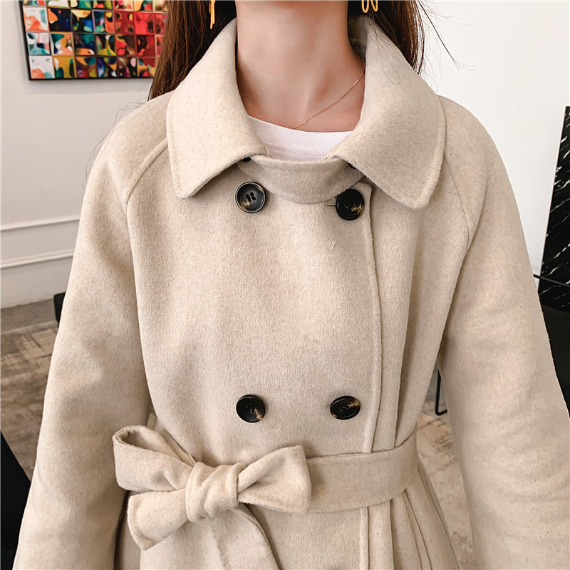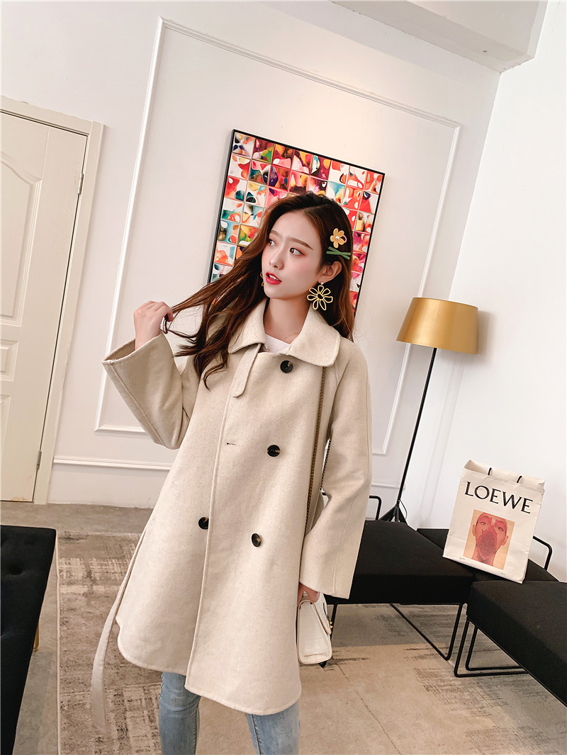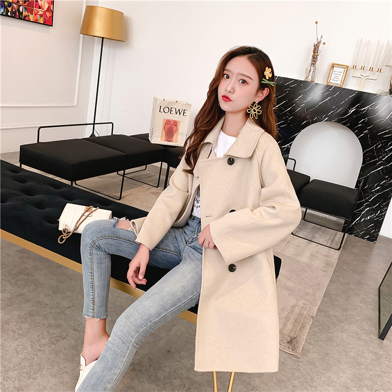2019秋冬新款女中長款雙面毛呢大衣腰帶網紅收腰上衣羊絨開衫外套1入