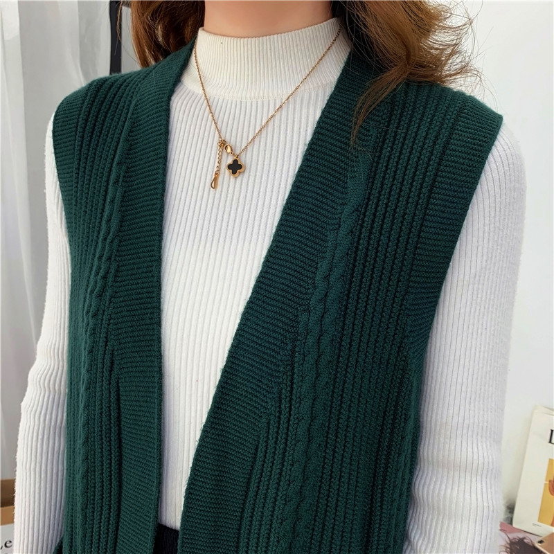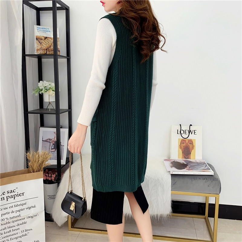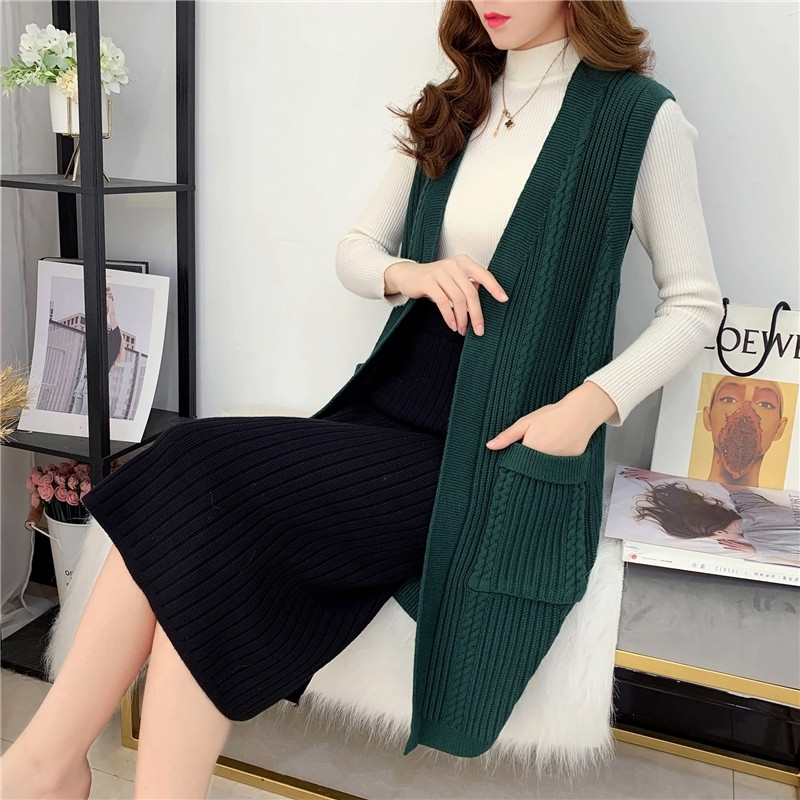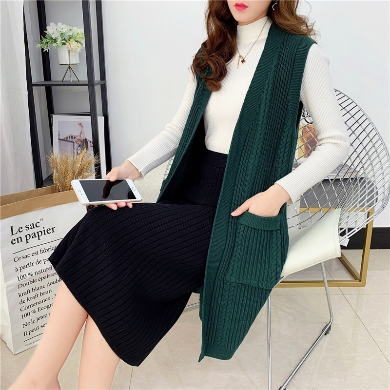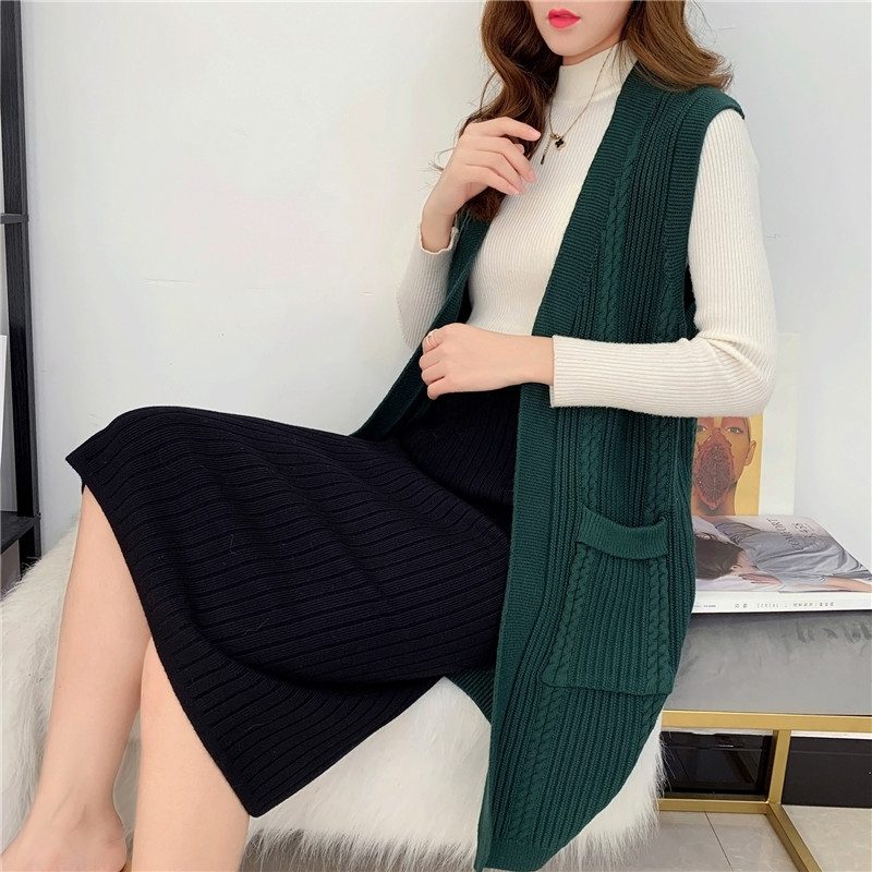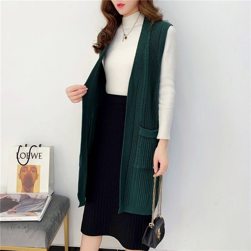 2019春秋女新款中長款無袖上衣馬甲背心外套顯瘦針織開衫毛衣披肩1入
