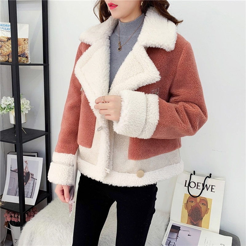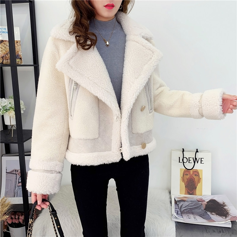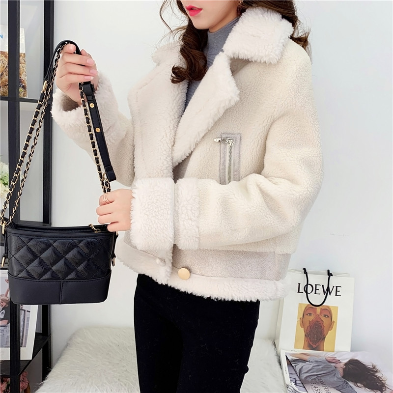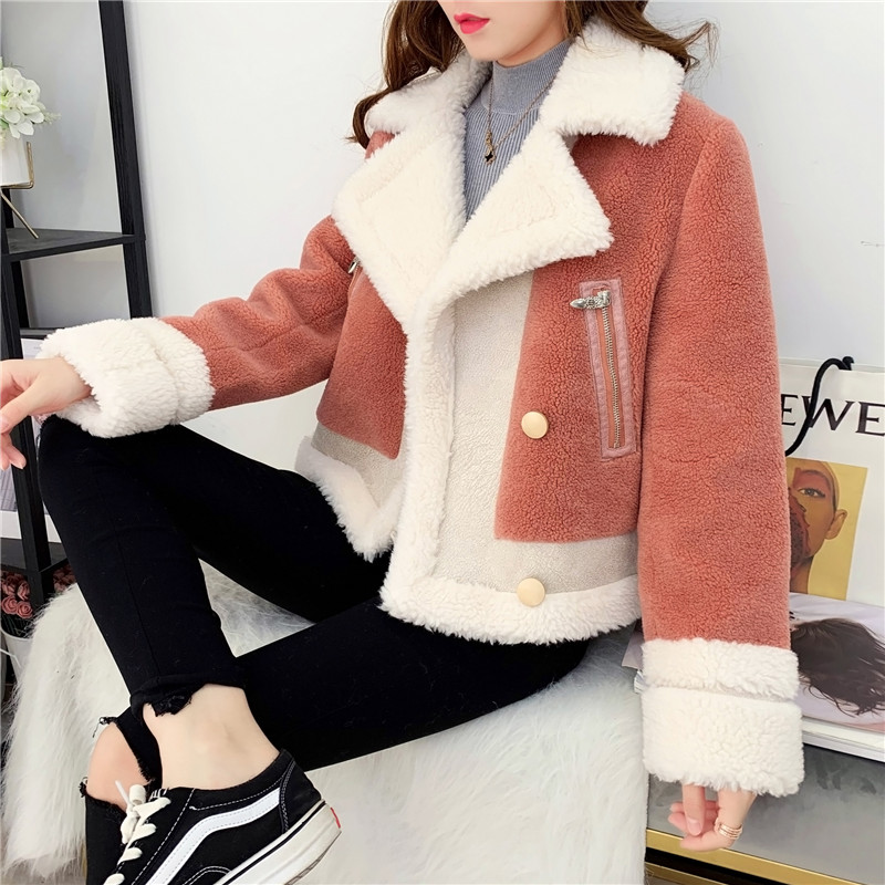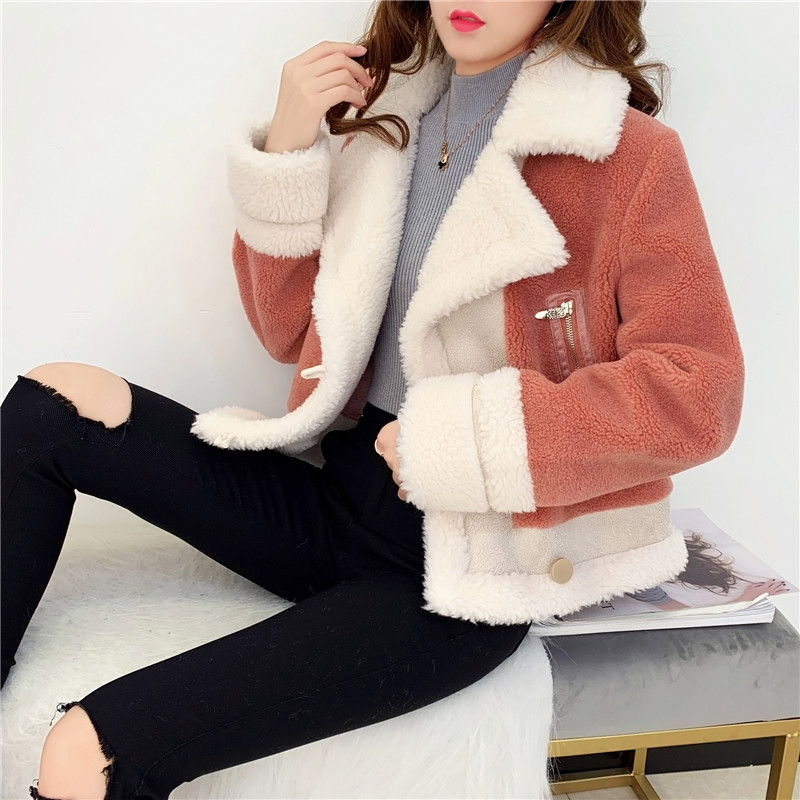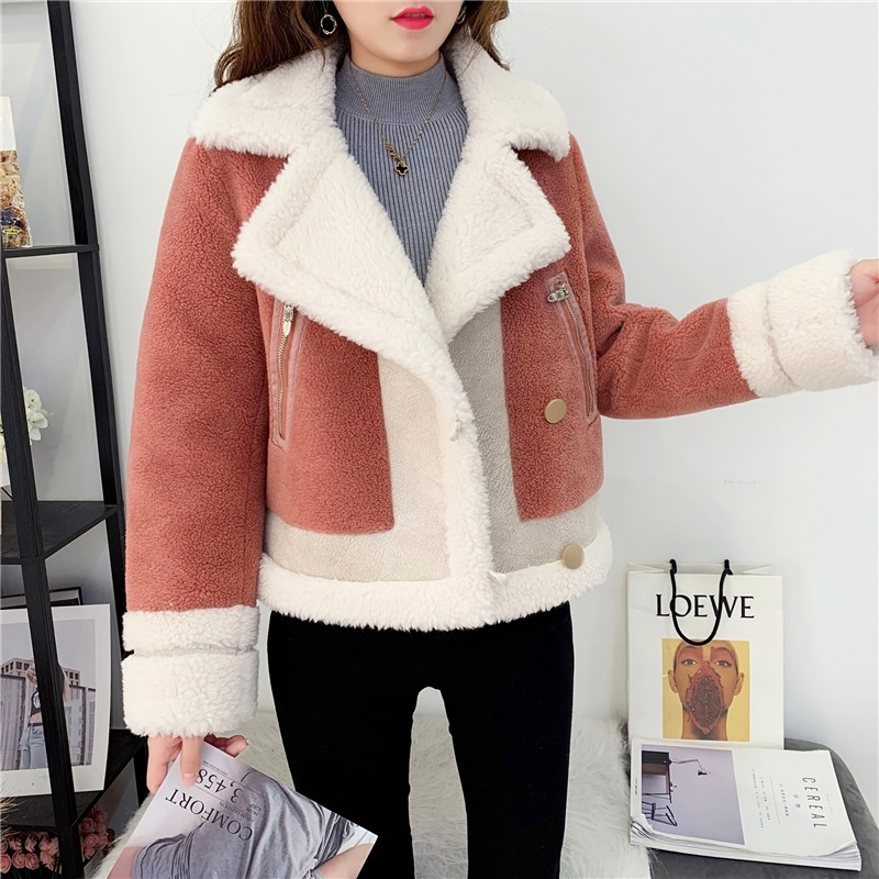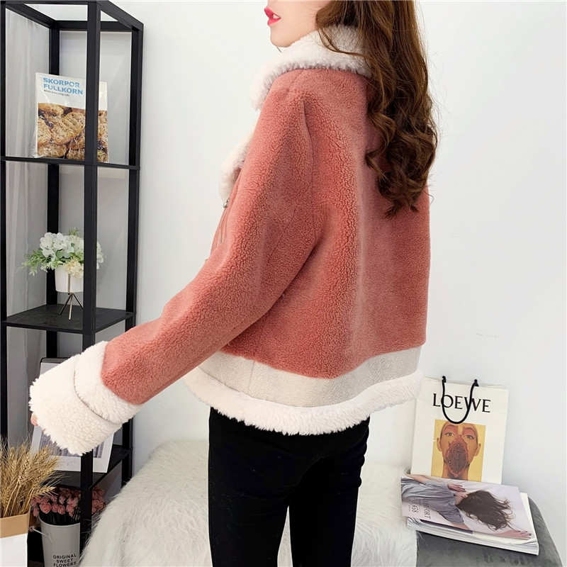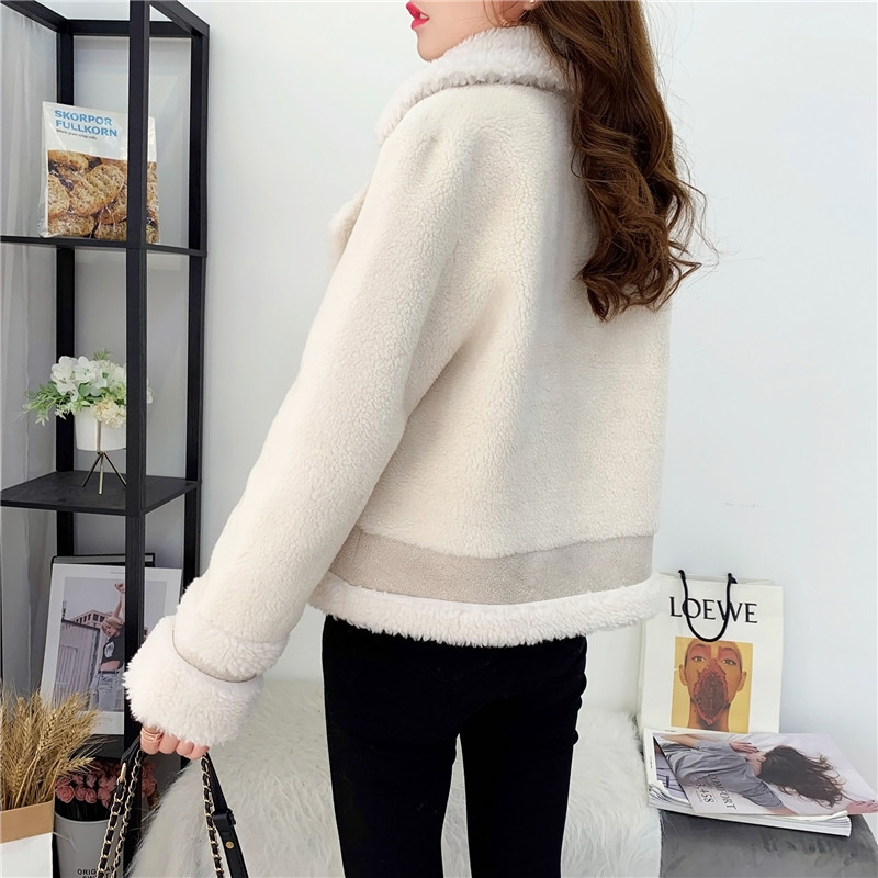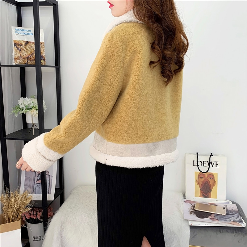 2019秋冬新款女顆粒絨羊剪絨大衣皮毛一體保暖皮草羊毛開衫短外套1入