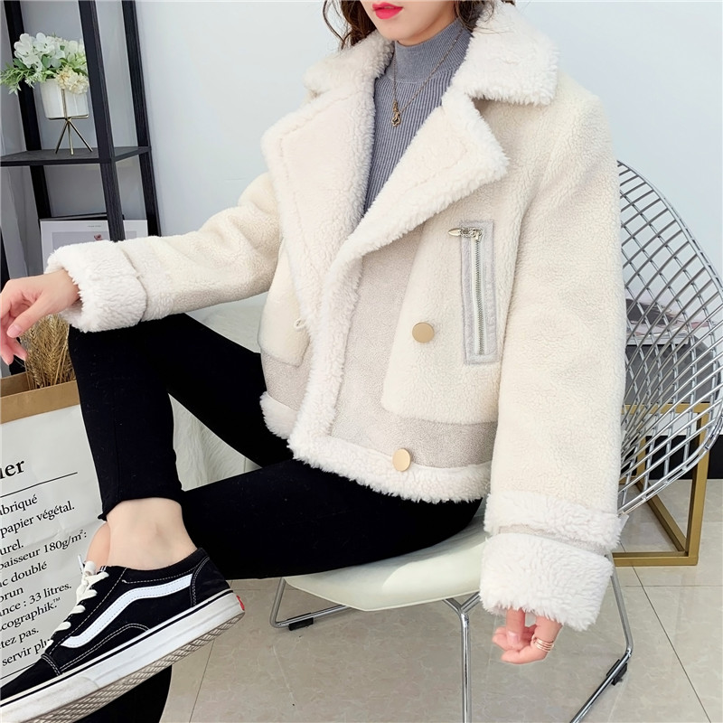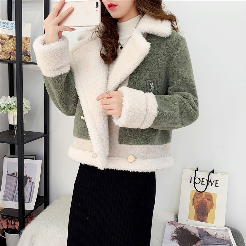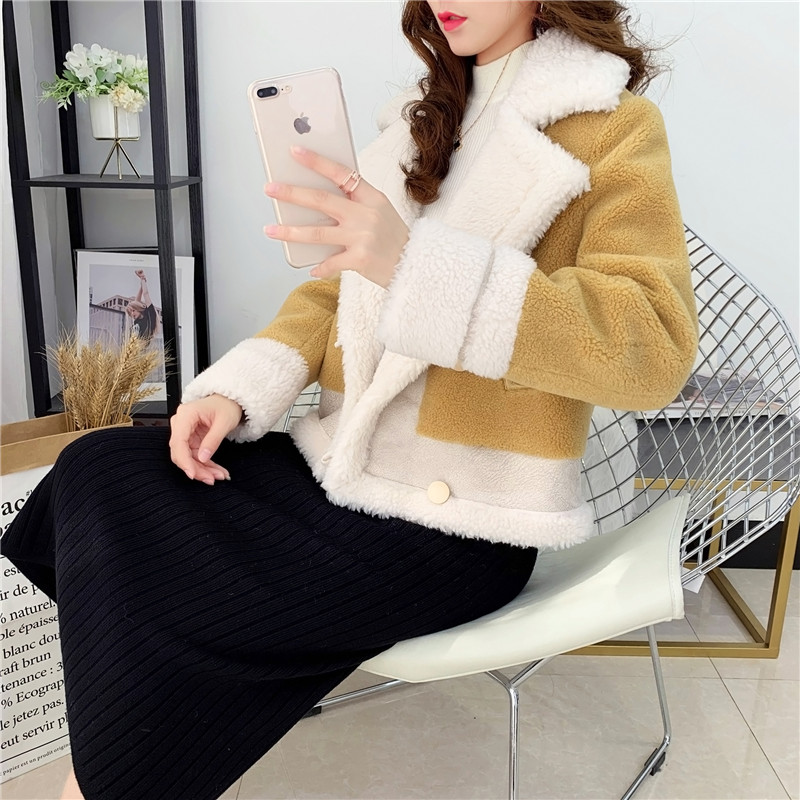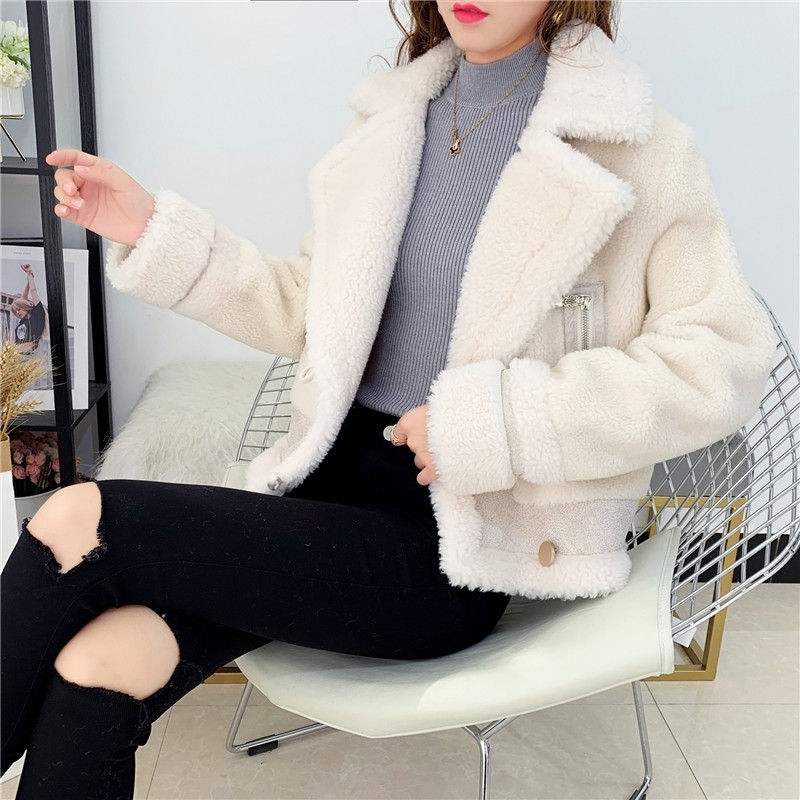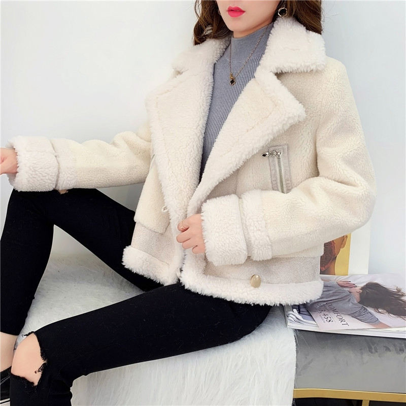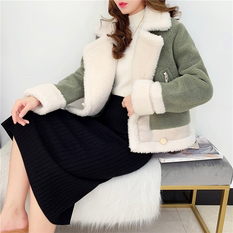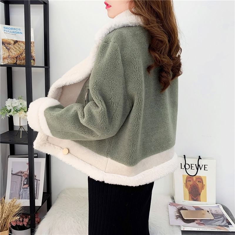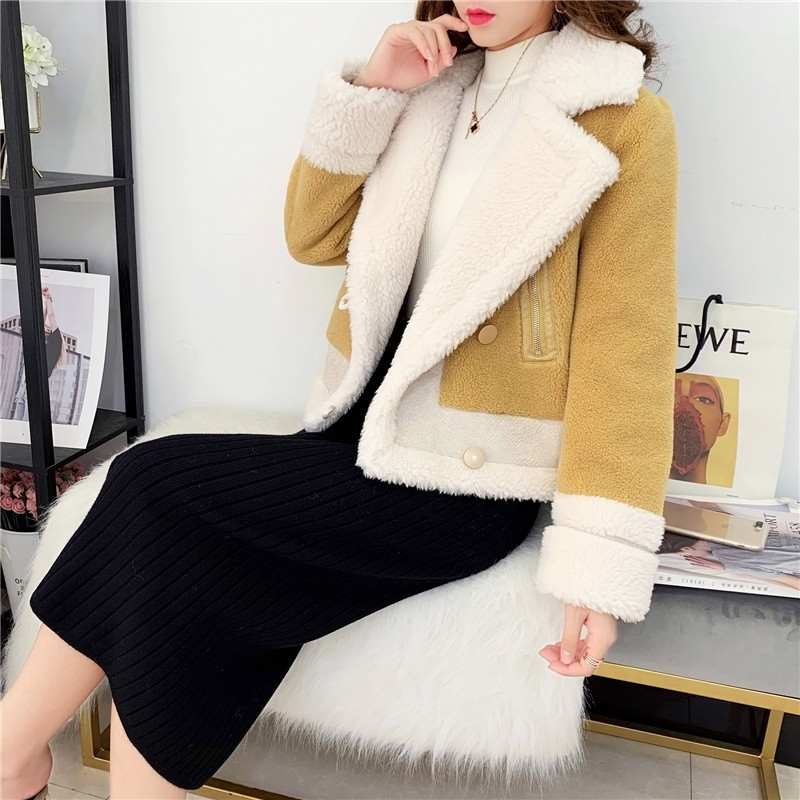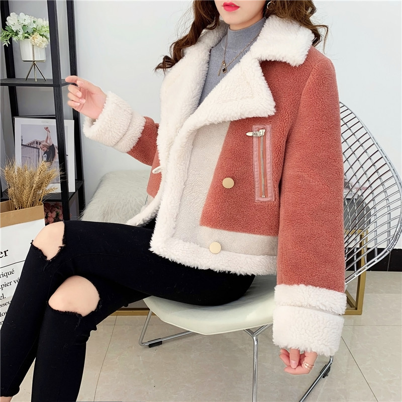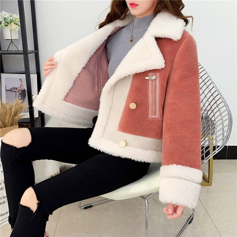 2019秋冬新款女顆粒絨羊剪絨大衣皮毛一體保暖皮草羊毛開衫短外套1入