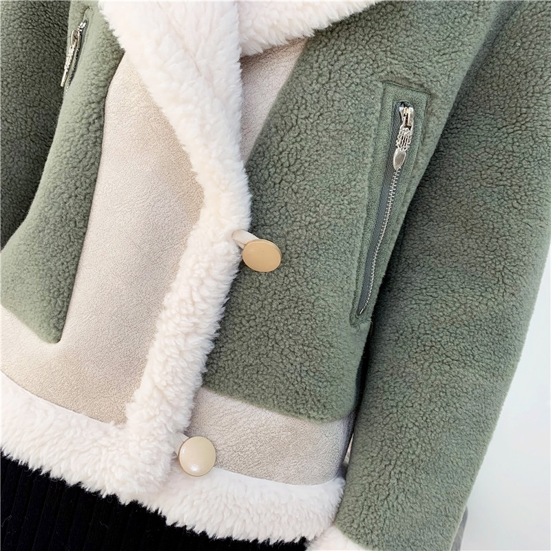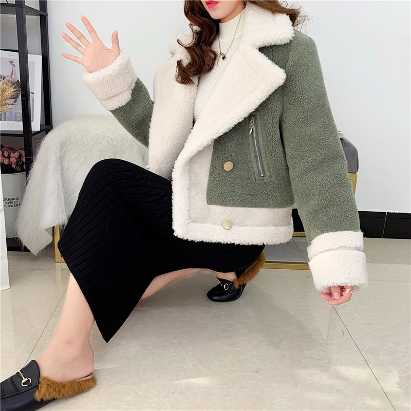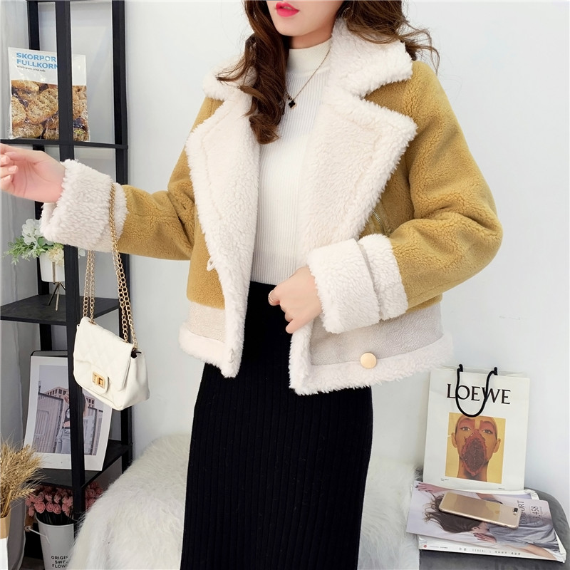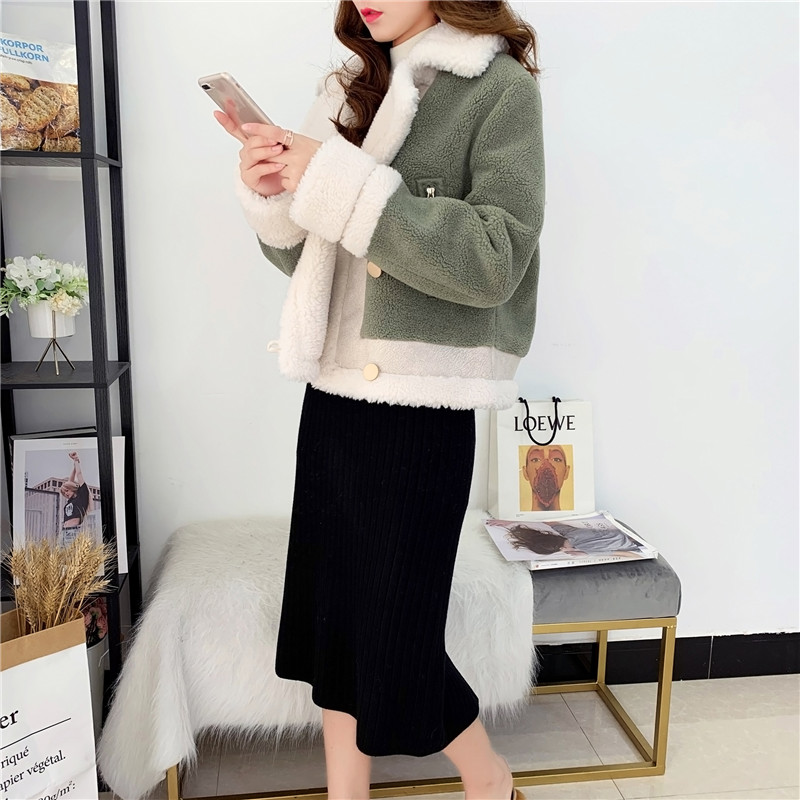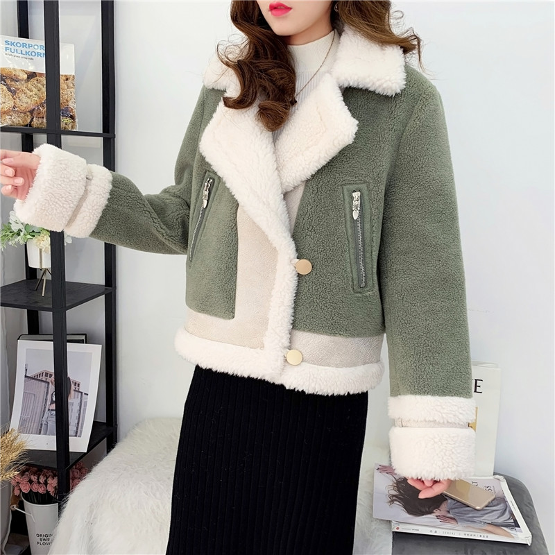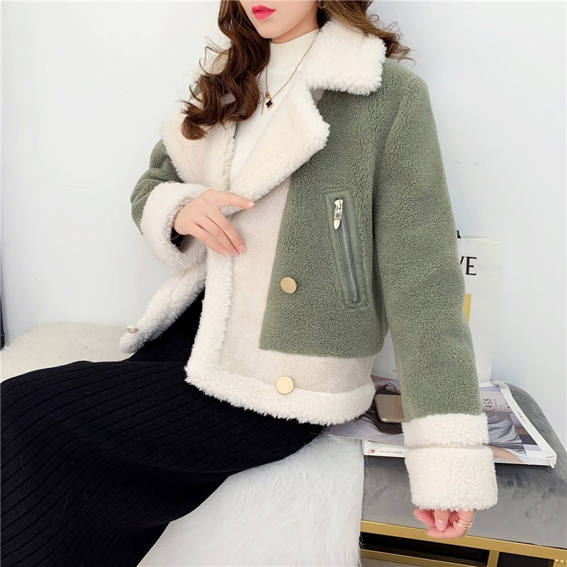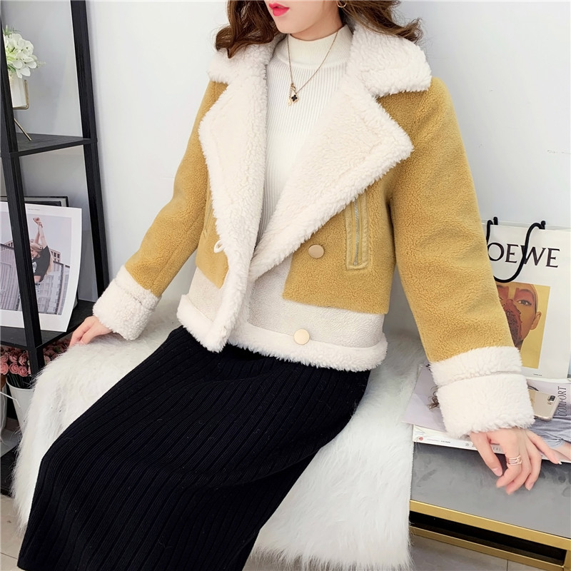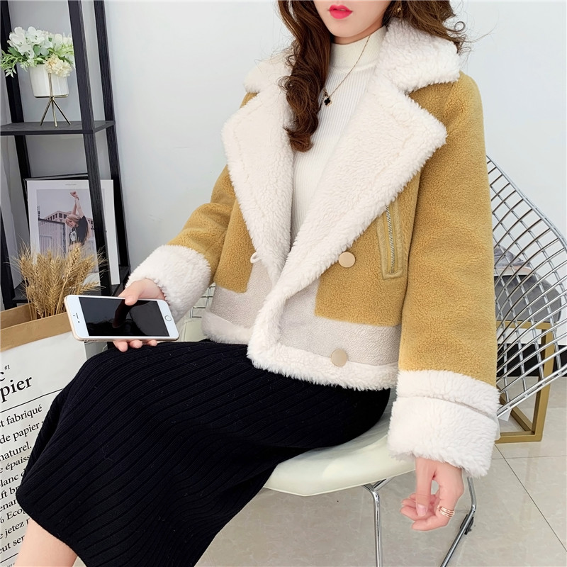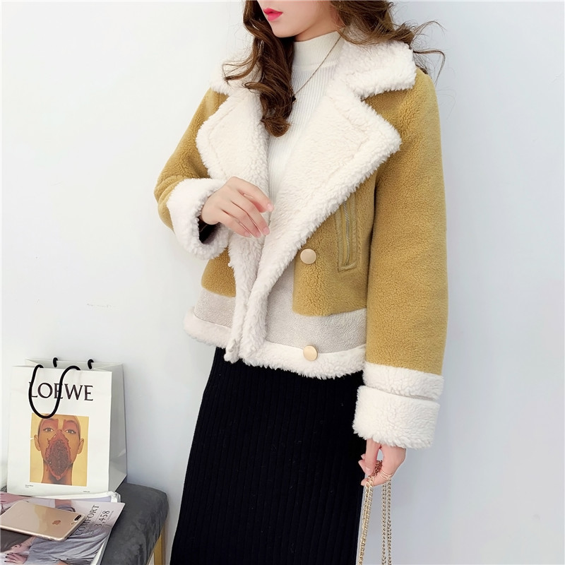 2019秋冬新款女顆粒絨羊剪絨大衣皮毛一體保暖皮草羊毛開衫短外套1入