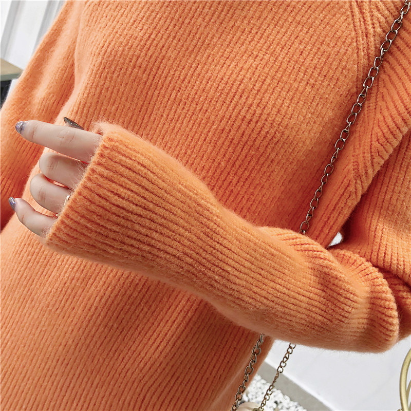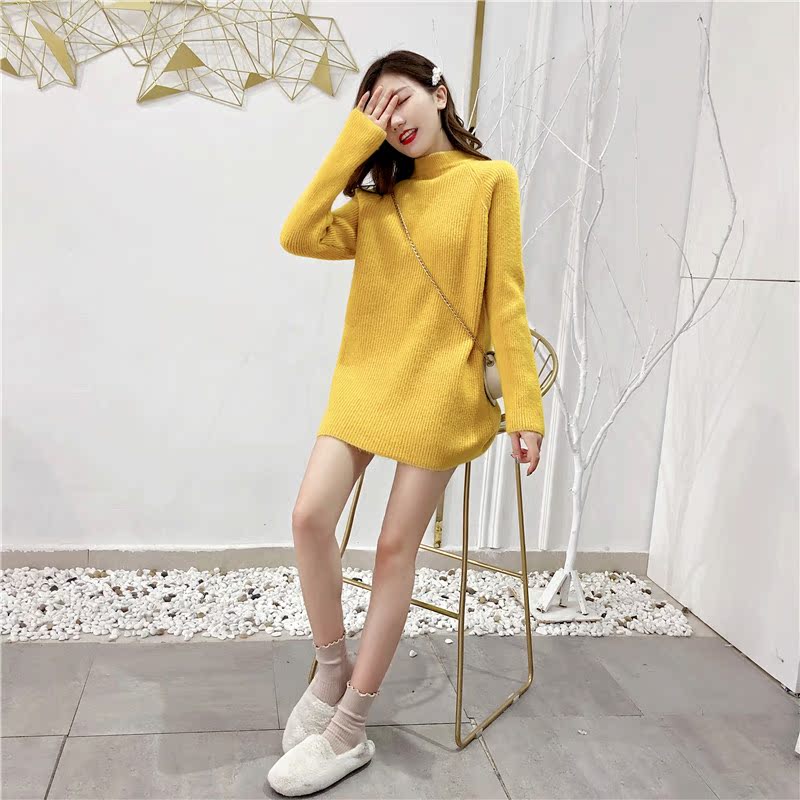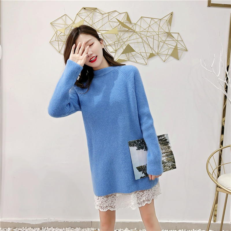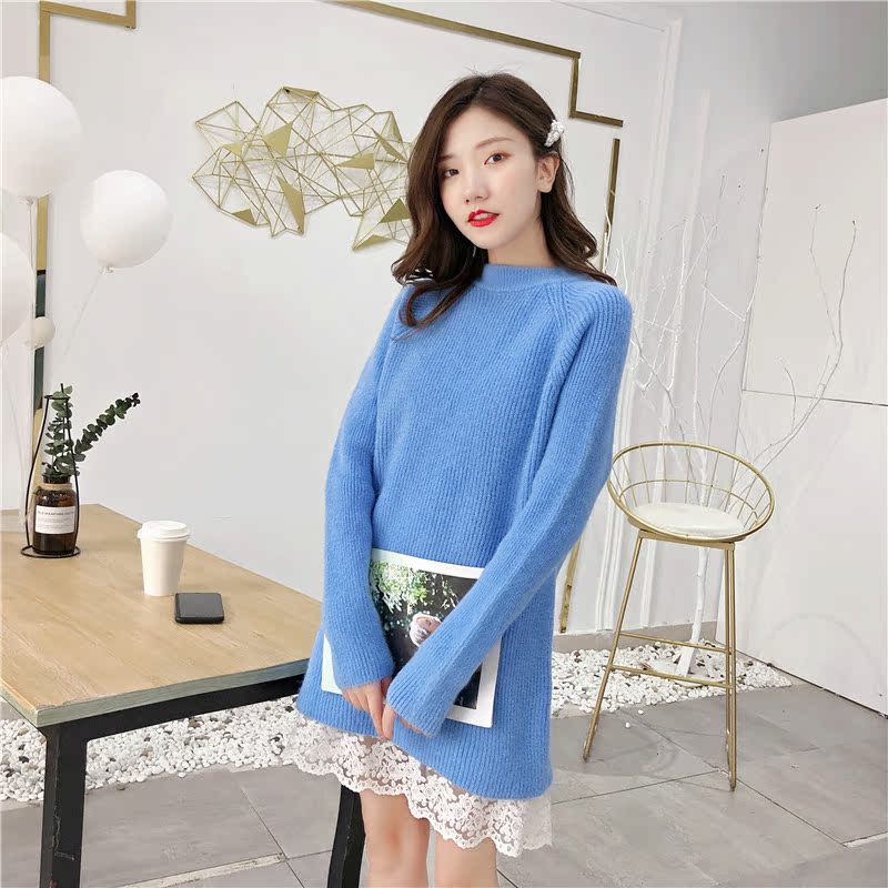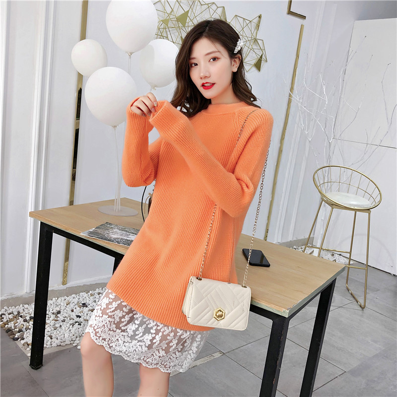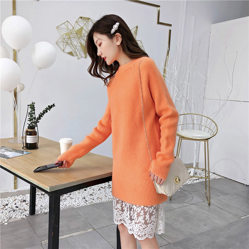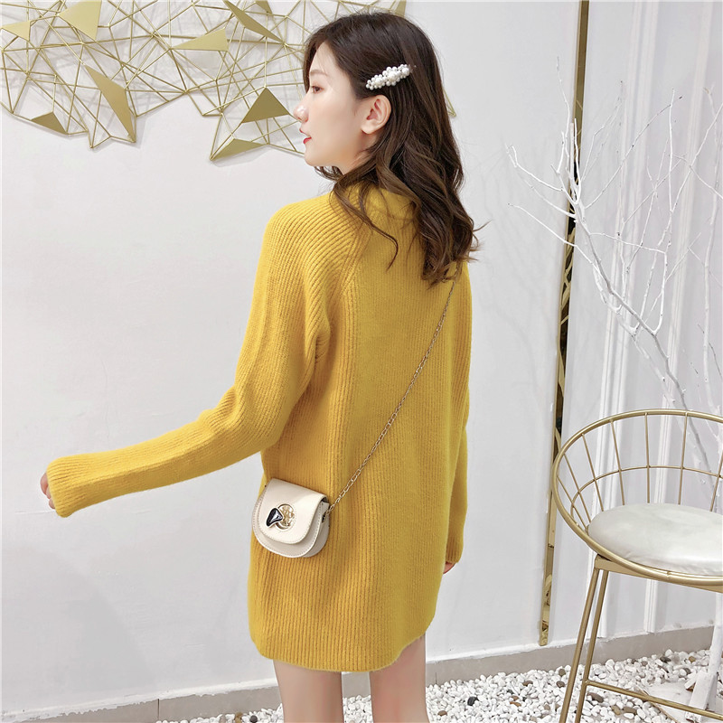 2019秋冬季新款女裝慵懶風寬松套頭毛衣中長款外穿針織打底衫上衣1入
