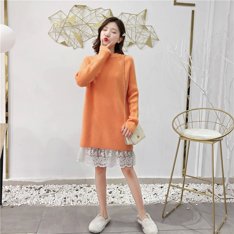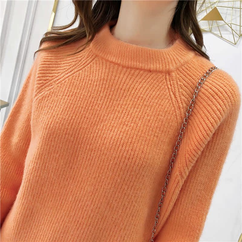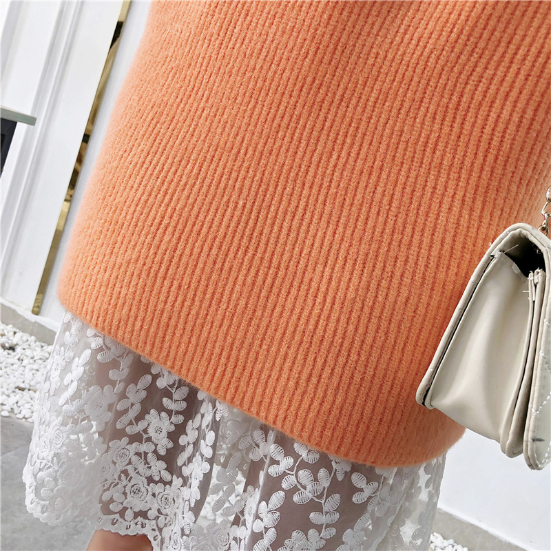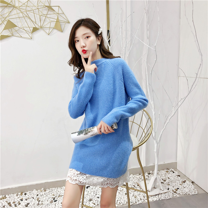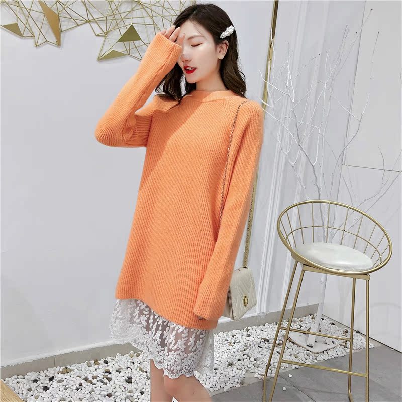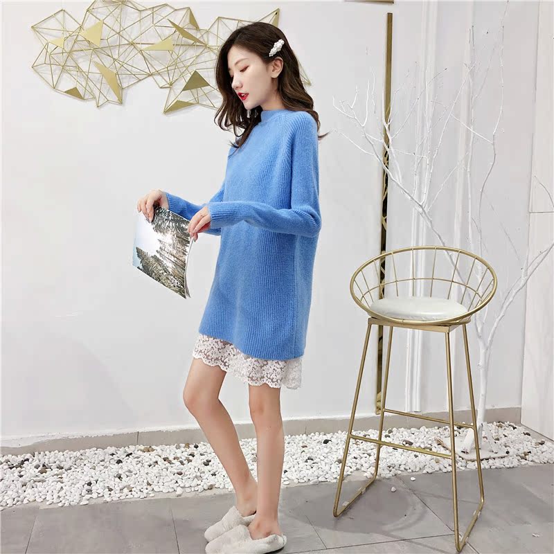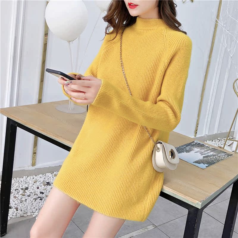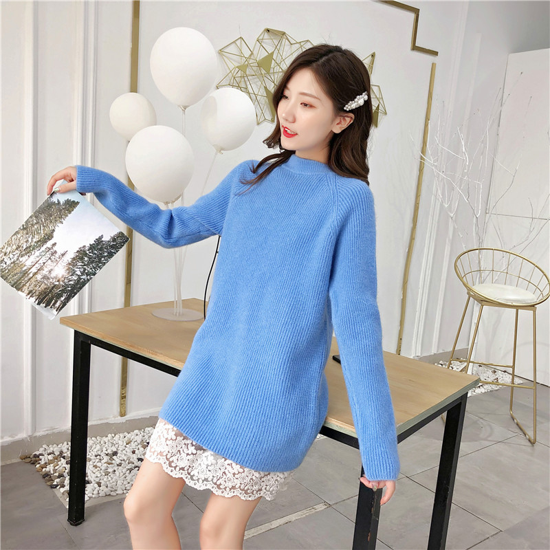 2019秋冬季新款女裝慵懶風寬松套頭毛衣中長款外穿針織打底衫上衣1入