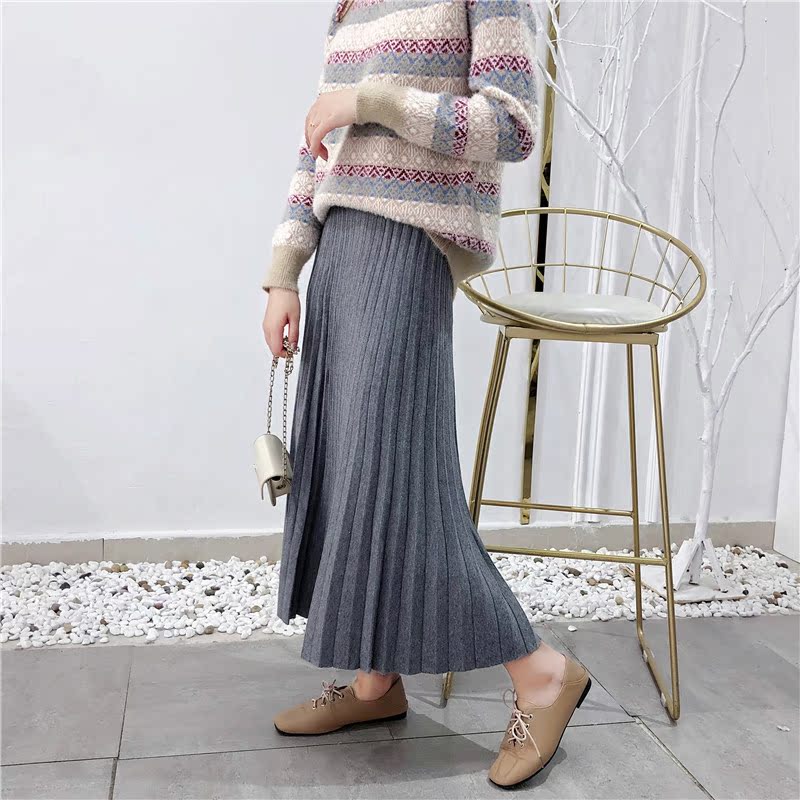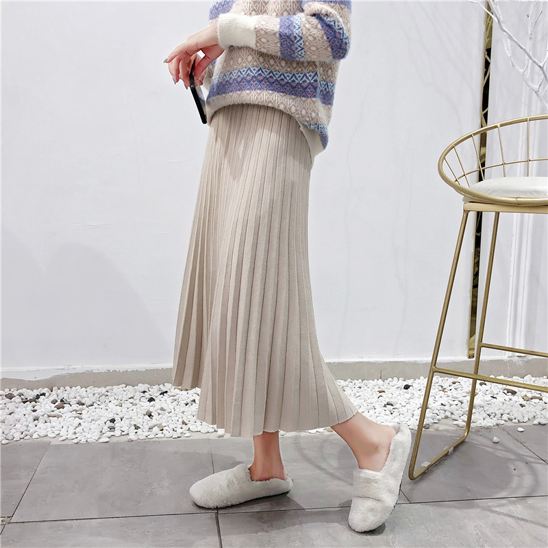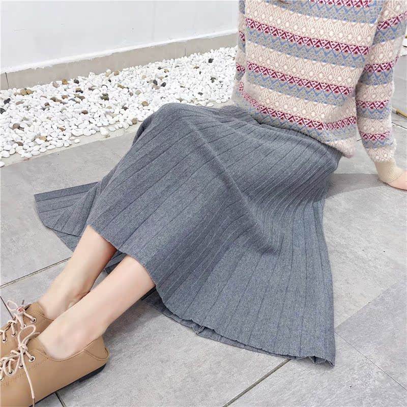 針織半身裙秋冬2019新款女裝包臀一步裙中長款百褶羅紋松緊腰裙子1入