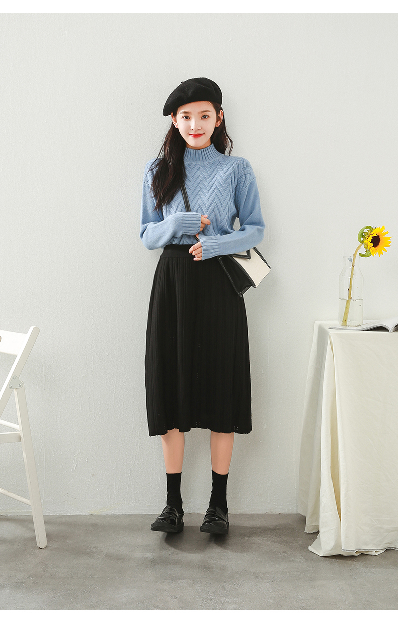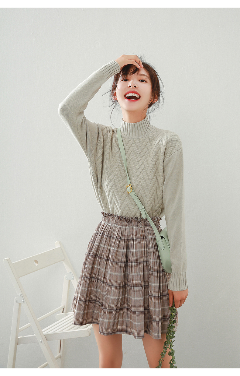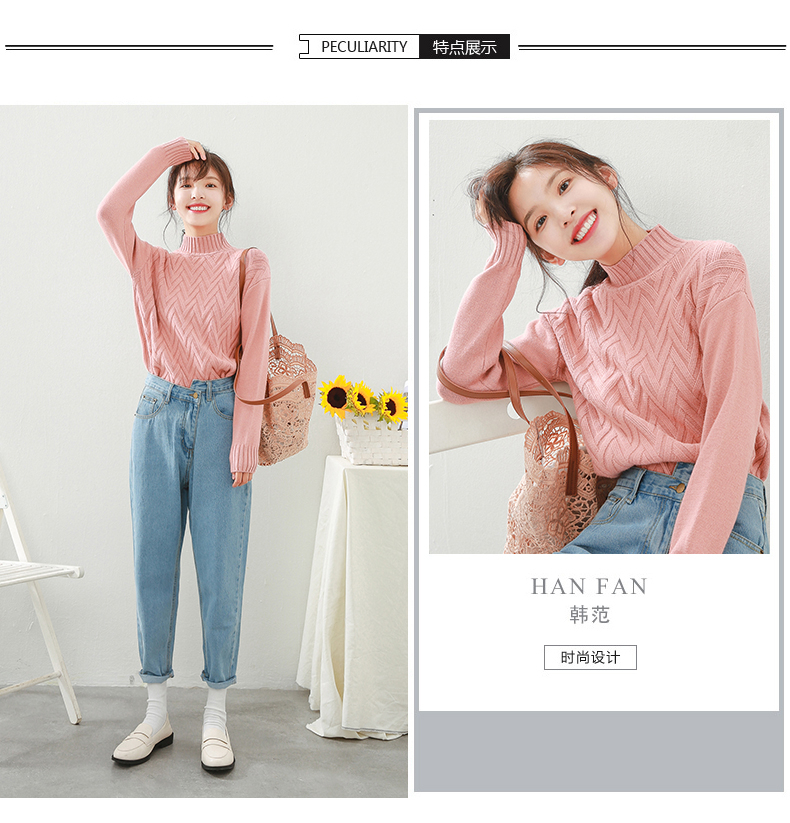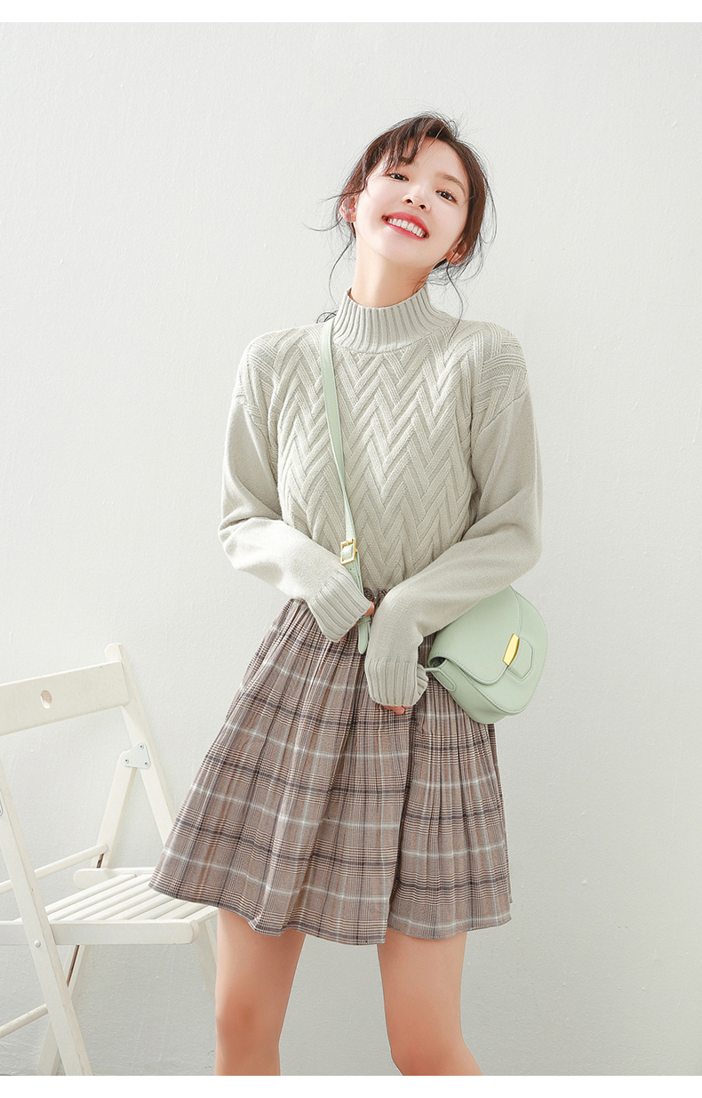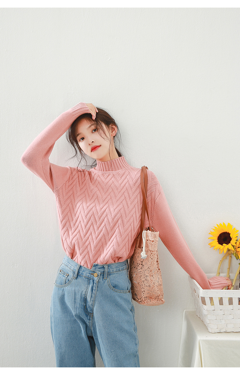 高領毛衣女新款春秋裝寬松韓版慵懶風針織衫女學生內搭打底衫1入